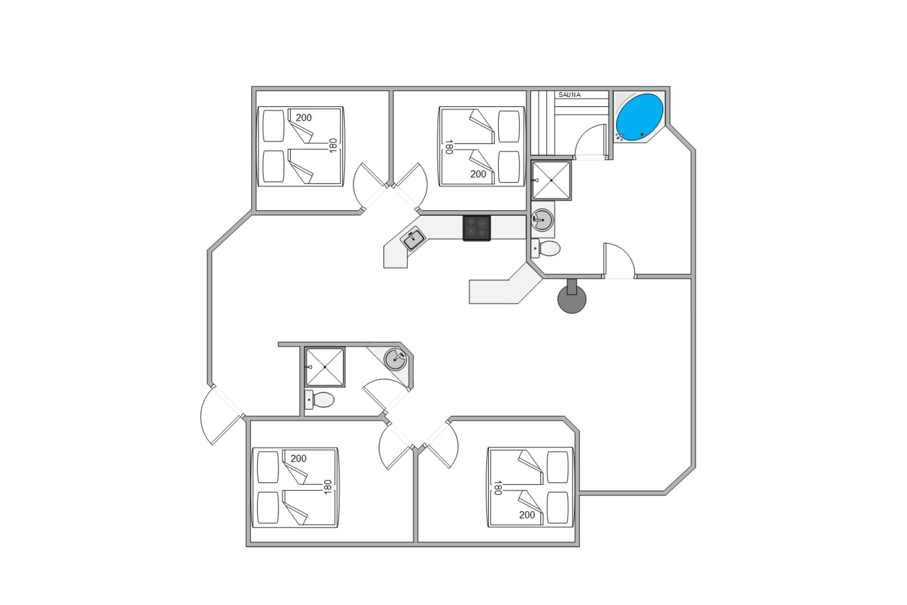 Sommerhuset på Guldvangen 54 indeholder 2 badeværelser med gulvvarme. I forbindelse med det store badeværelse er jeres eget wellnessområde med spabad og sauna, hvor man kan slappe af og lade ny energi op. I de 4 soveværelser med komfortable dobbeltsenge kan I få sovet godt og blive udhvilet til næste dag ved vestkysten. I behøver ikke at mangle hverdagsfornødenheder som opvaskemaskine, vaskemaskine og tørretumbler – det er alt sammen til rådighed i feriehuset, så I kan have rent tøj med hjem.