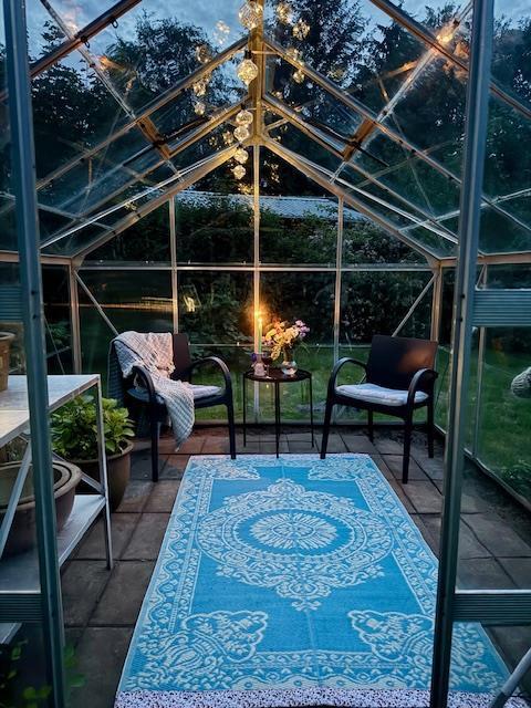 Baghaven byder yderligere på et hyggeligt drivhus, som giver mulighed for at sidde ude også om vinteren. Foran huset kan I nyde en kop kaffe ved cafesættet. Med direkte adgang fra have til Blåbjerg Plantage tilbyder dette sommerhus en helt speciel naturoplevelse. Perfekt til at lufte både hund og sig selv!