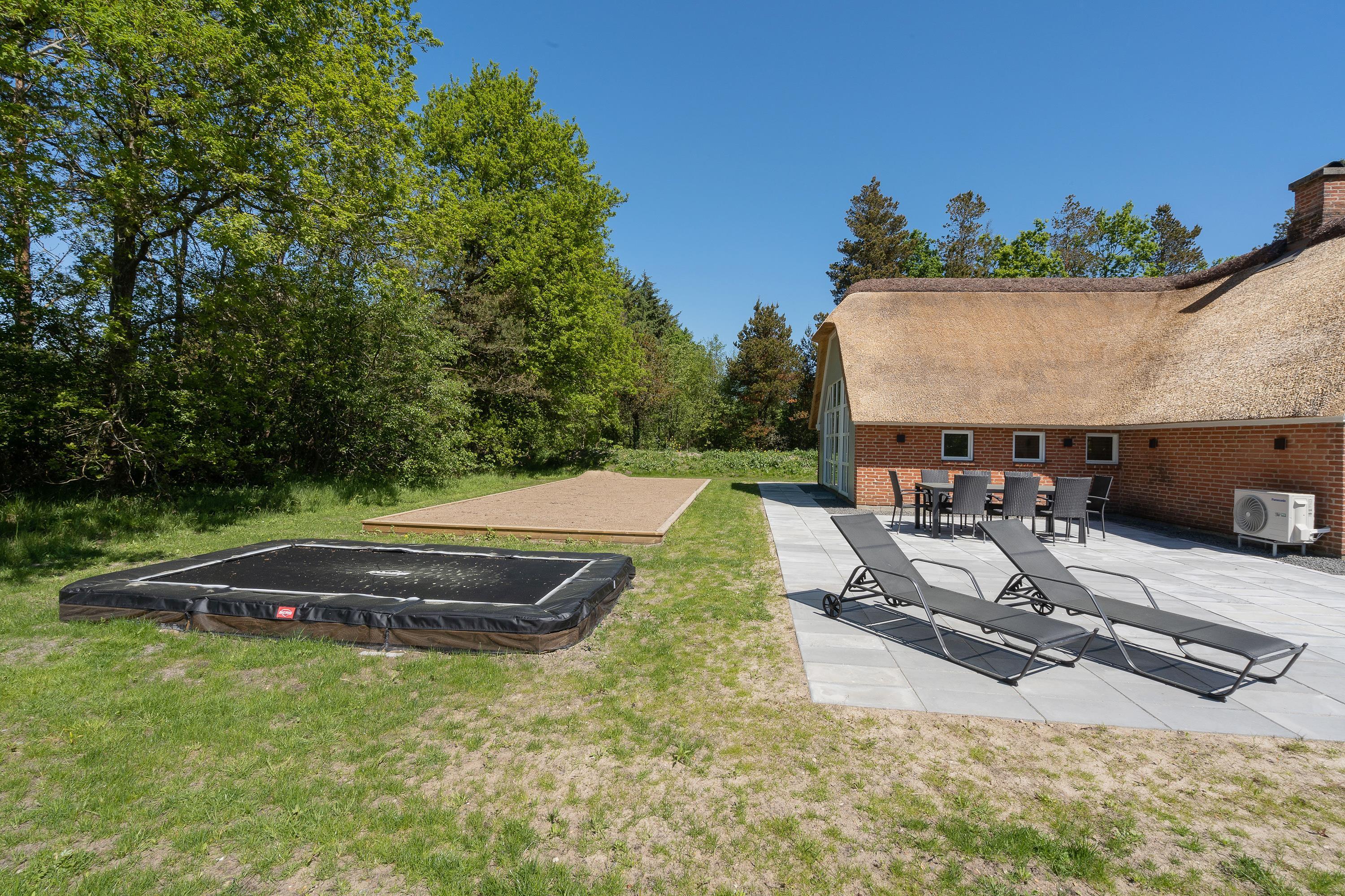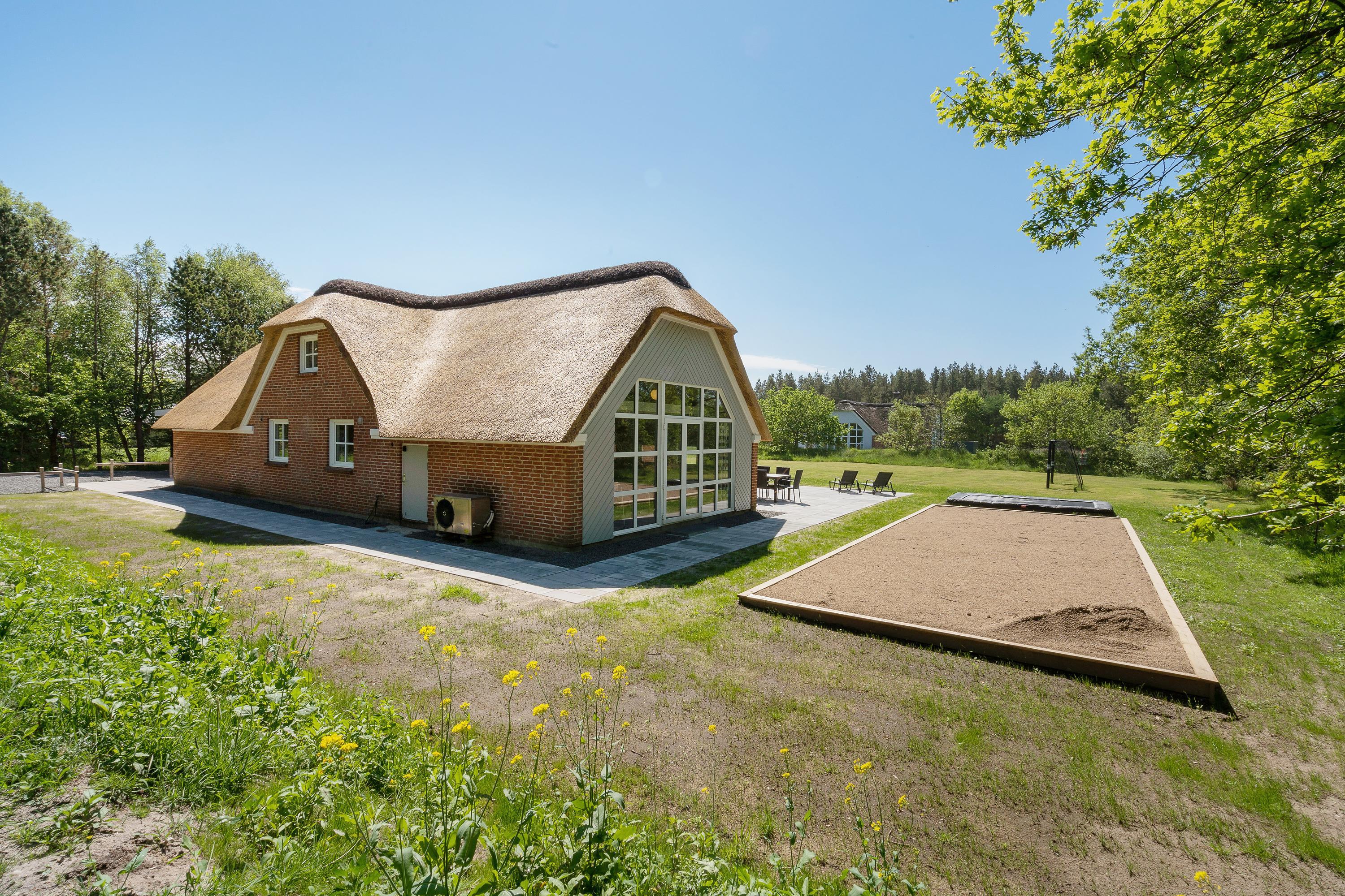 Dette smukke hus med stråtag har ikke kun plads til i alt 9 personer, altså 2 familier og jeres hund, men også en stor grund og masser af skønne faciliteter! Heriblandt poolområde med boblebad, et fantastisk udendørs område med legeplads, gynger, rutsjebane, trampolin og en beachvolleybane, samt en udendørs sauna, udendørs spa, stor overdækket terrasse og en smuk beliggenhed i Houstrup! Velkommen til Hedevang 75 - se frem til en dejlig og uforglemmelig ferie med dem, du holder af.