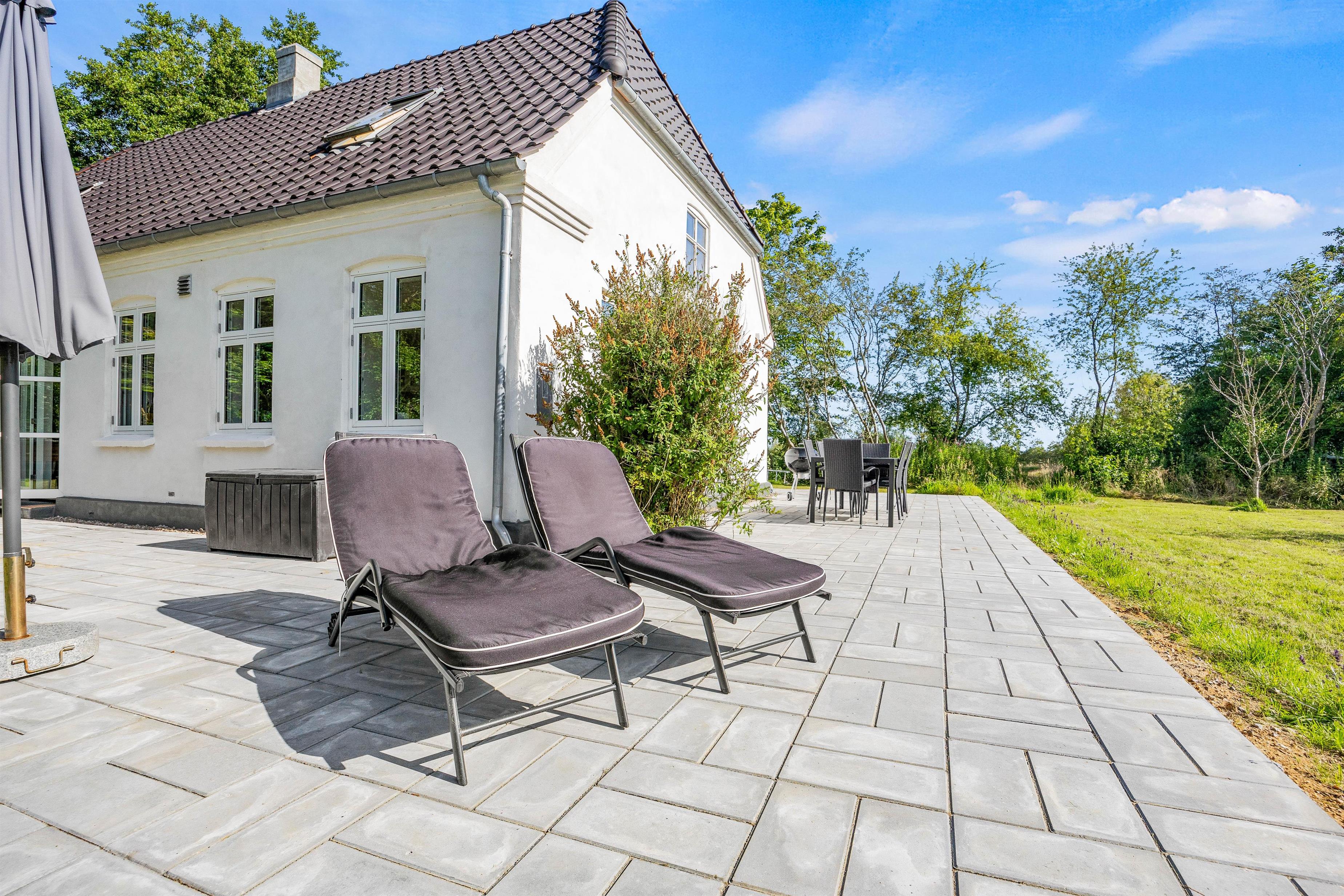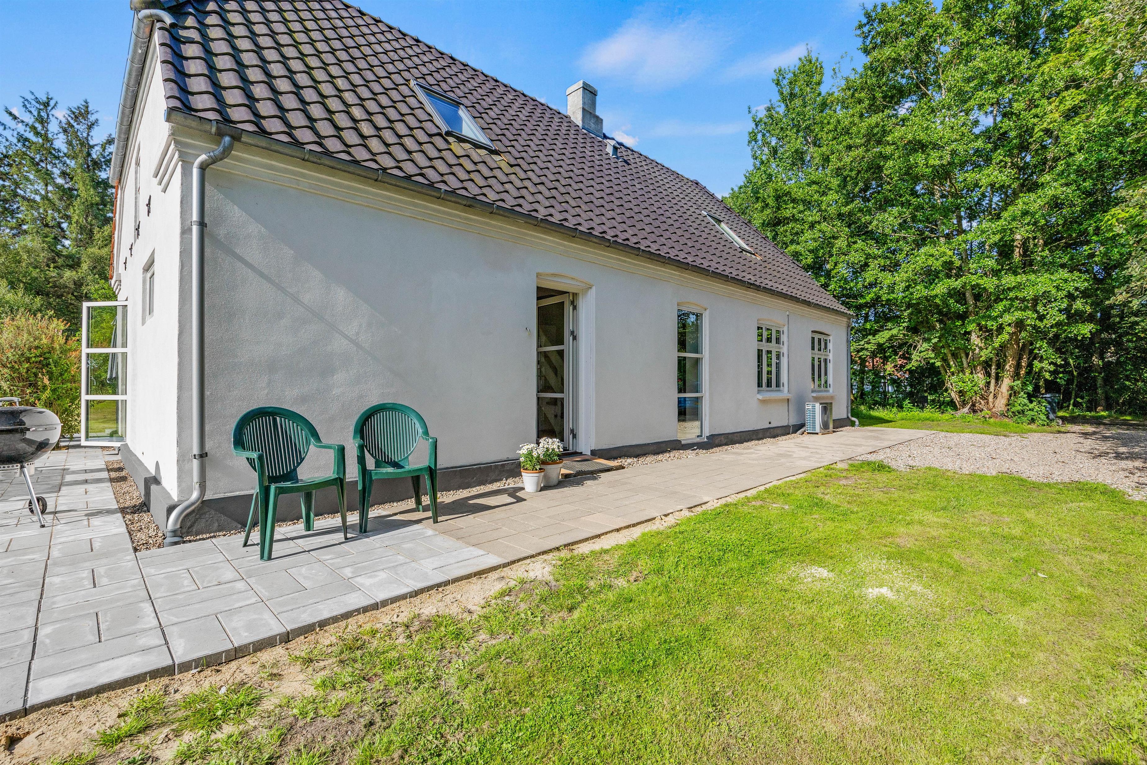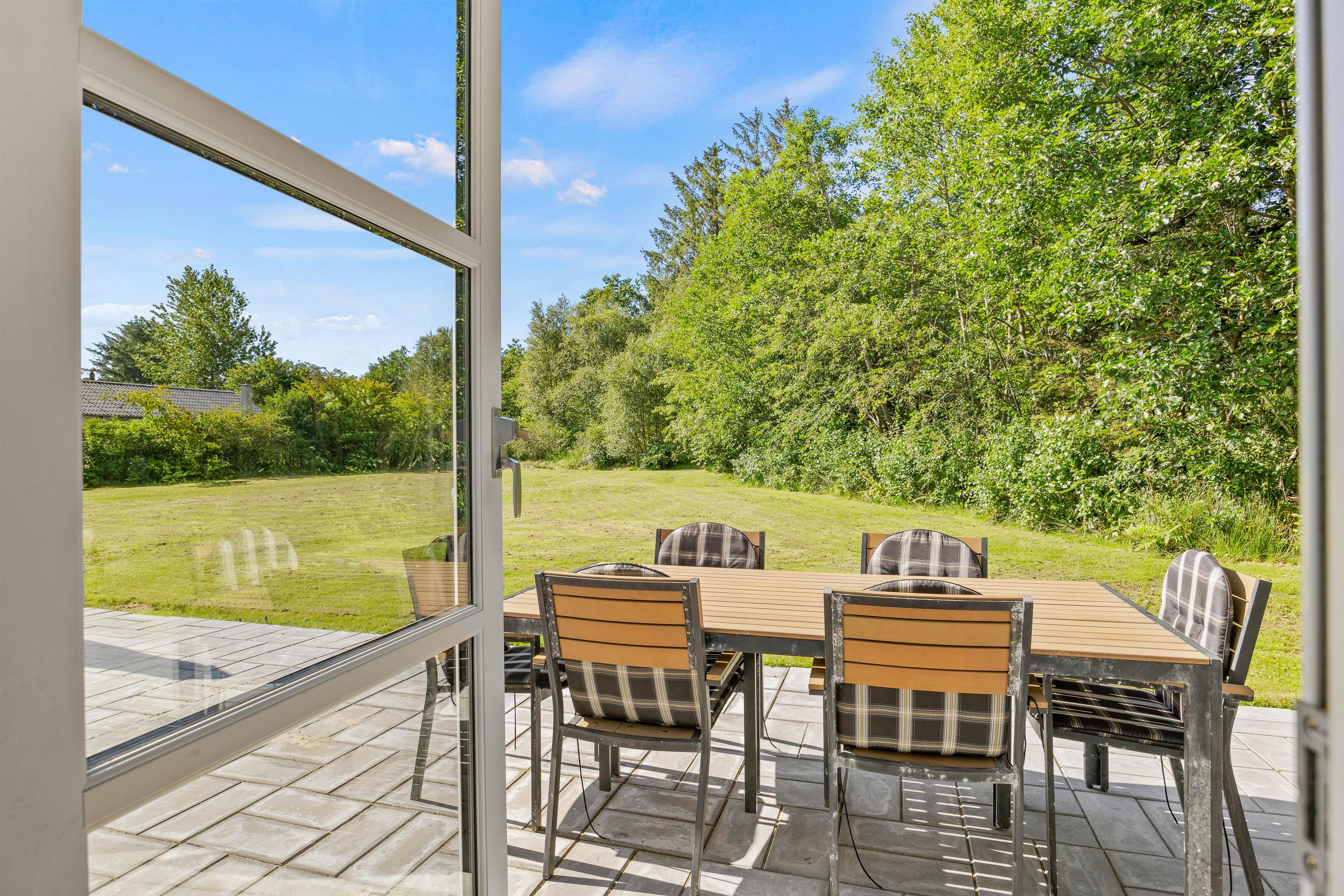 Som en ekstra bonus er der en sandkasse, så børnene kan more sig udenfor, mens de voksne nyder roen og naturen fra terrassen.