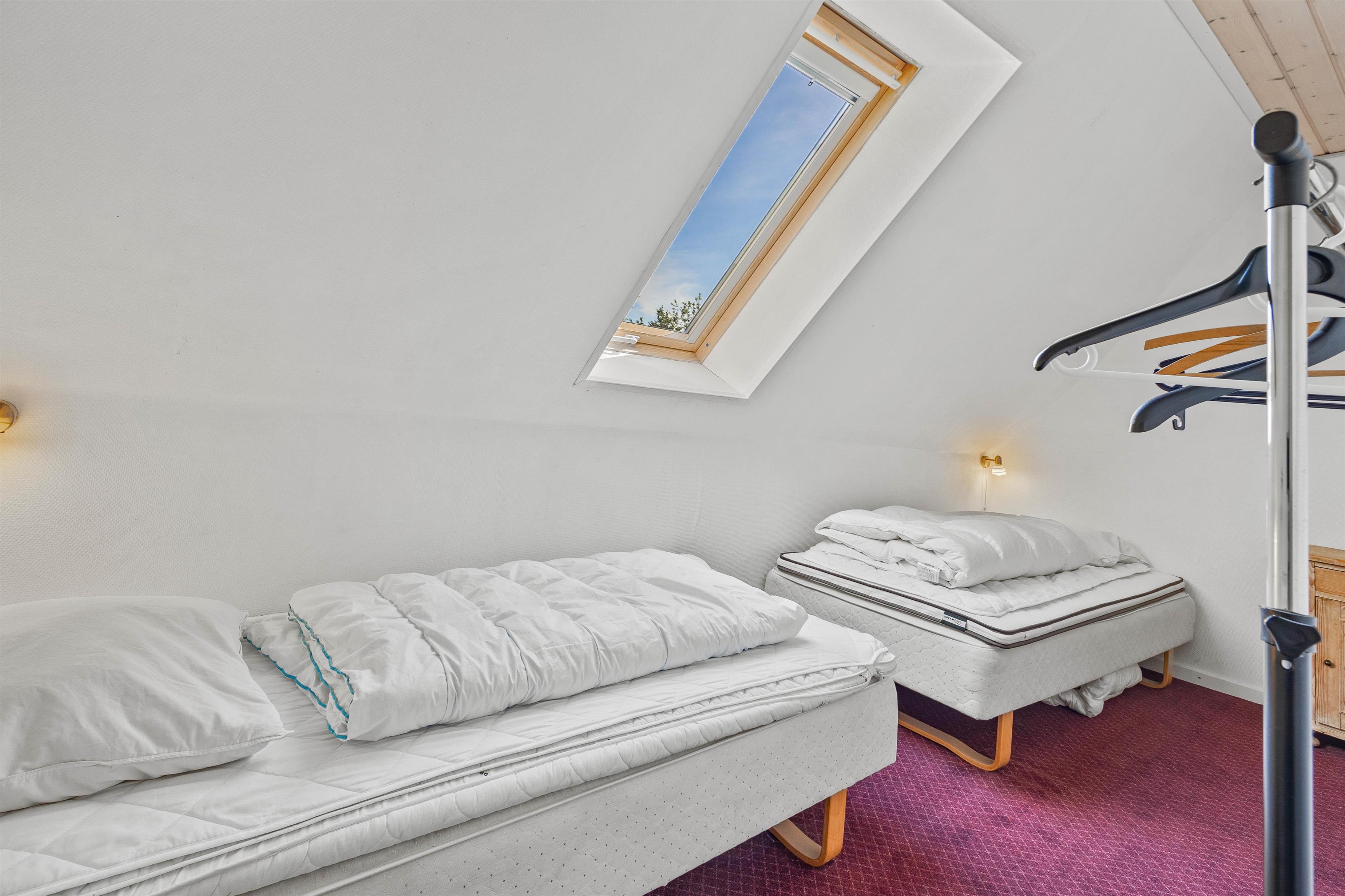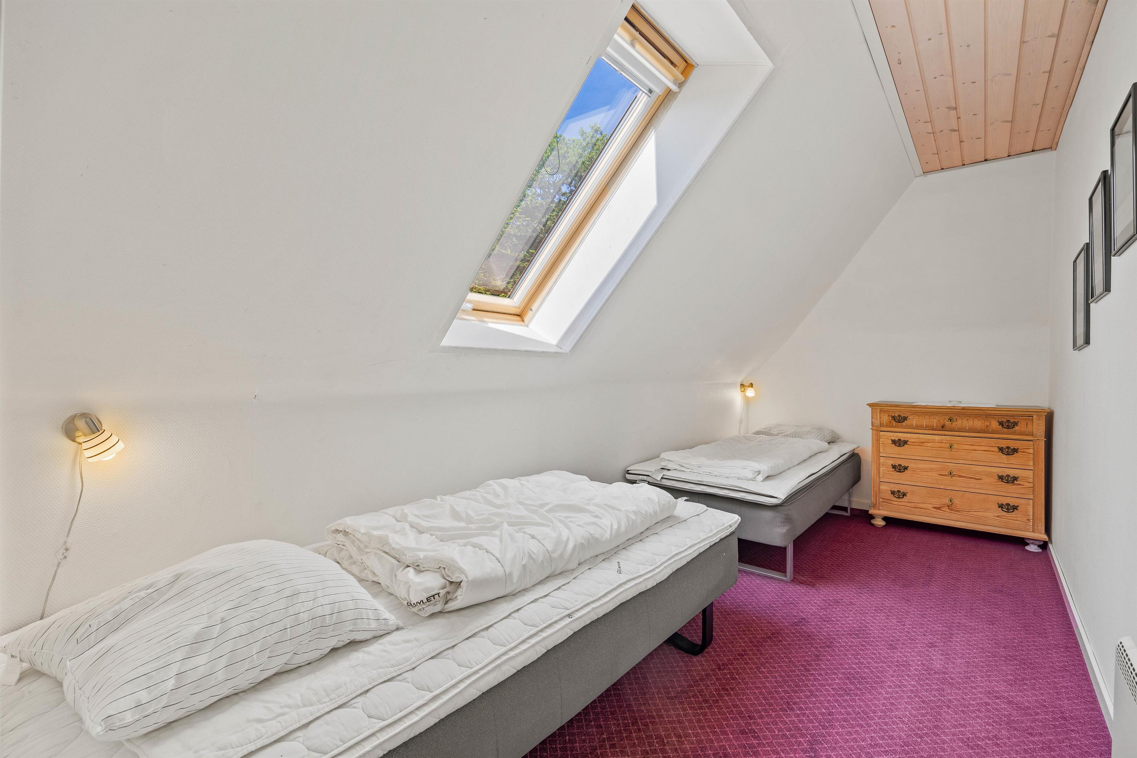 Sommerhuset har 4 rummelige soverum, hvilket sikrer en god nats søvn for alle gæster. De 2 dobbeltsenge og 4 enkeltsenge giver fleksibilitet i sovepladsfordelingen. Sommerhuset har 2 badeværelser, hvoraf det ene har gulvvarme. Med både vaskemaskine og tørretumbler på stedet behøver I ikke bekymre jer om beskidt tøj, hvilket gør opholdet mere bekvemt.