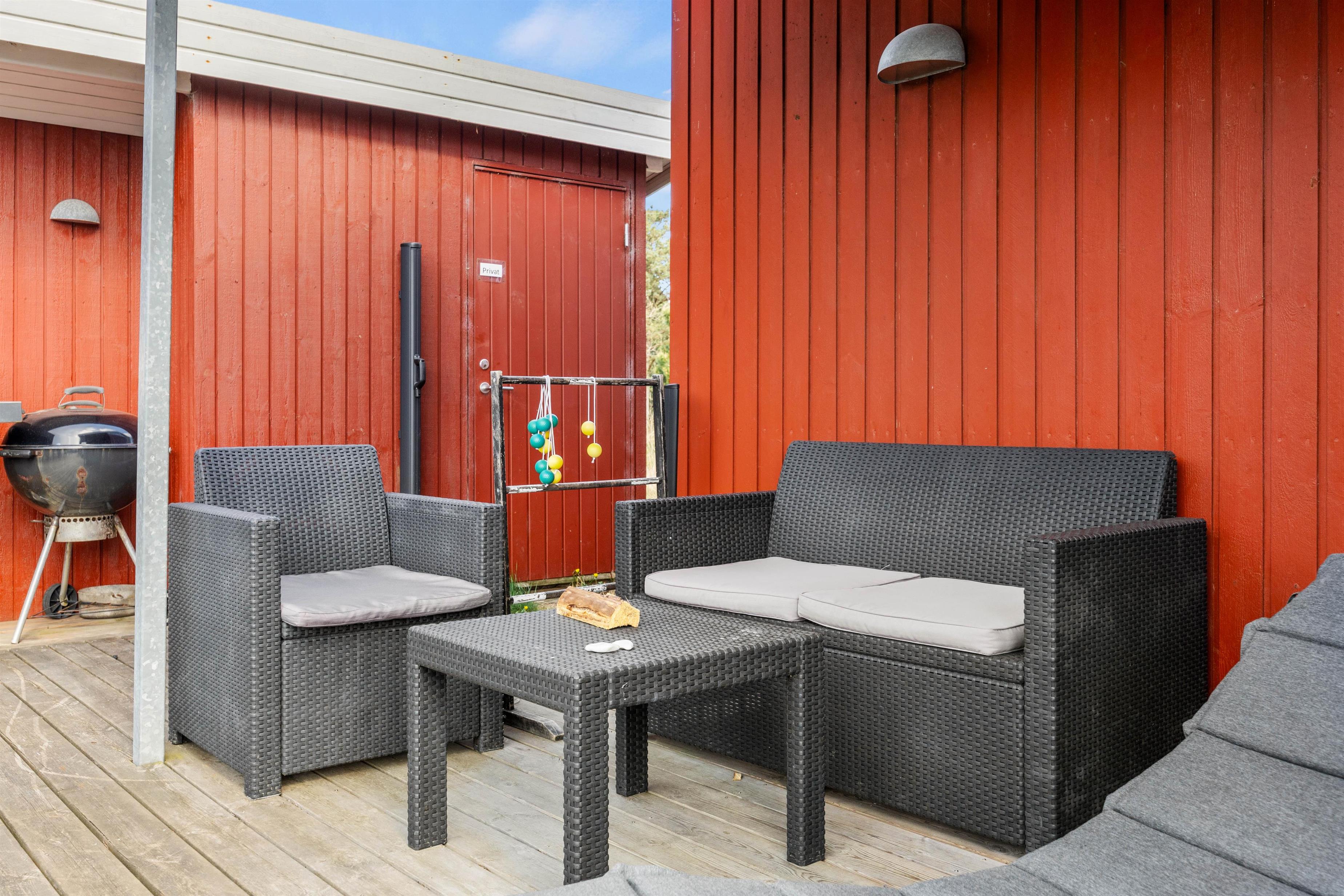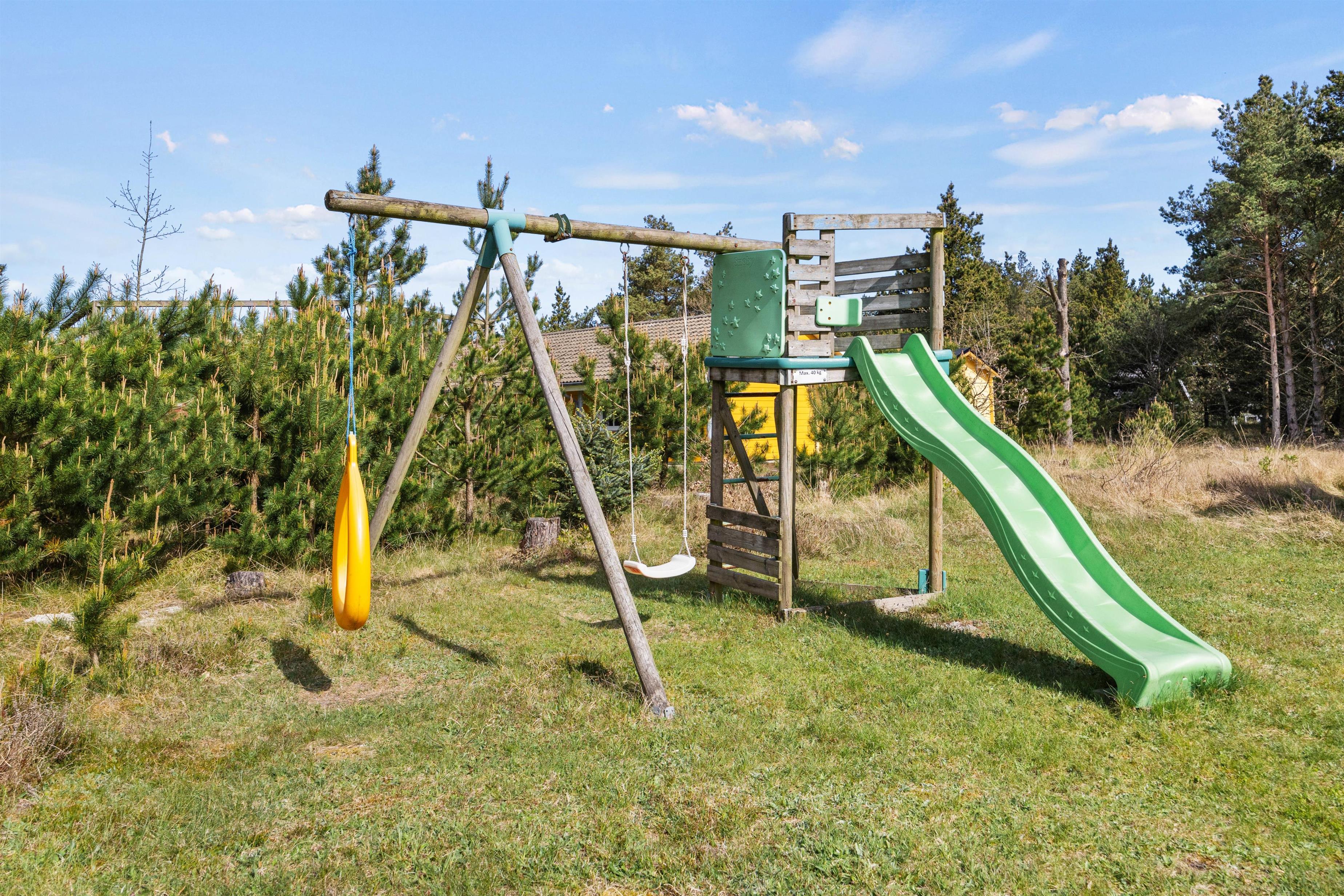 Huset har 2 gode terrasser, så I kan følge med solen hele dagen, og der står havemøbler og grill klar til jer, så snart I ankommer. Terrasserne skaber den perfekte ramme for alt fra morgenkaffen til hyggelige grillaftener med familien. Til børnene er der både gyngestativ, rutsjebane og sandkasse, så der er rig mulighed for leg. De små kan trygt lege på den rummelige grund, mens I nyder en stille stund i skyggen eller solens varme stråler.
