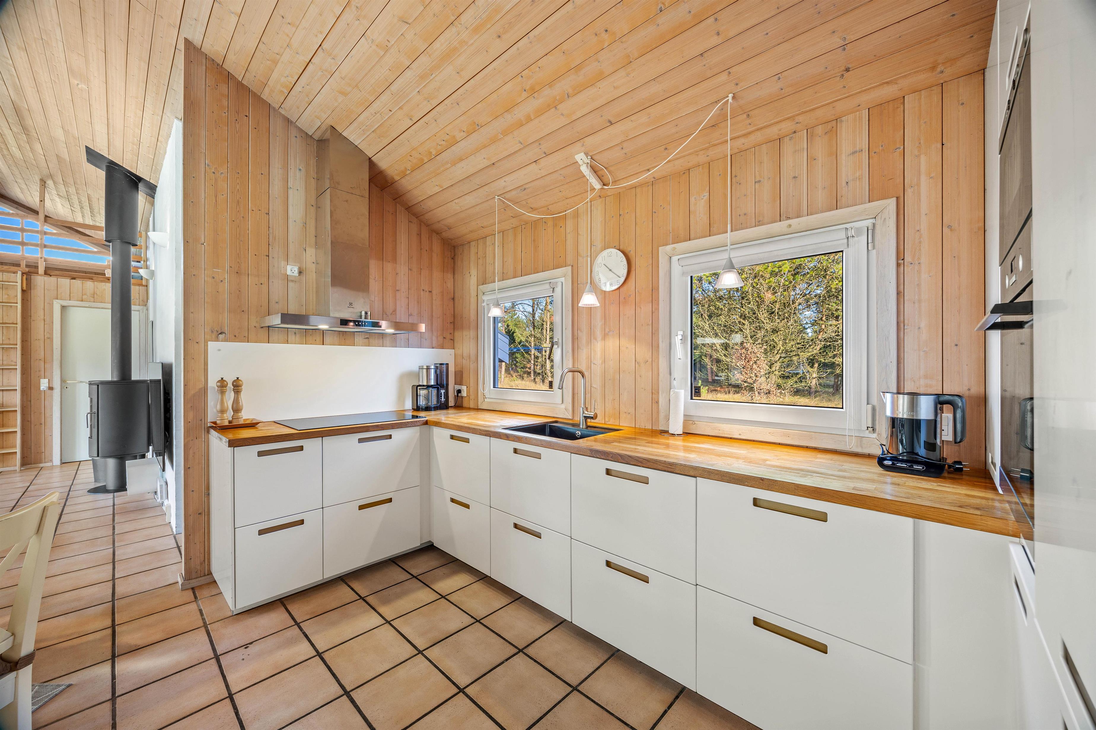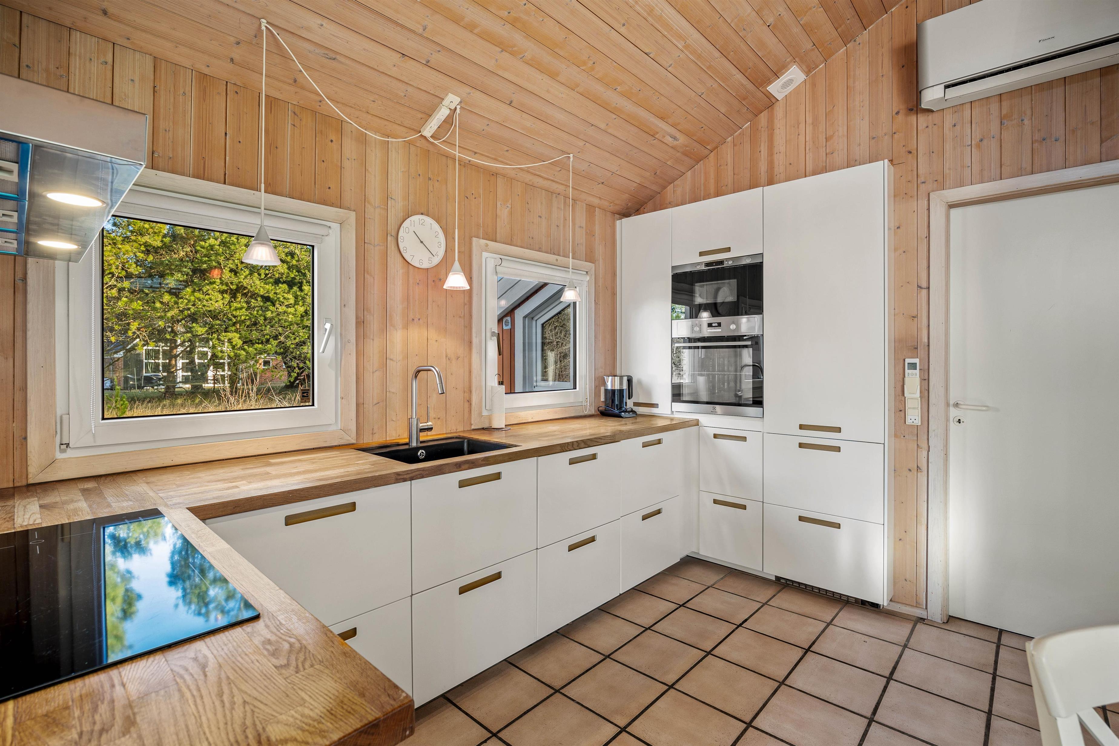 Meget praktisk er der et ekstra badeværelse, så I ikke behøver stå i kø til toilettet, samt det ekstra køleskab i skuret, så der er plads til al den lækre feriemad. Køkkenet er åbnet op ind til spisestuen, så alle kan tage del i madlavningen og nyde hinandens selskab både morgen, middag og aften. Hvis I blot har brug for at slappe af i sofaen, kan sommerhusets Chromecast bruges til at streame jeres favoritter.