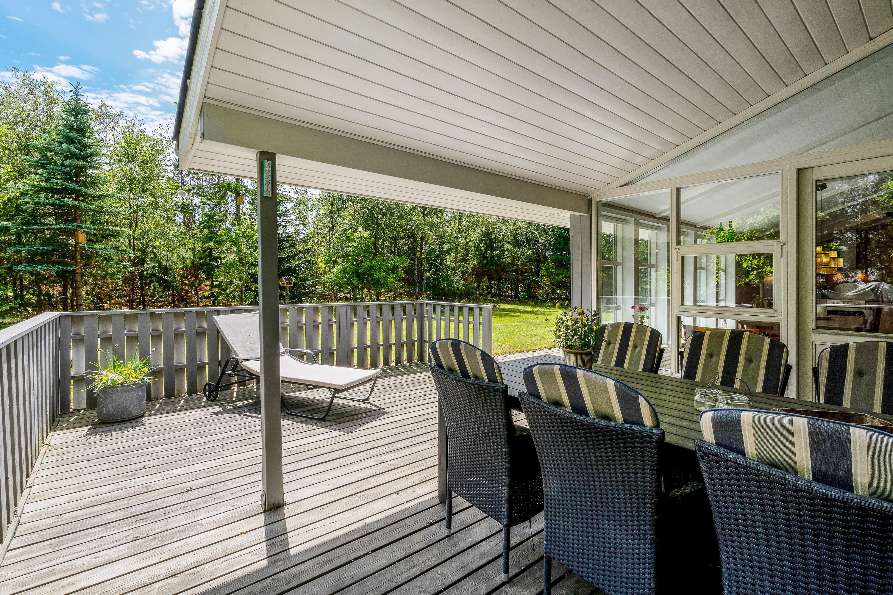 Sommerhusets udemiljø er en drøm for naturelskere og dem, der nyder at tilbringe tid under åben himmel. Beliggende på en rummelig 1140 m2 grund er der masser af plads til leg og afslapning i det fri. Den afskærmede, lukkede og overdækkede terrasse giver jer mulighed for at nyde måltider udendørs eller slappe af, mens I er beskyttet mod vind og vejr. Her kan I nyde morgensolen eller lune sommeraftener i fulde drag.