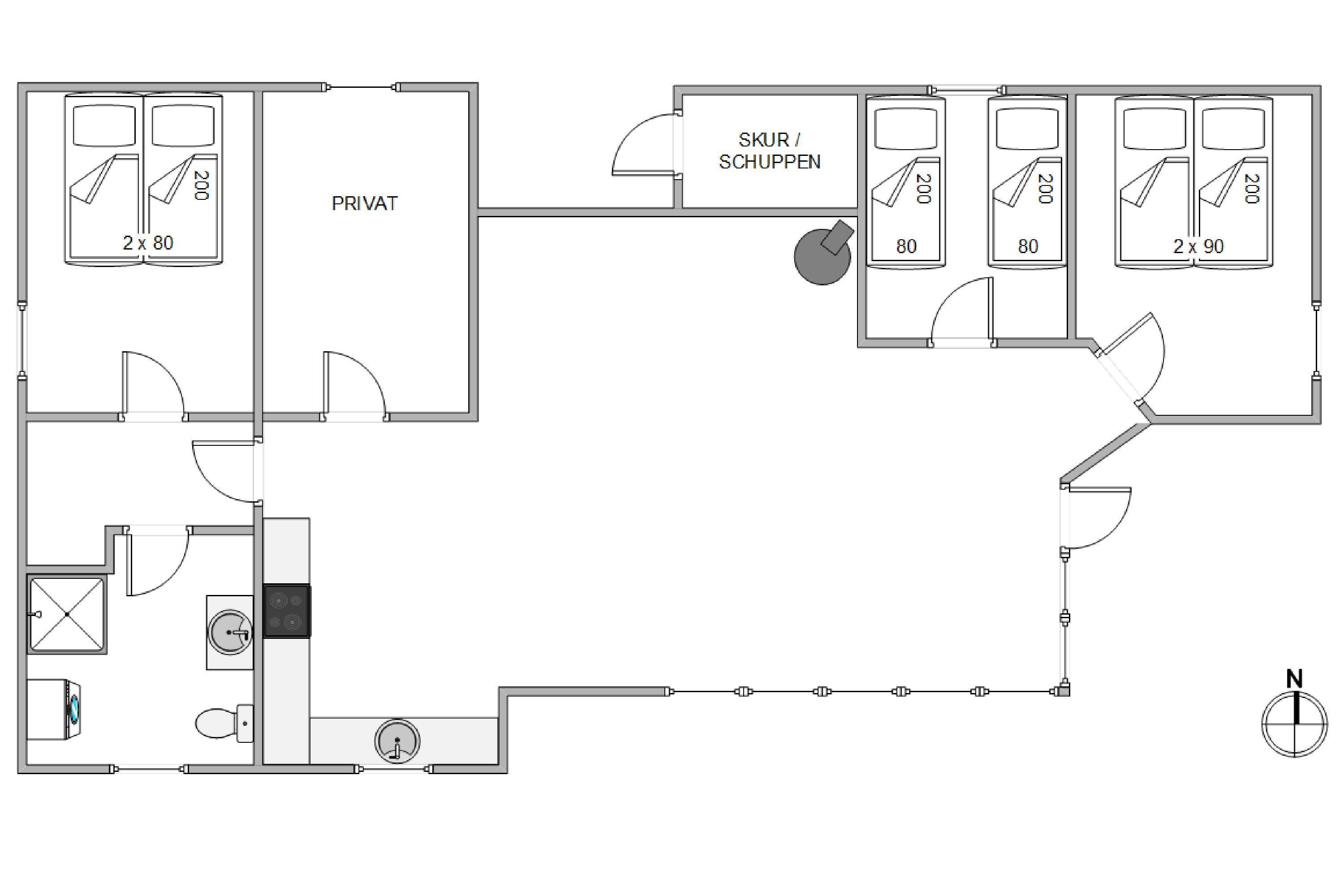 Indenfor i sommerhuset bliver I mødt af en behagelig og varm atmosfære, hvor brændeovnen i opholdsrummet hurtigt bliver familiens samlingspunkt på de kølige aftener. Med plads til op til 6 personer, fordelt på 3 komfortable soverum, er der rig mulighed for at nyde privatliv og ro, når det ønskes.