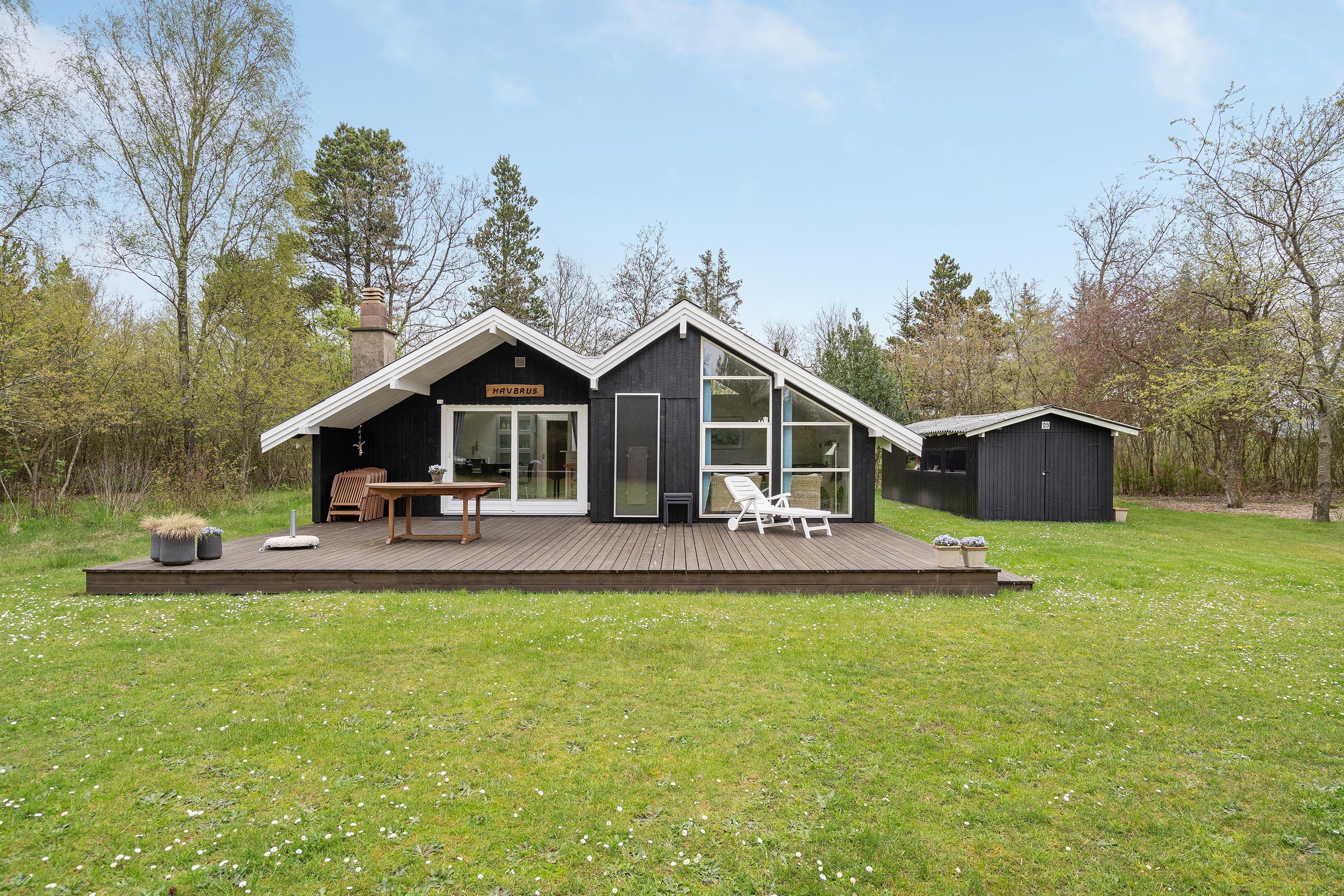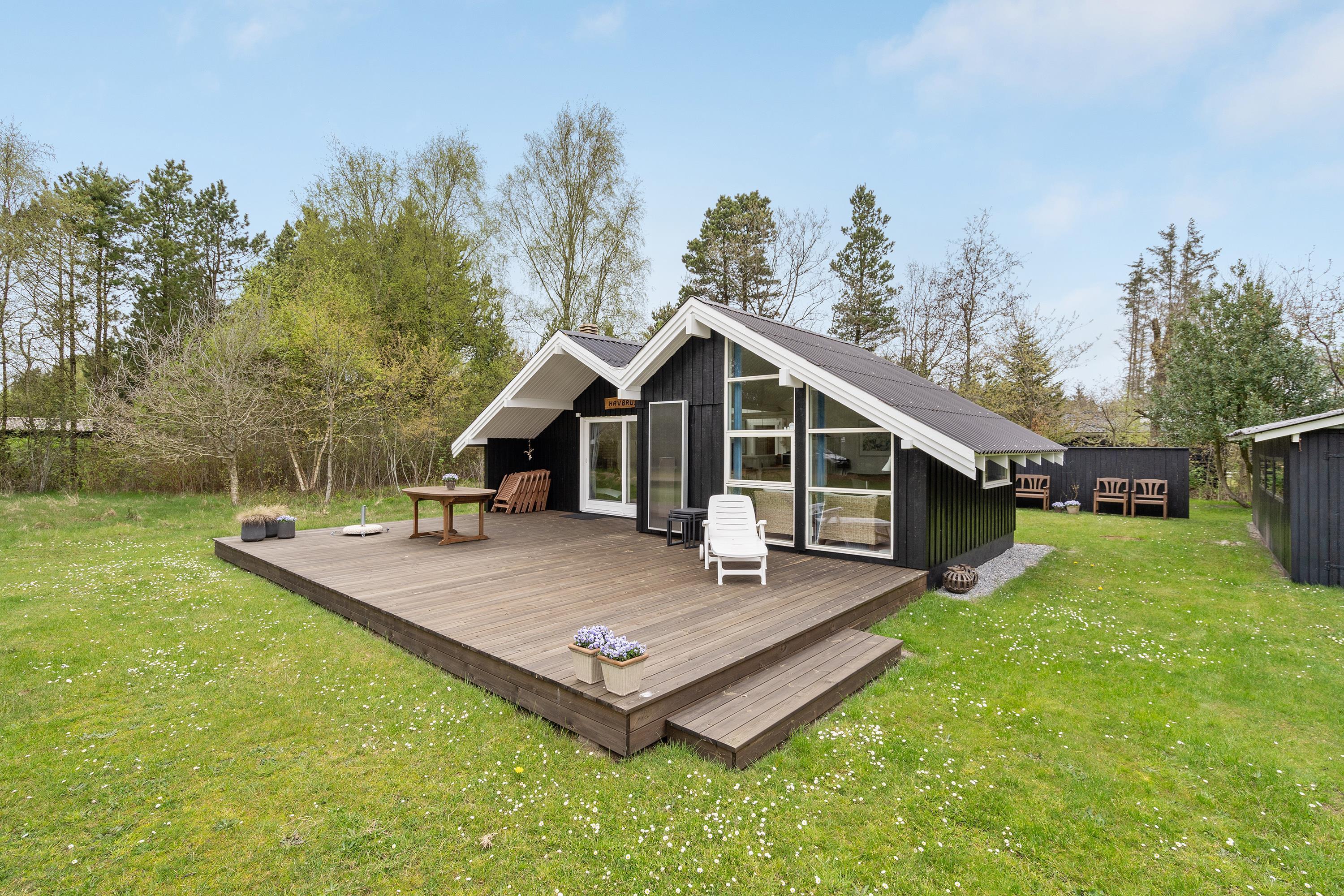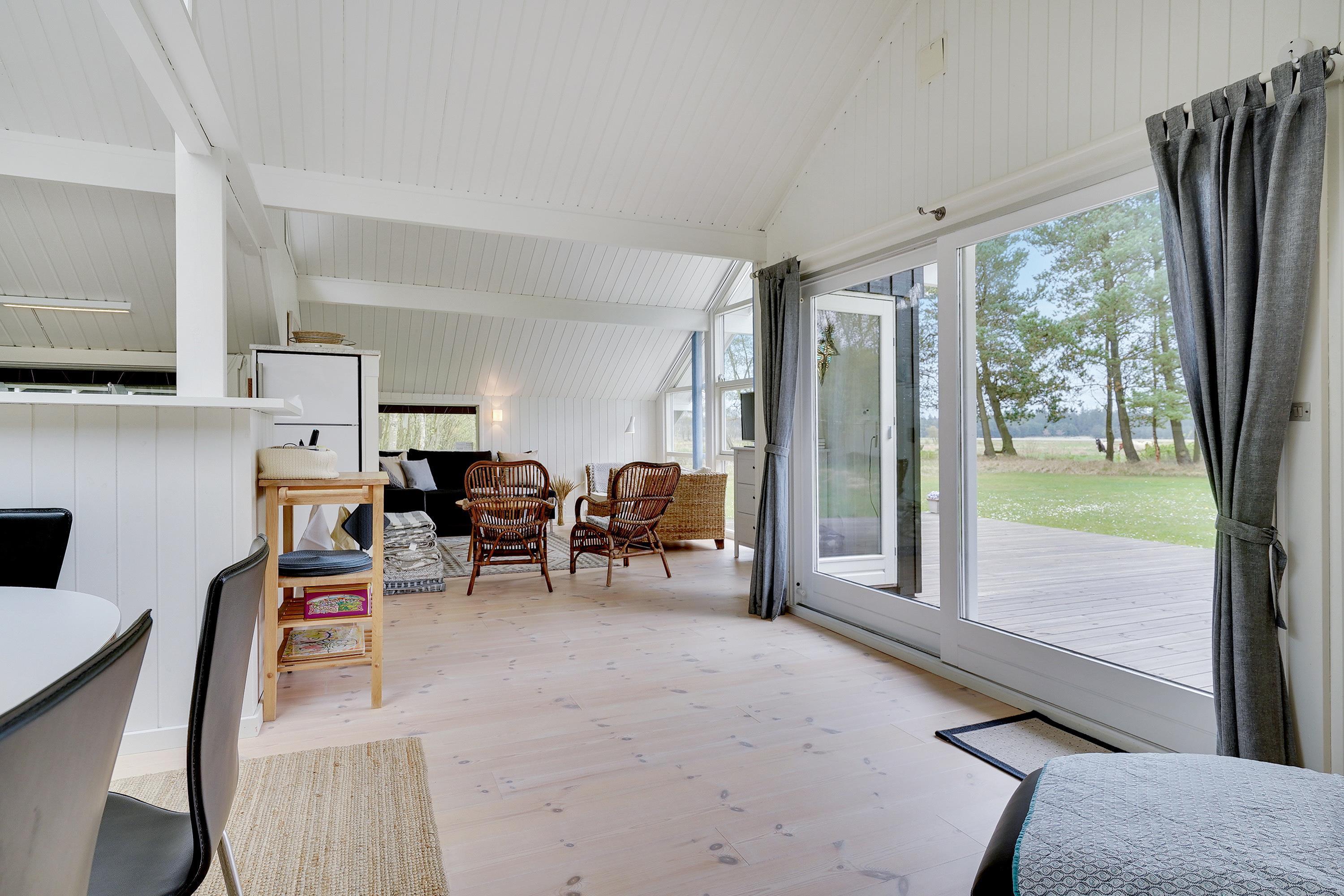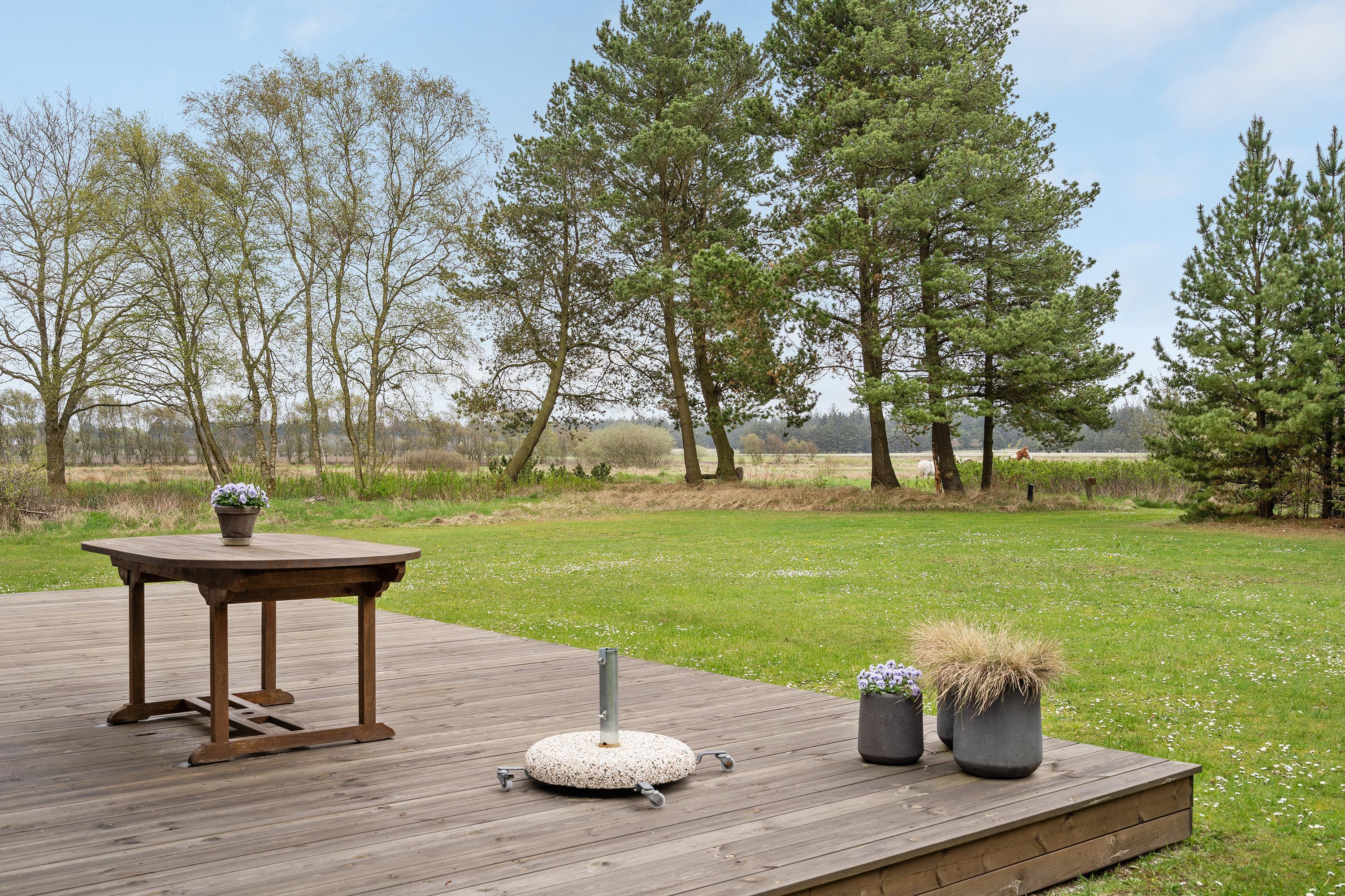 I stedet kan I enten læne jer tilbage og slappe af i sofaen eller træde ud på terrassen og nyde den friske luft i skoven. Den mere end 2.700 m² naturgrund er også omgivet af træer og buske, så du er helt uforstyrret her. Nyd fuglenes kvidren, når de flyver rundt i trætoppene, og hvis I er heldige, får I også besøg fra harer, hjorte, ræve og egern.