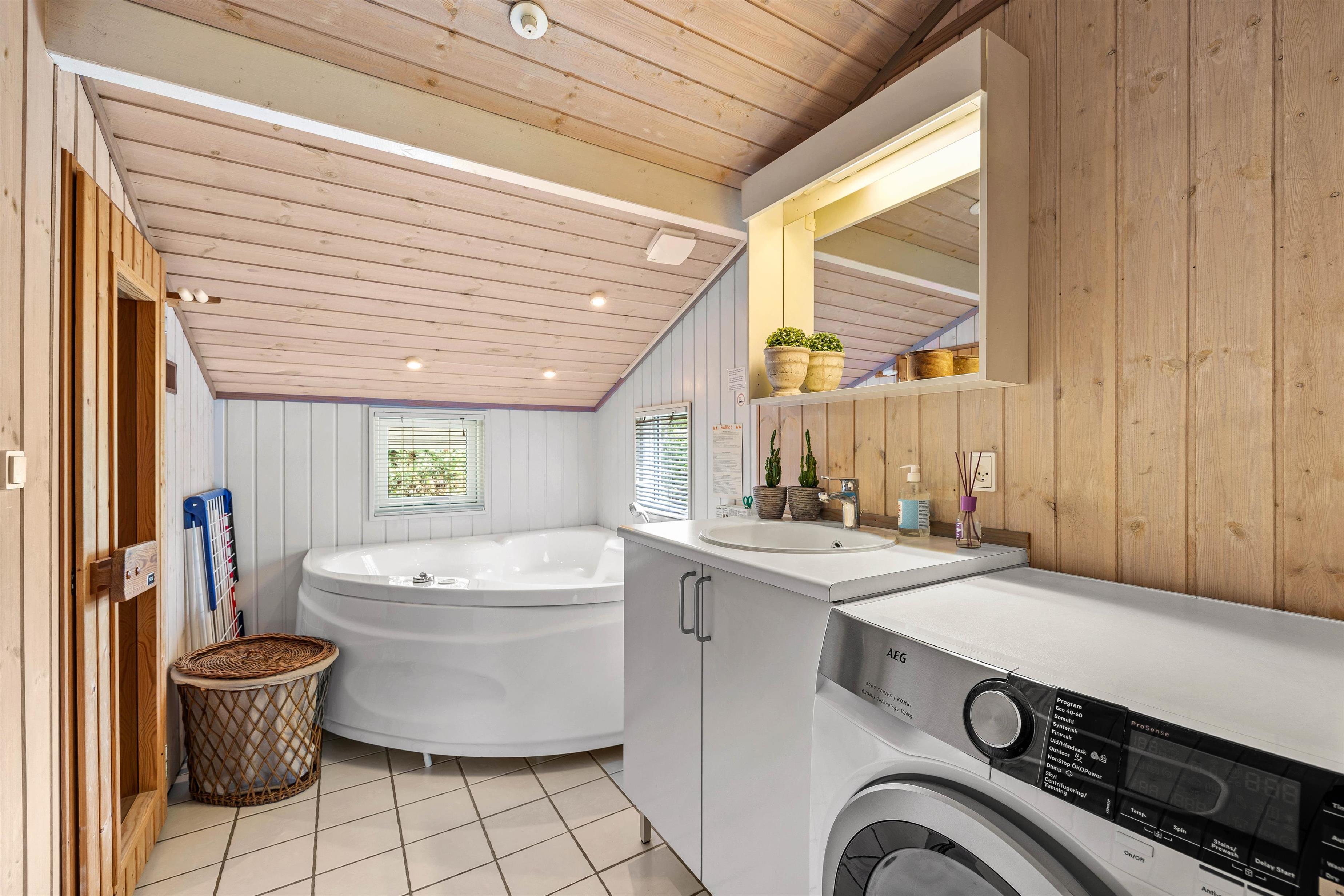 Huset har 2 badeværelser. Det ene badeværelse er med toilet og bad og det andet er med bad og spa (ingen toilet).