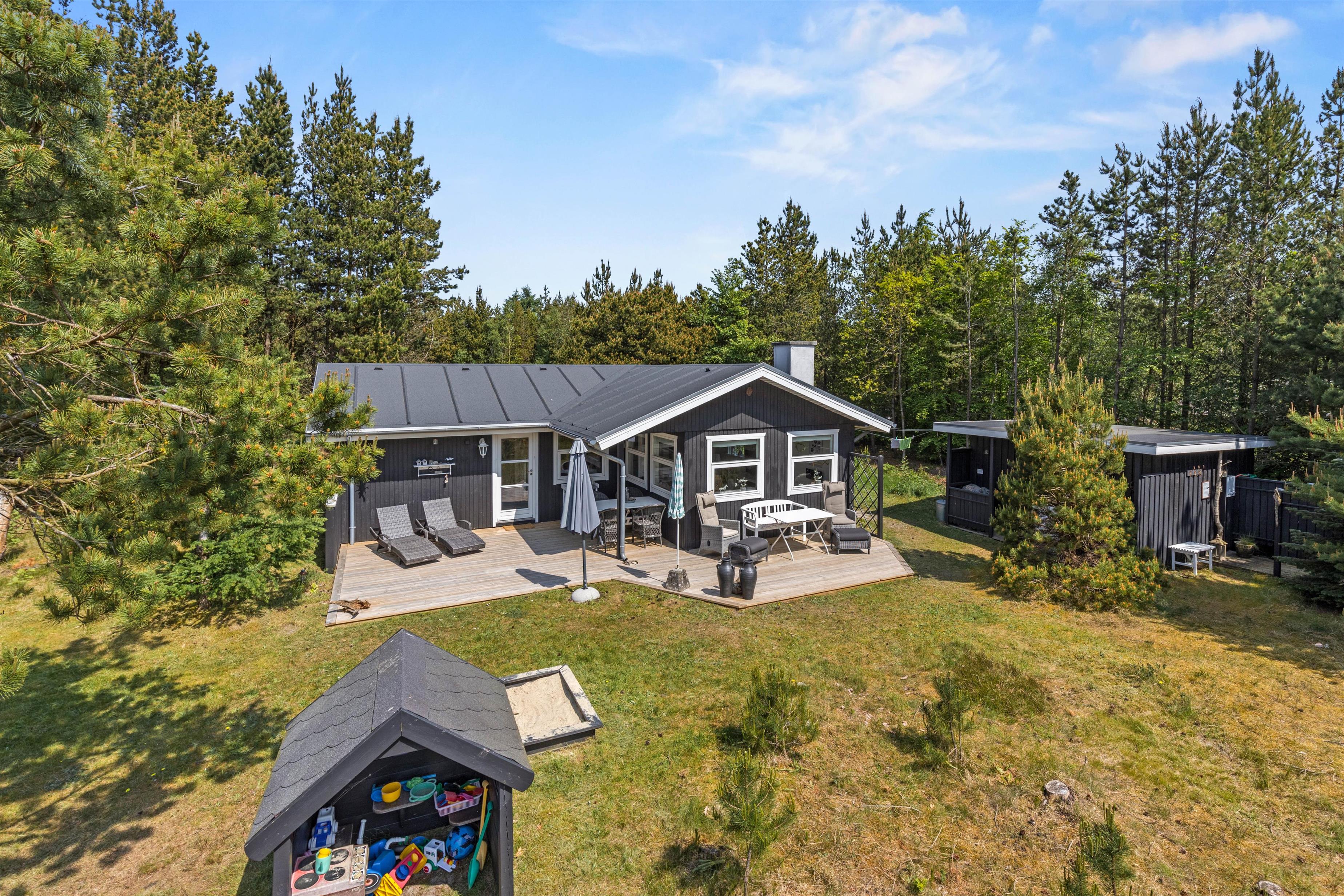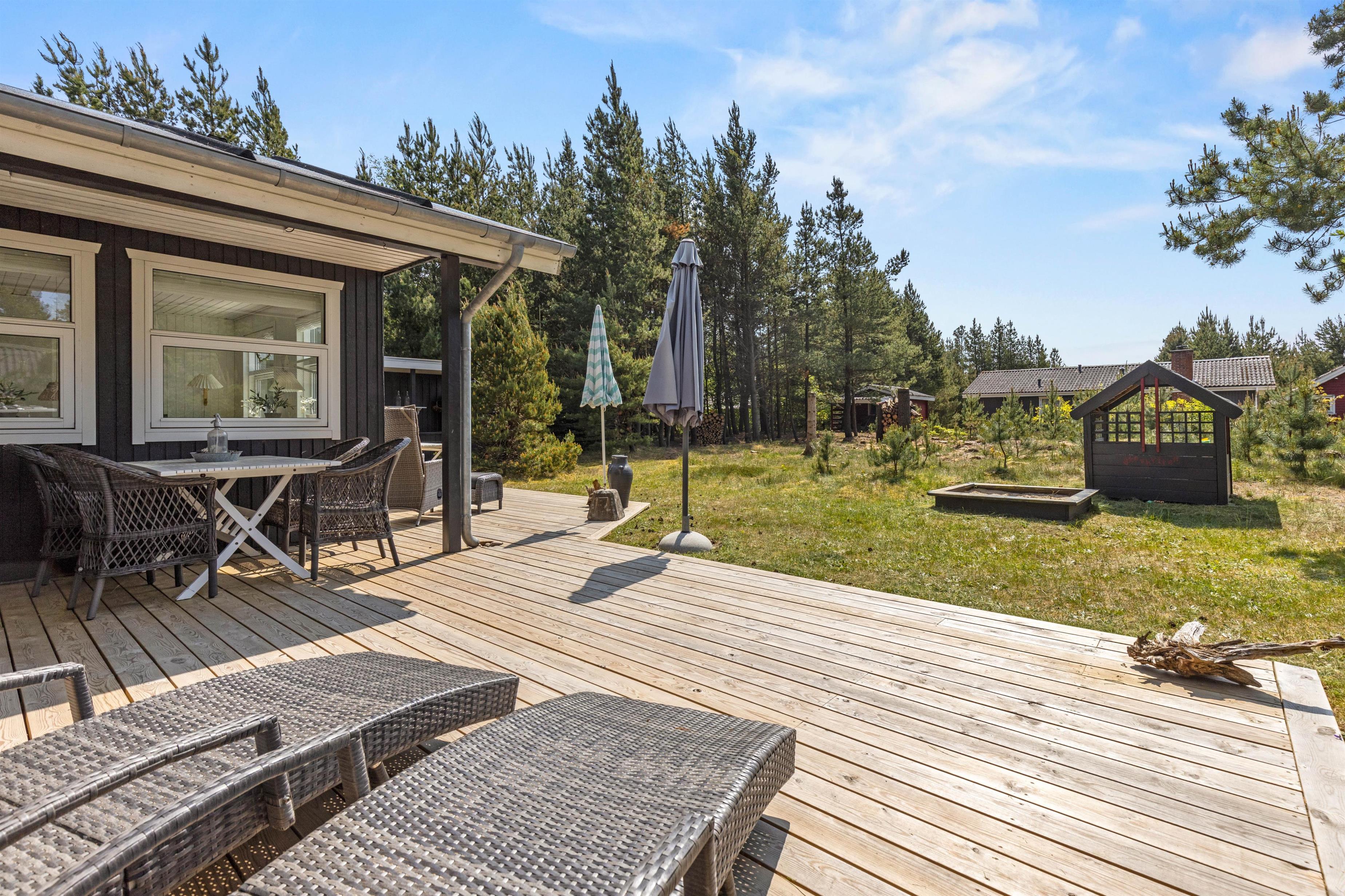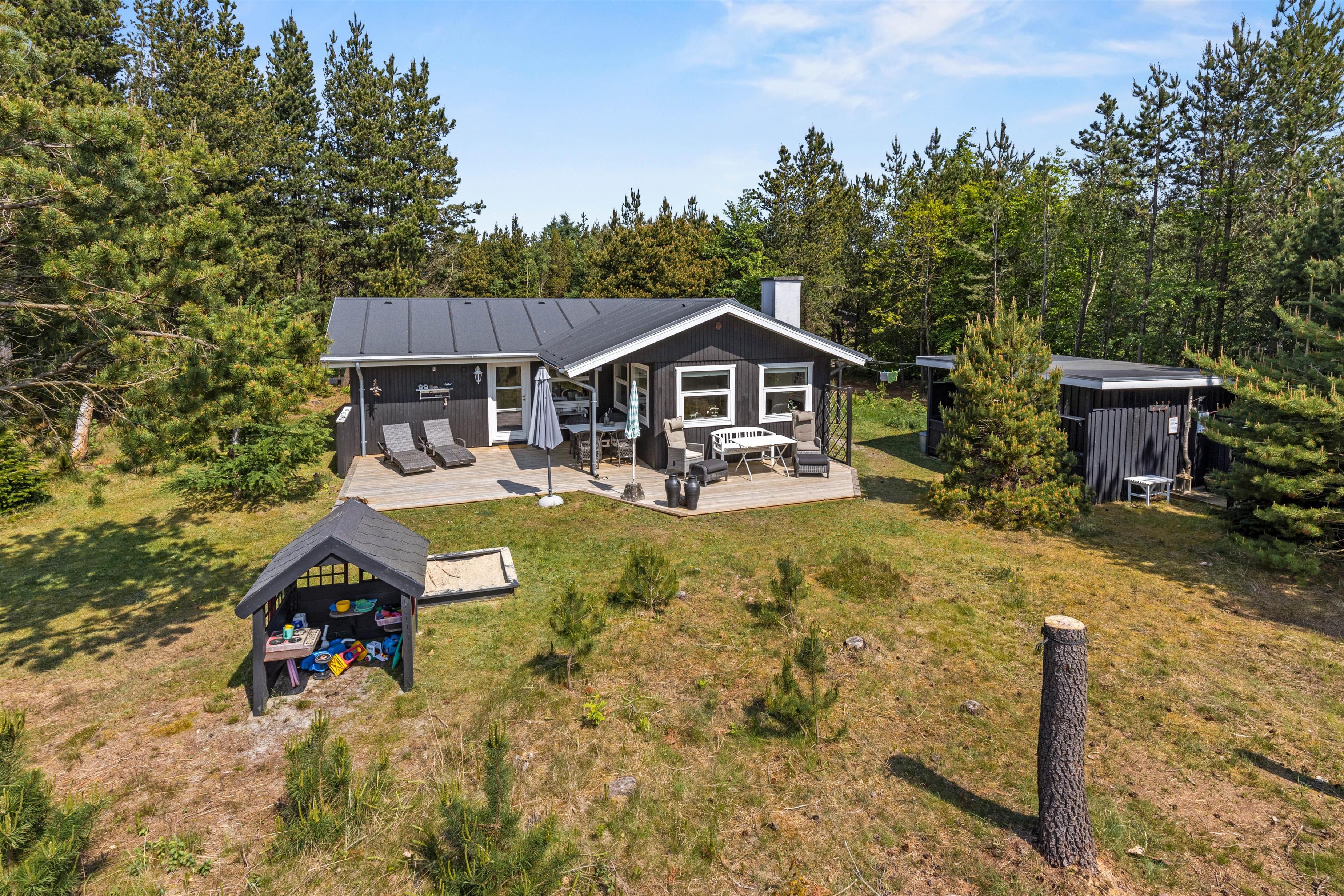 Til børnene er der en hyggelig skovlegeplads inde mellem træerne, så børnene aldrig kommer til at kede sig, mens I slapper af på terrassen.
