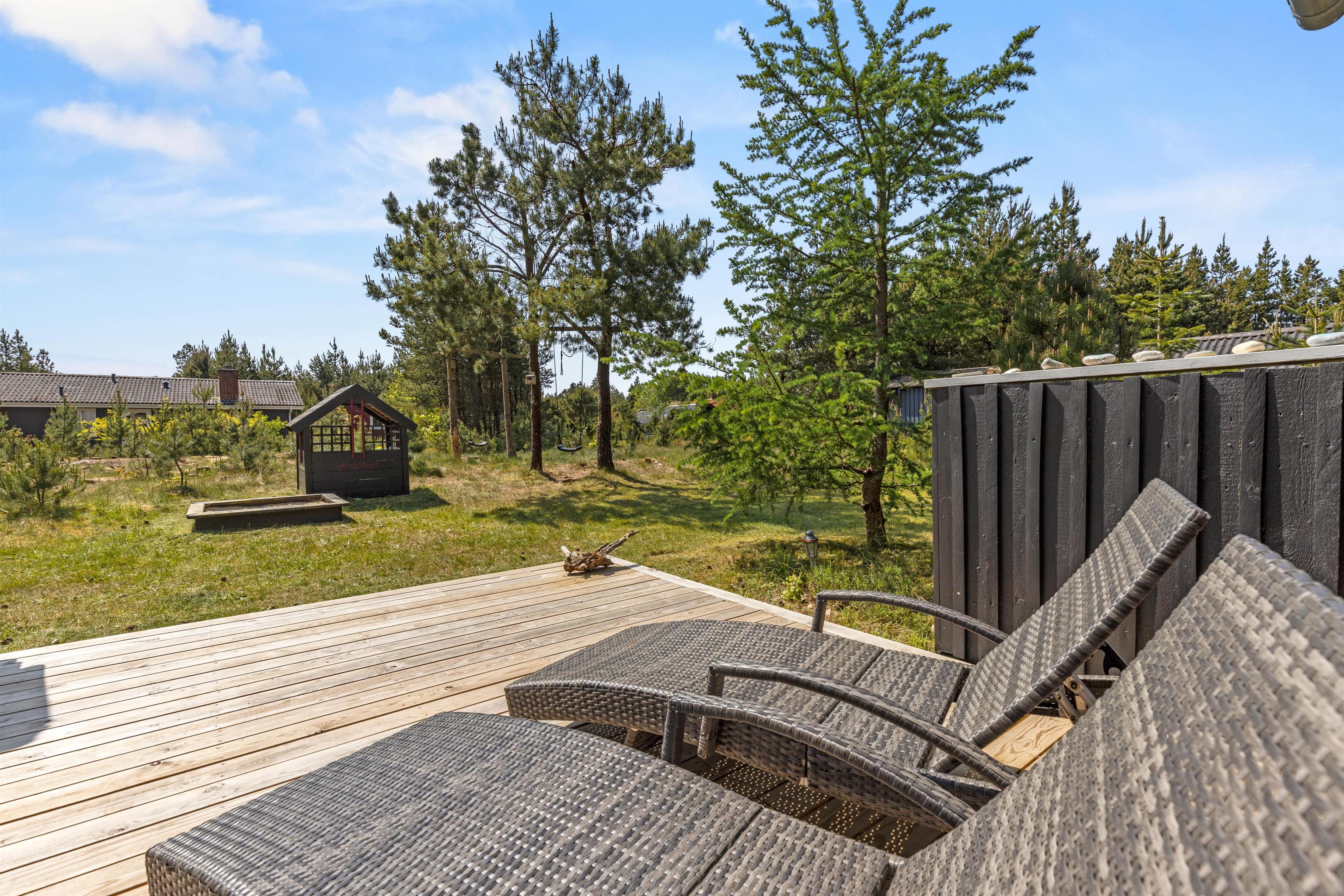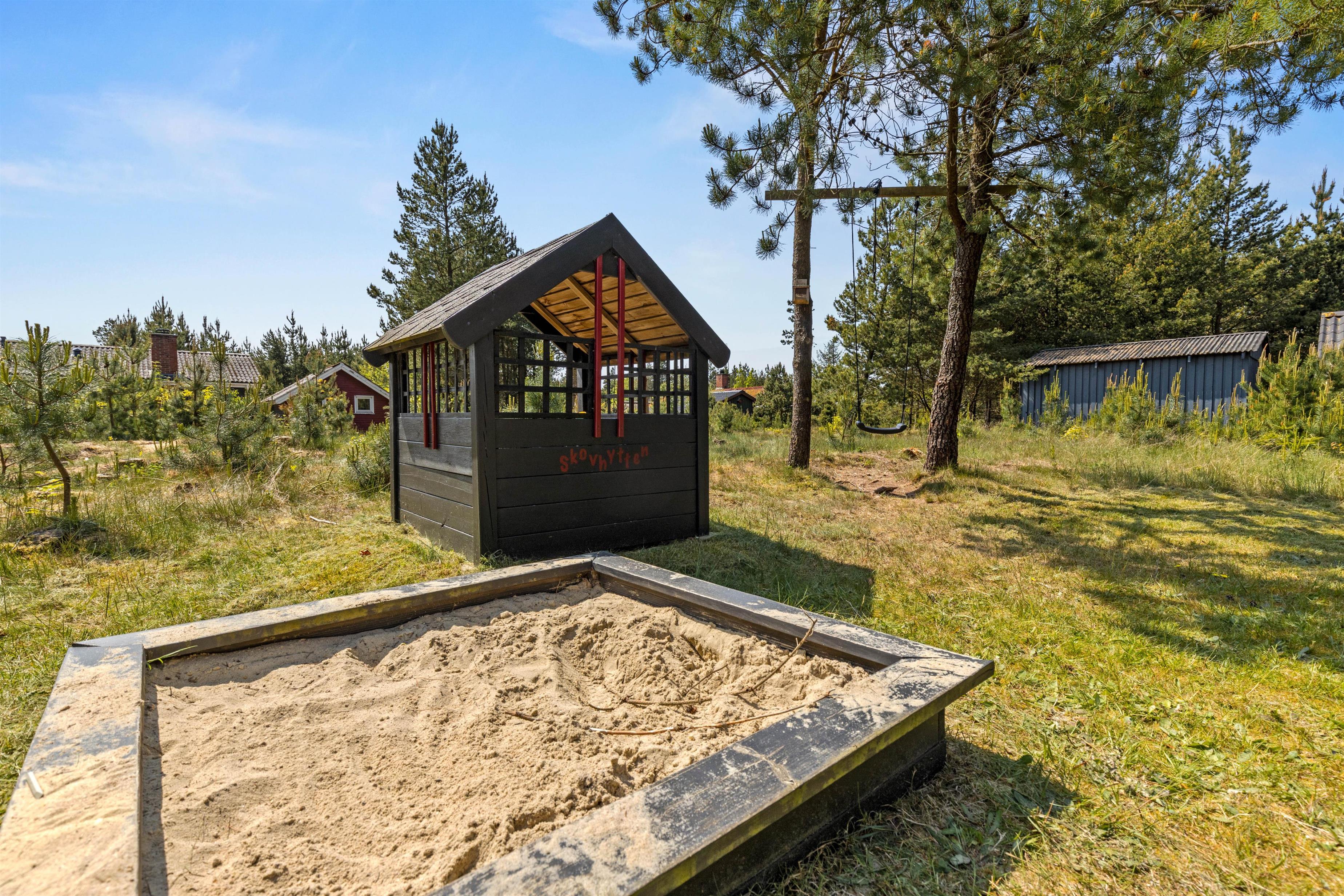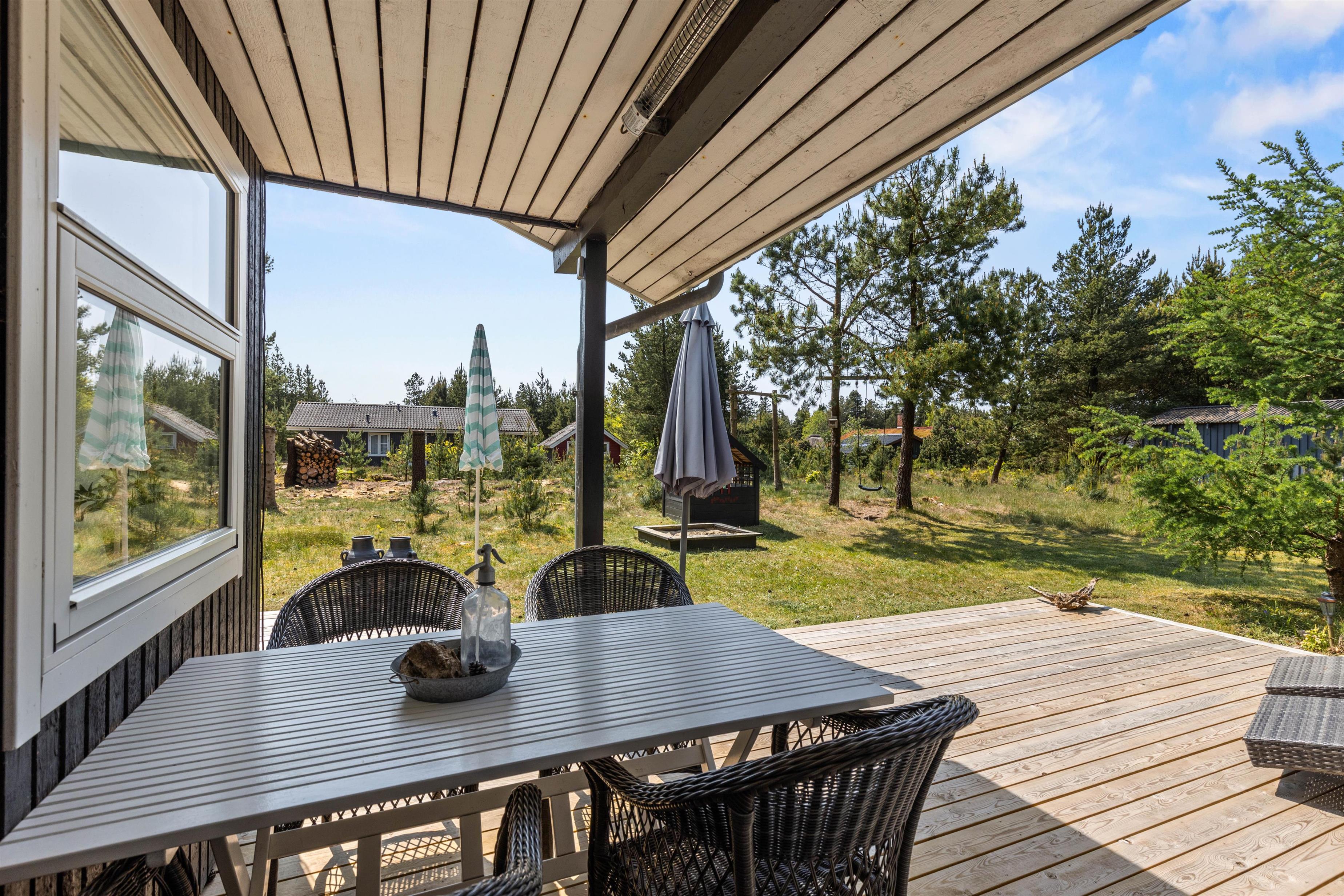 Til børnene er der en hyggelig skovlegeplads inde mellem træerne, så børnene aldrig kommer til at kede sig, mens I slapper af på terrassen.