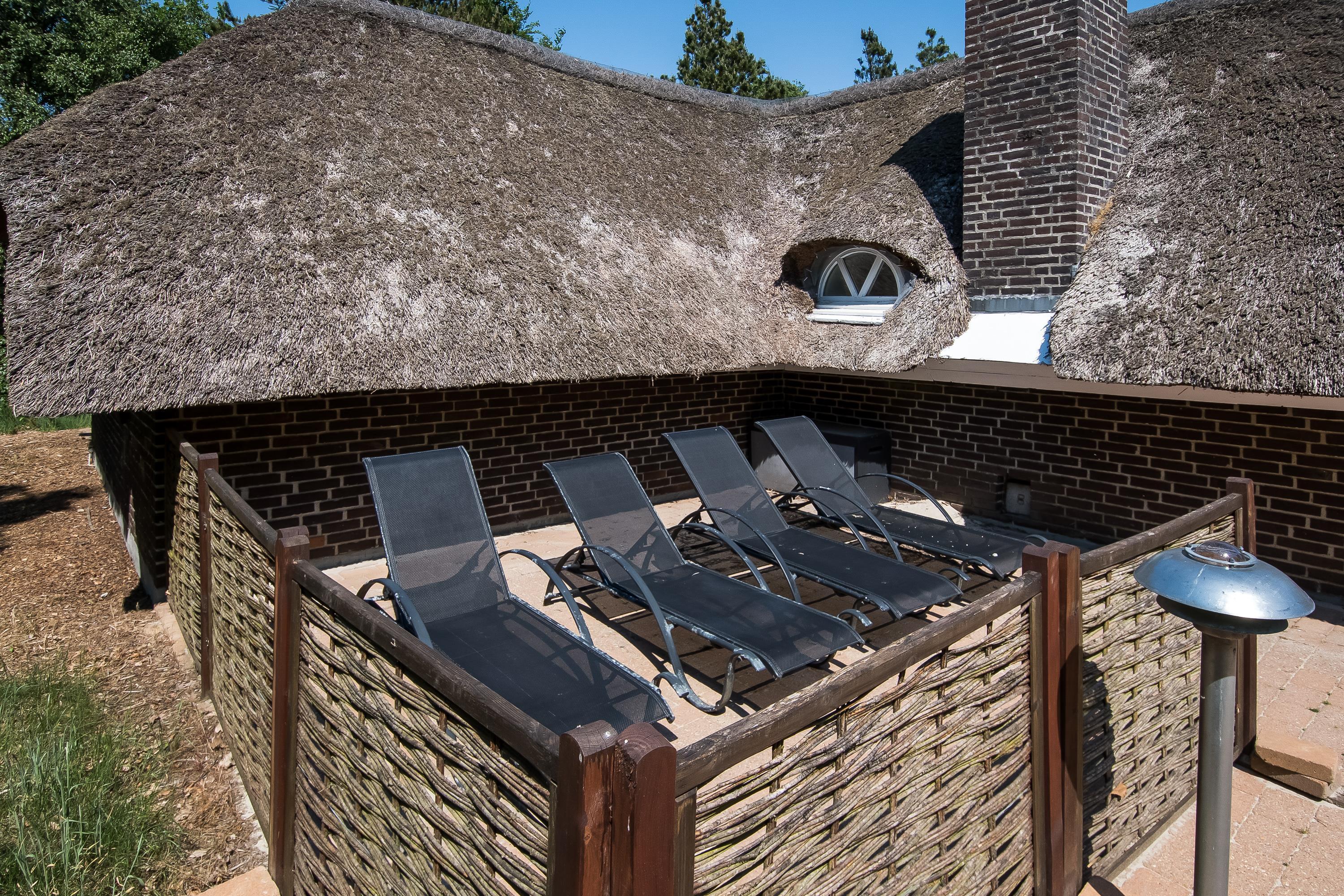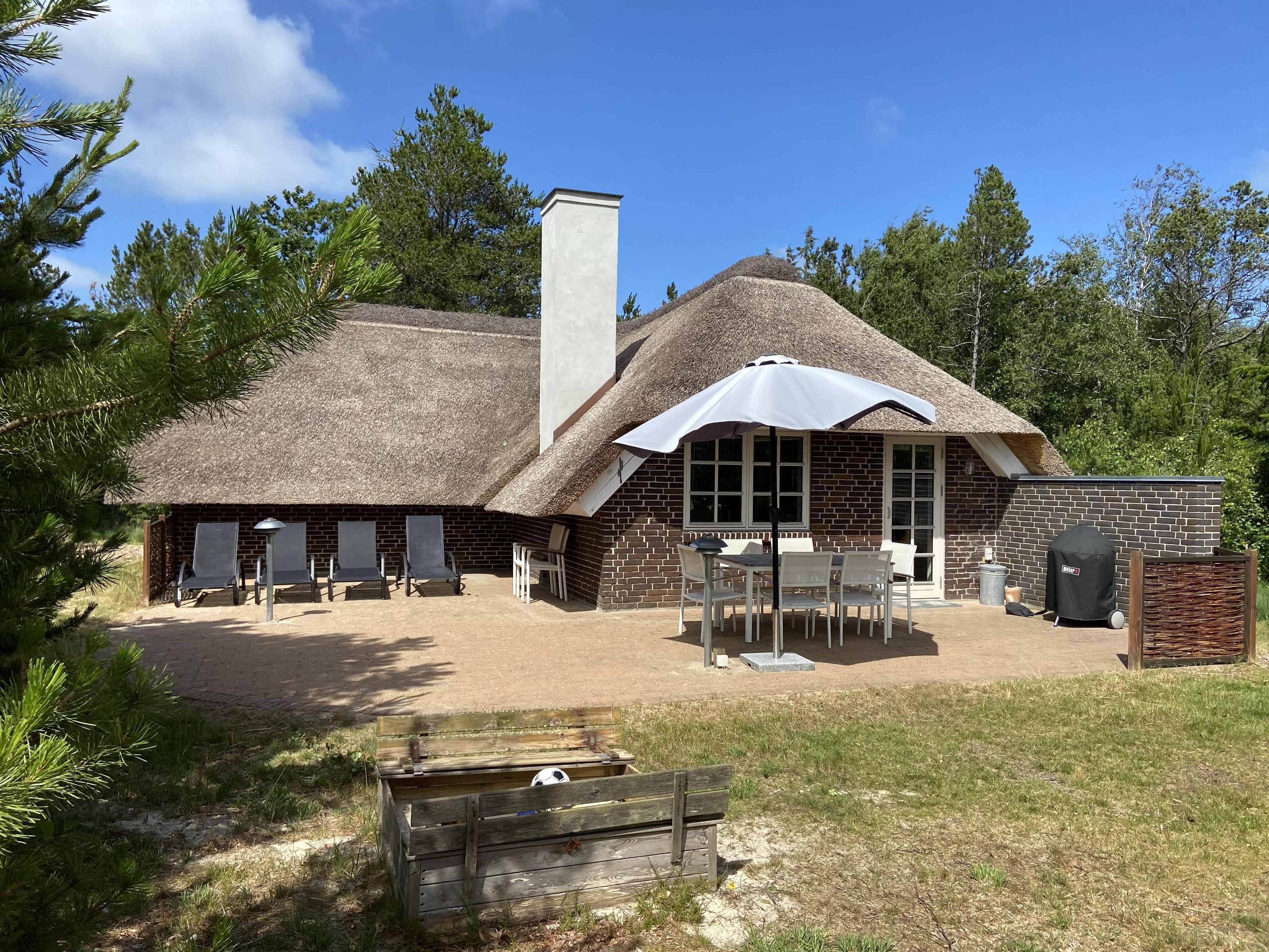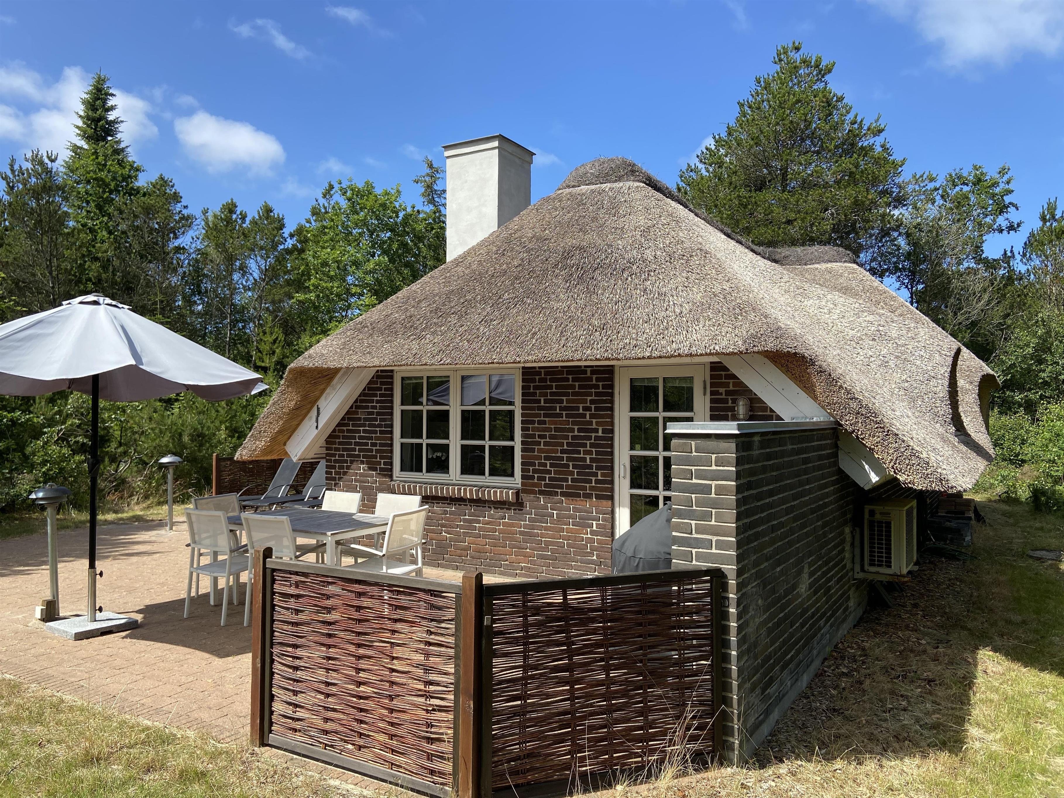 Den fine terrasse er omgivet af de høje træer, og her kan I helt ugeneret nyde ferien. Liggestole og havemøbler står klar til jer, så I kan slappe af i solen eller spise en lækker frokost i det gode vejr, og om aftenen kan I tænde op i grillen og runde dagen godt af.