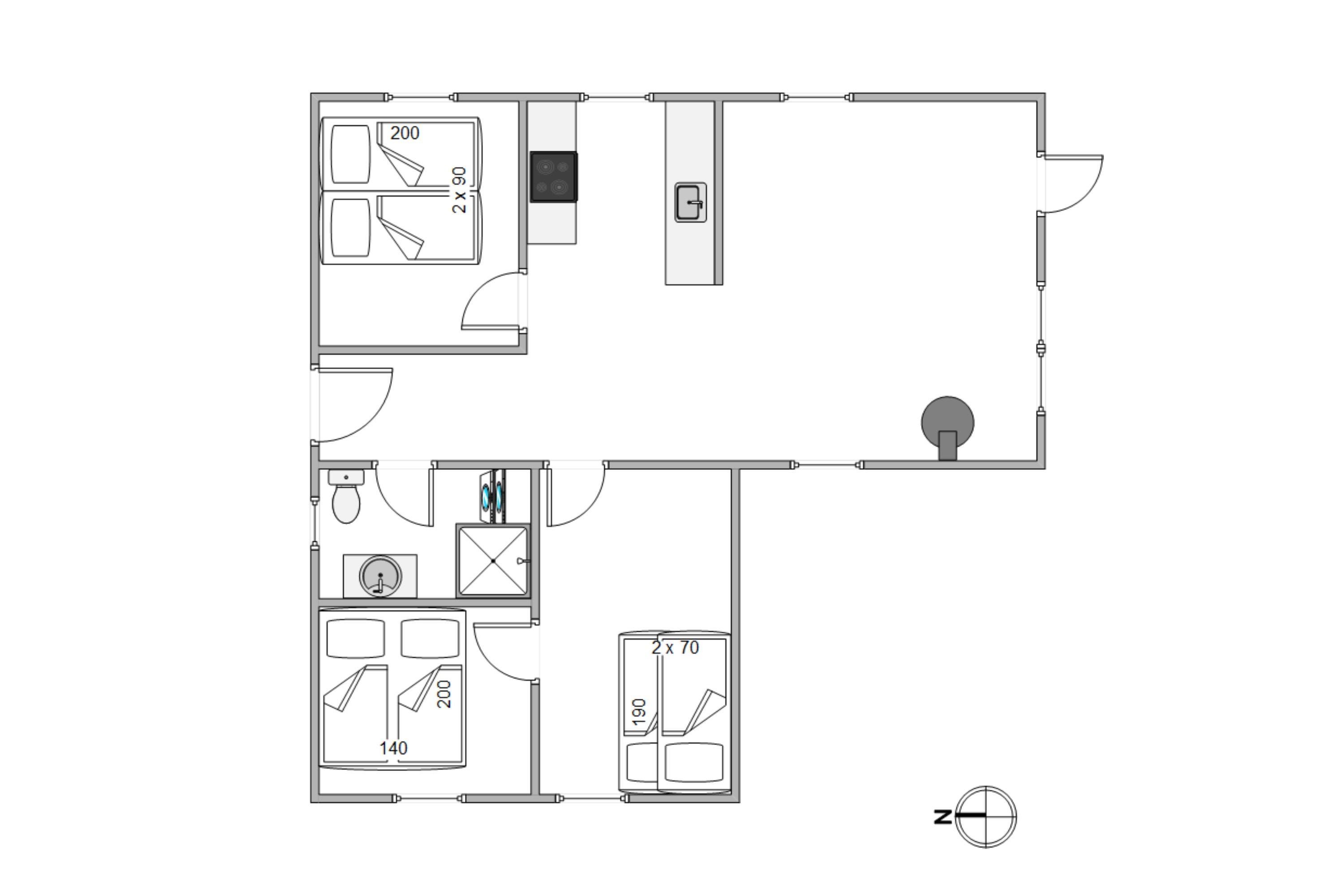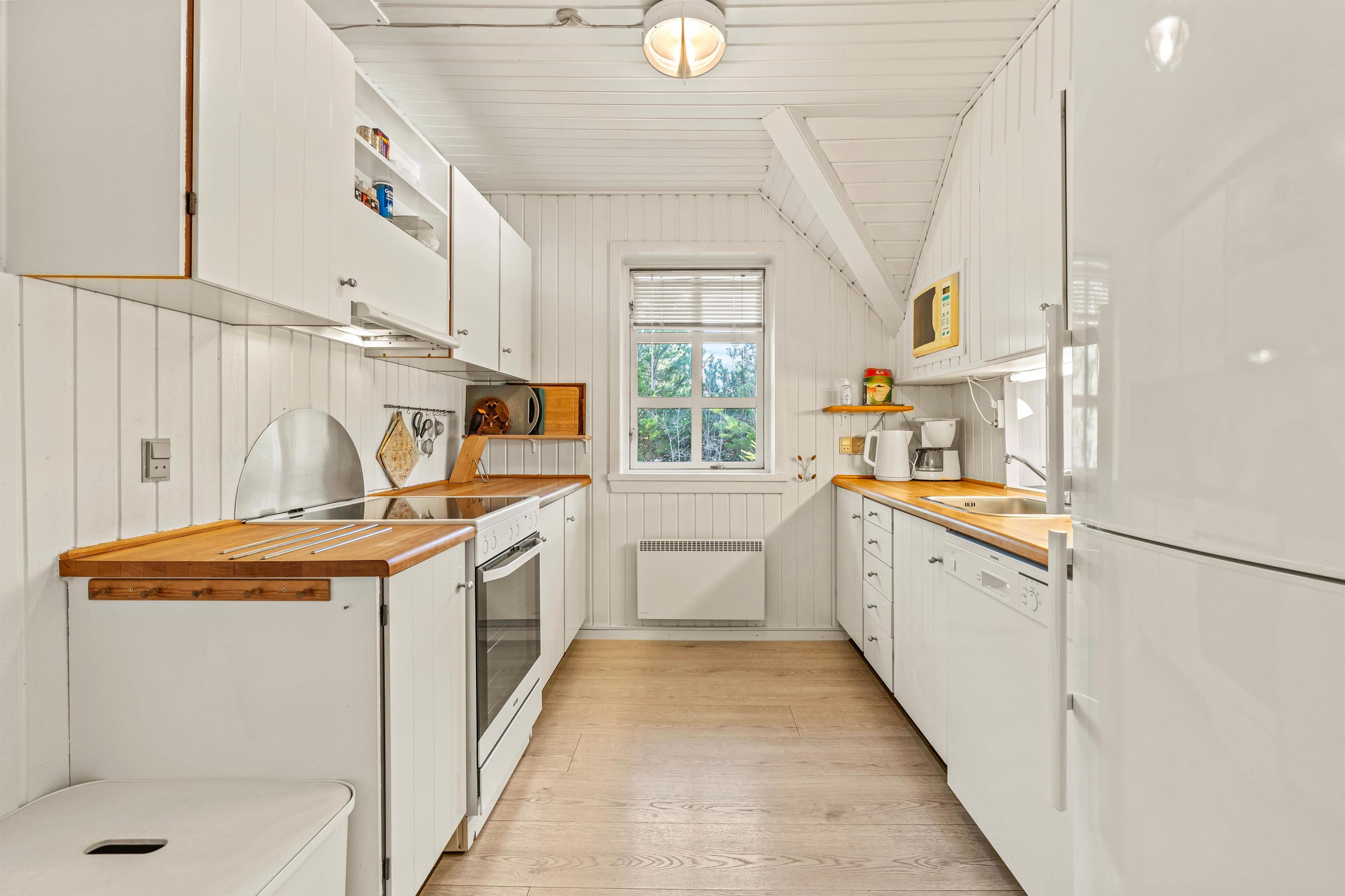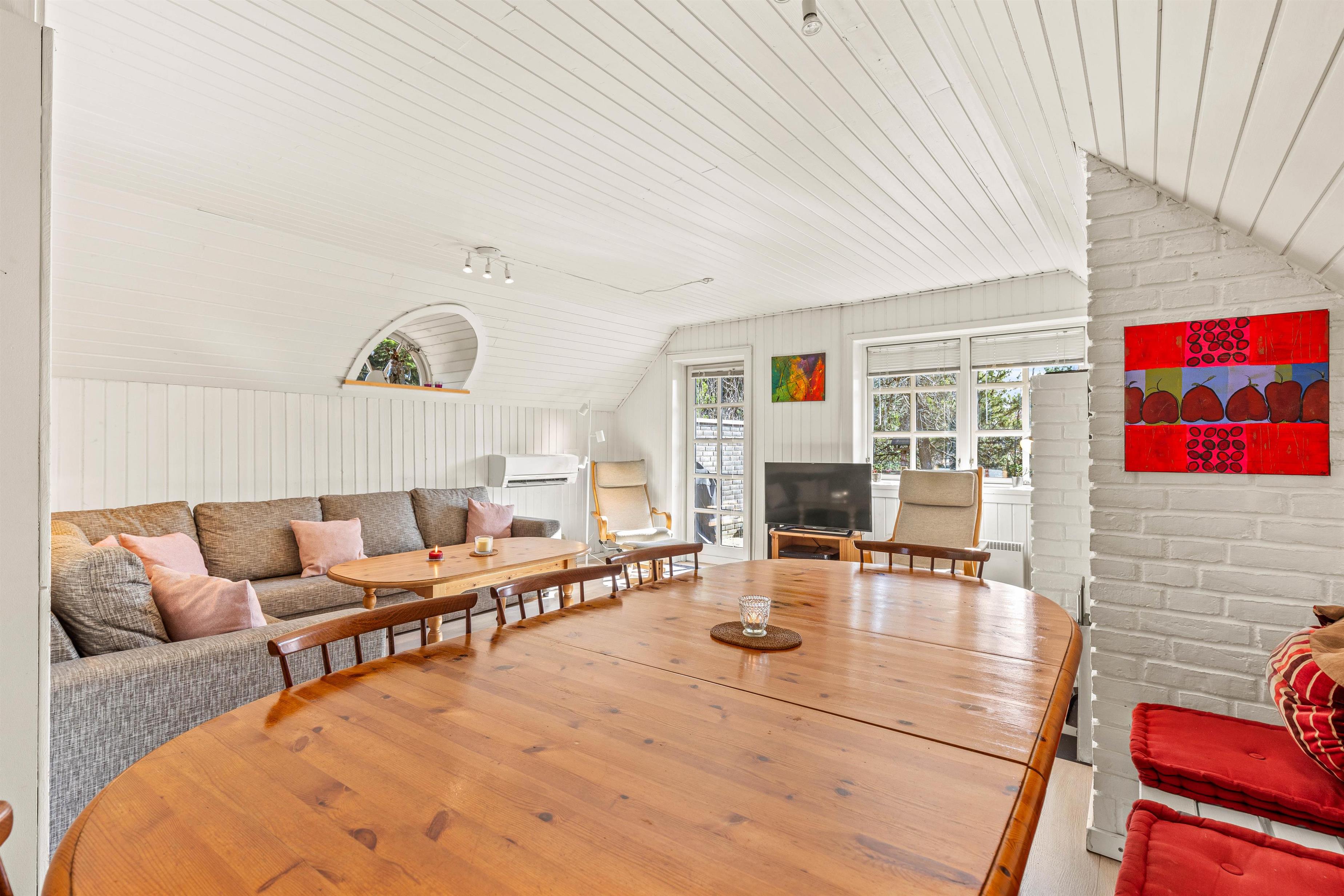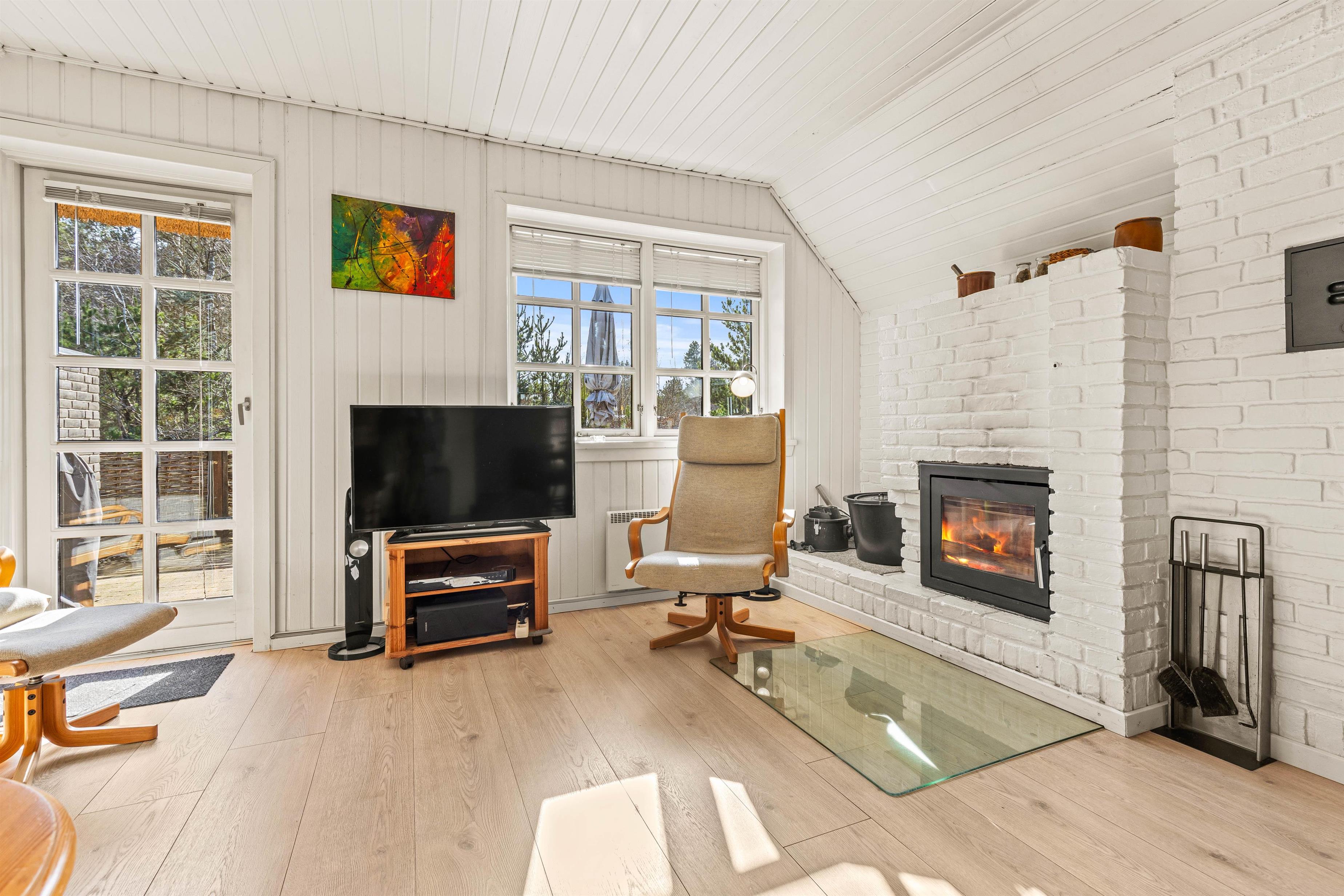 Det store sofahjørne indbyder til mange hyggelige stunder på sofaen foran den knitrende brændeovn med en god film i fjernsynet eller en spændende bog. Ved det lange spisebord kan der spilles en runde kort, og I kan sammen nyde et hjemmelavet feriemåltid, som kan tilberedes i det veludstyrede køkken. For energirigtig varme sørger luft-til-luft varmepumpen.