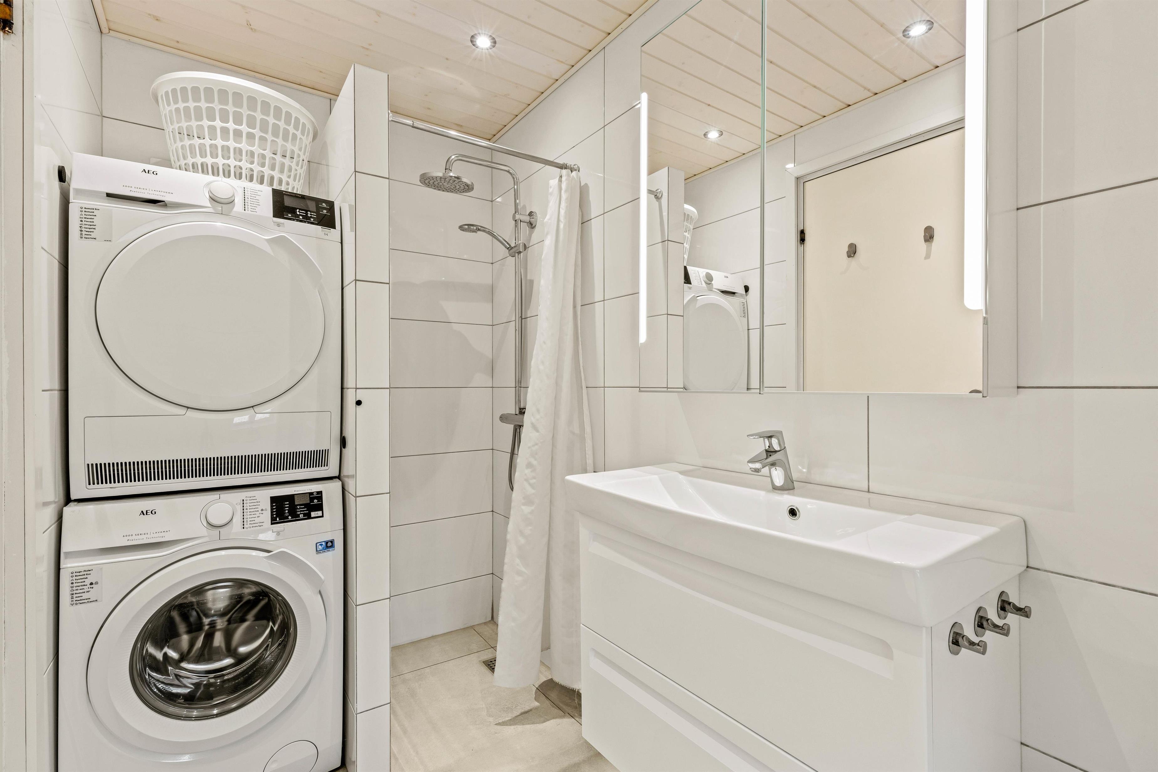 I soveværelserne står 2 dobbeltsenge og en køjesenge til rådighed. Det i 2018 nyrenoverede moderne badeværelse har gulvvarme og er både ustyret med bruser, toilet, vaskemaskine og tørretumbler, så I har så lidt arbejde at gøre som muligt.