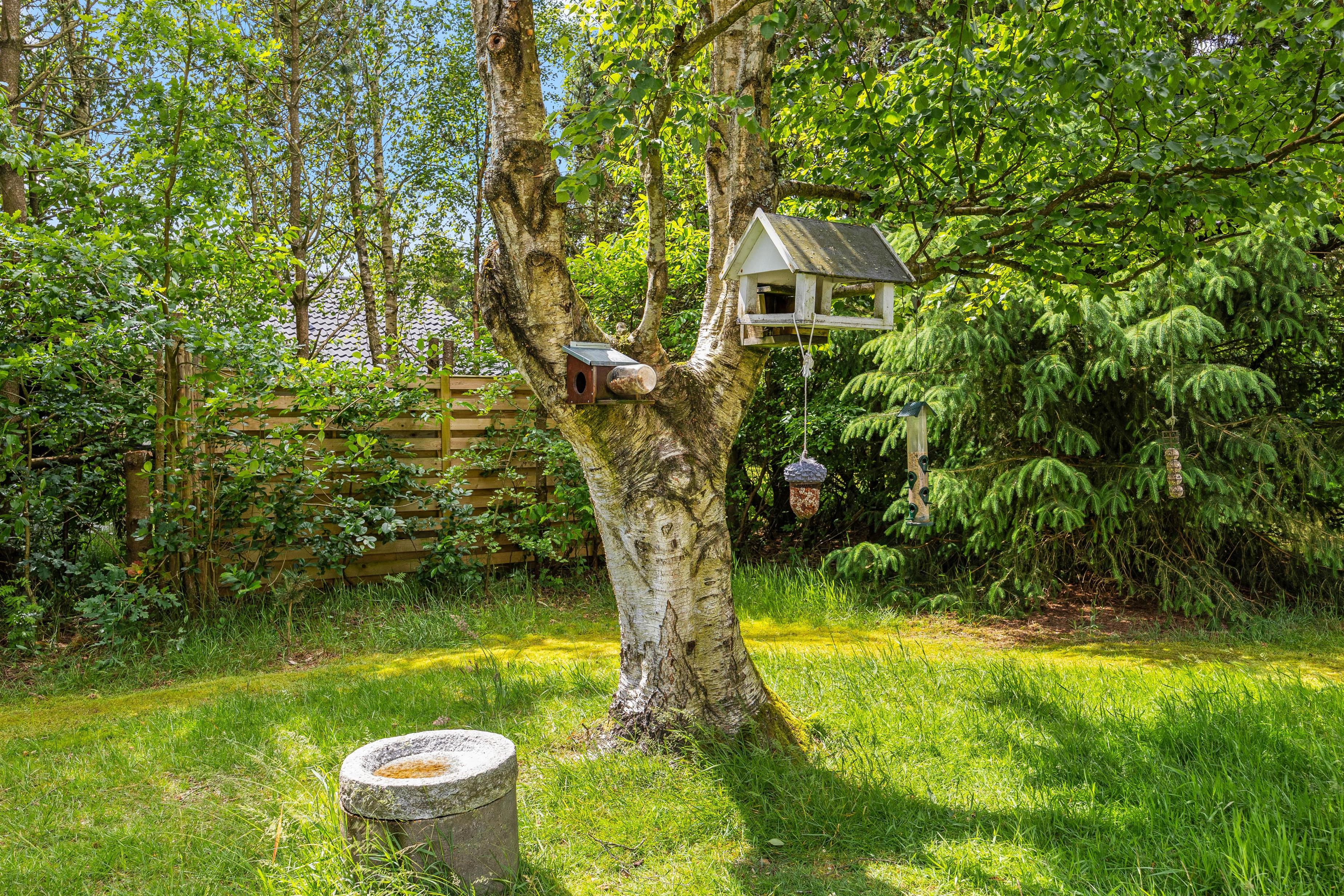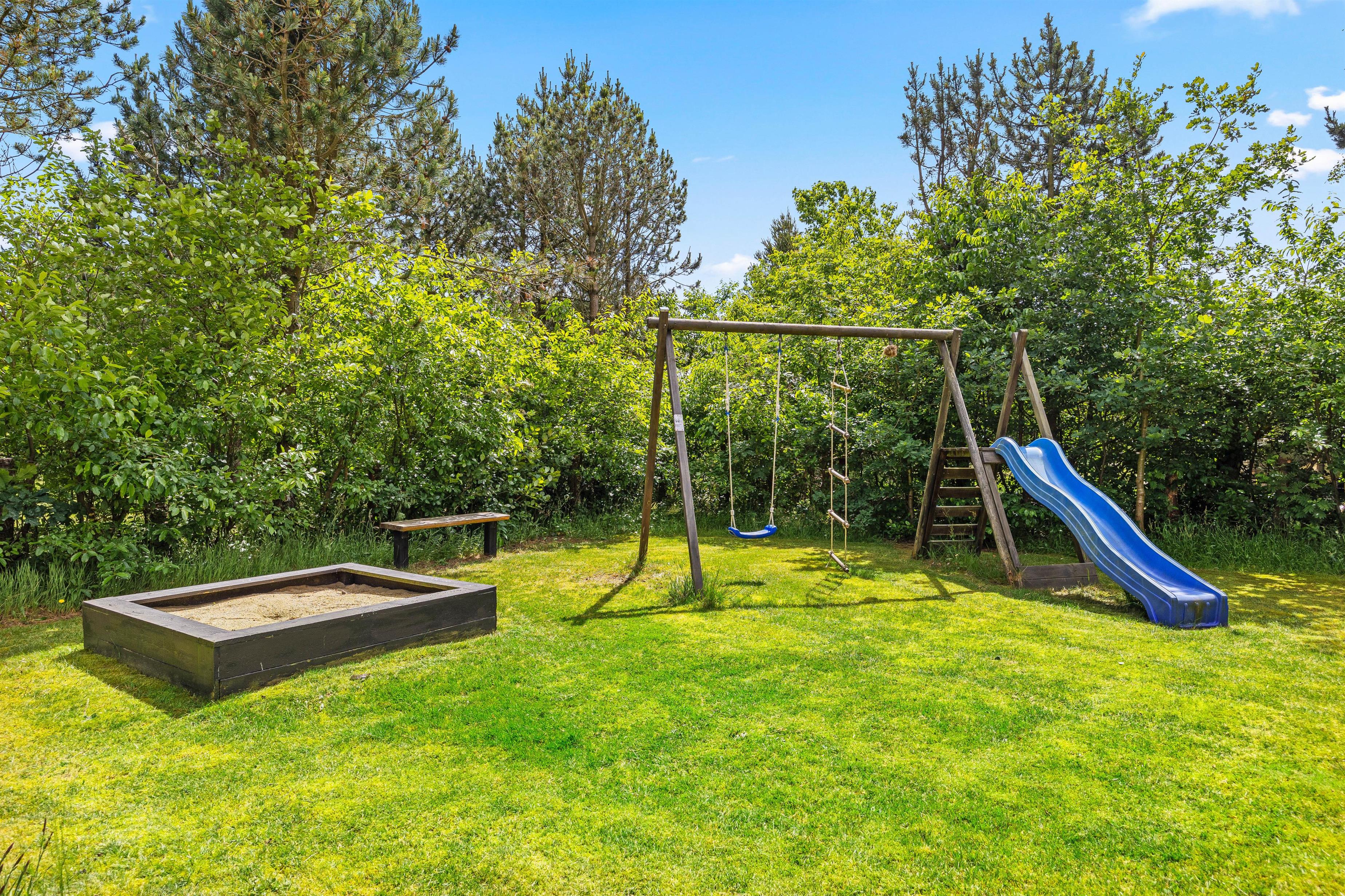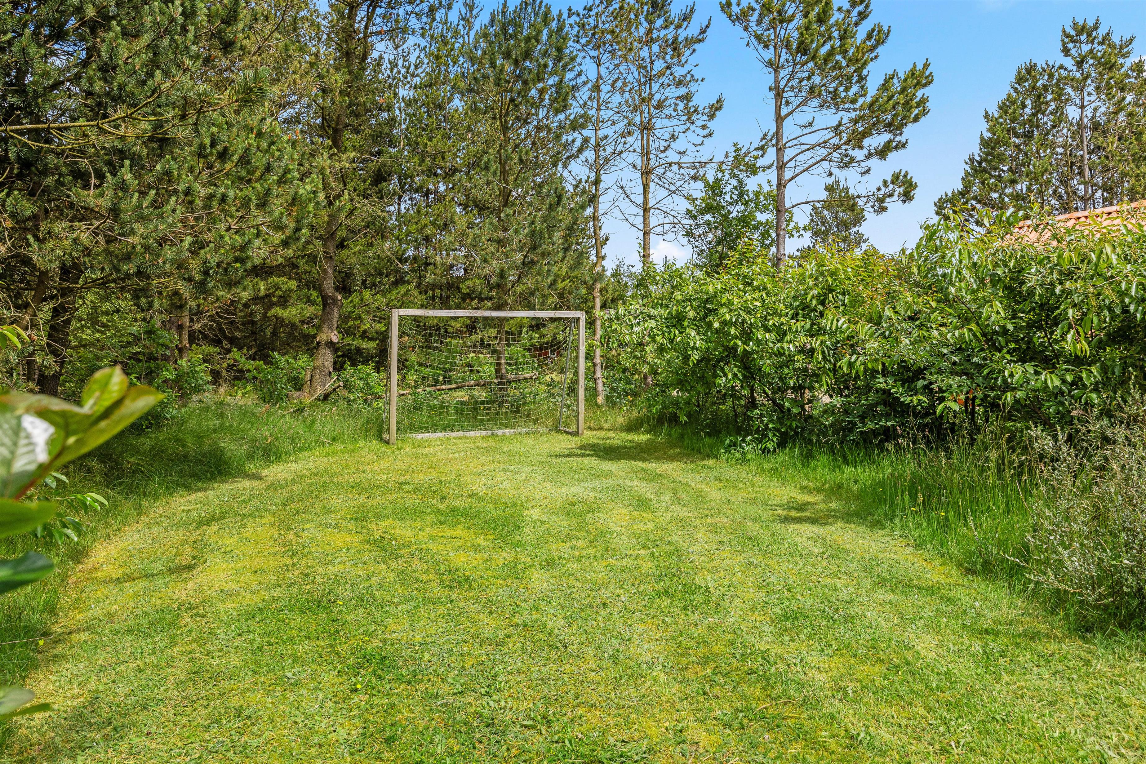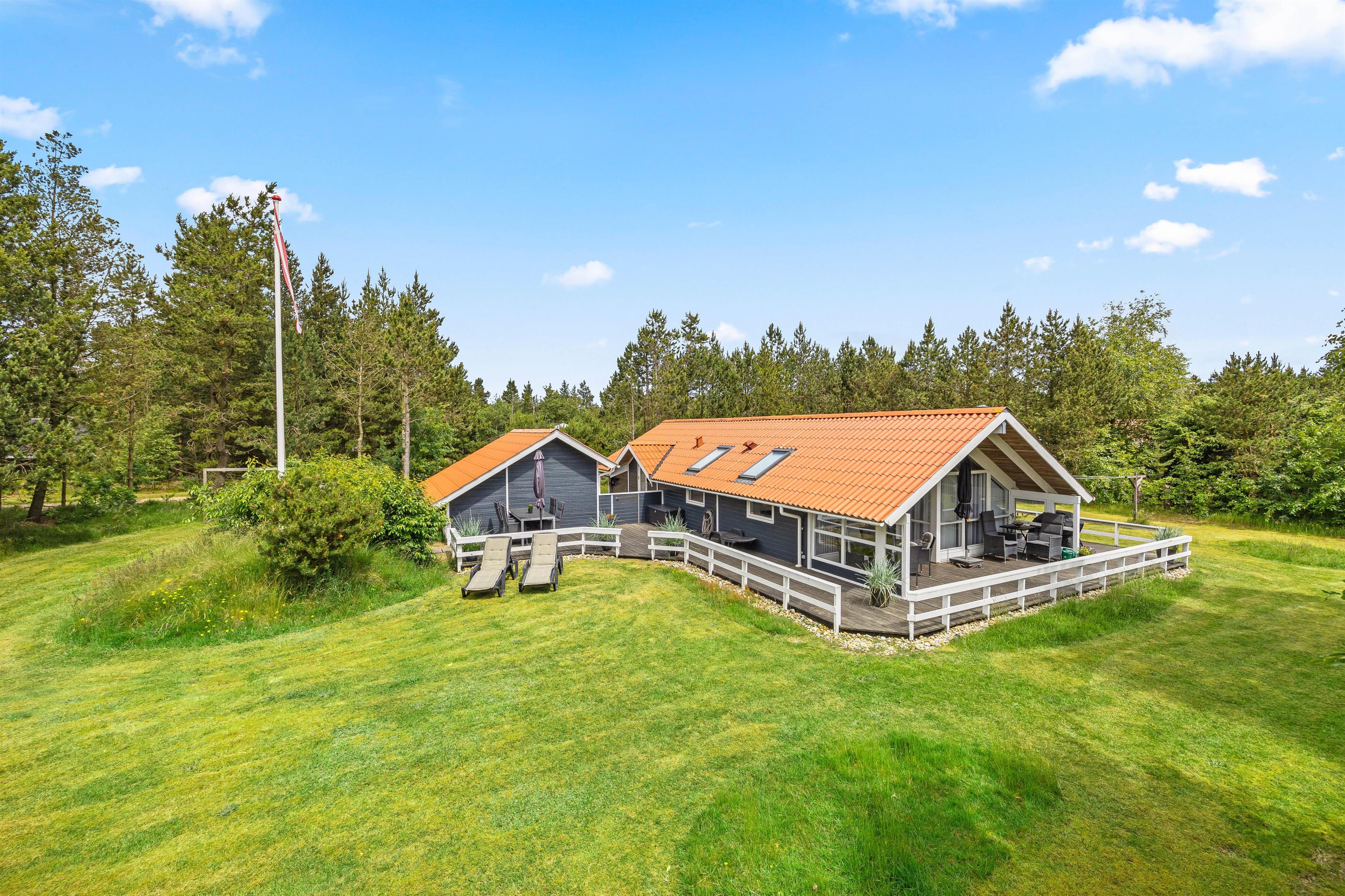 Rundt om størstedelen af sommerhuset er en terrasse, der både har en åben og en overdækket del, samt terrassen er afskærmet, så I næsten altid kan finde et sted med læ. Her står både havemøbler, solvogne og en grill til jeres rådighed, så I rigtig kan nyde en dag i haven. Både børn og hunde vil også elske det her, da den 1480 kvadratmeter store grund har en god plæne, hvor der er plads til boldspil og leg.