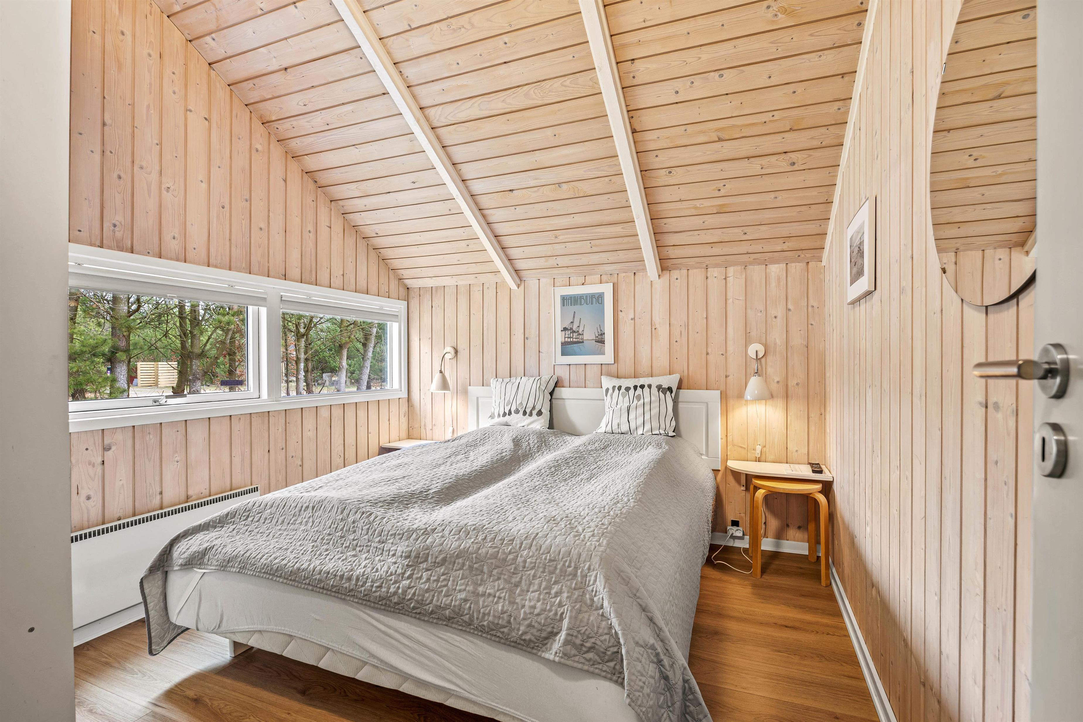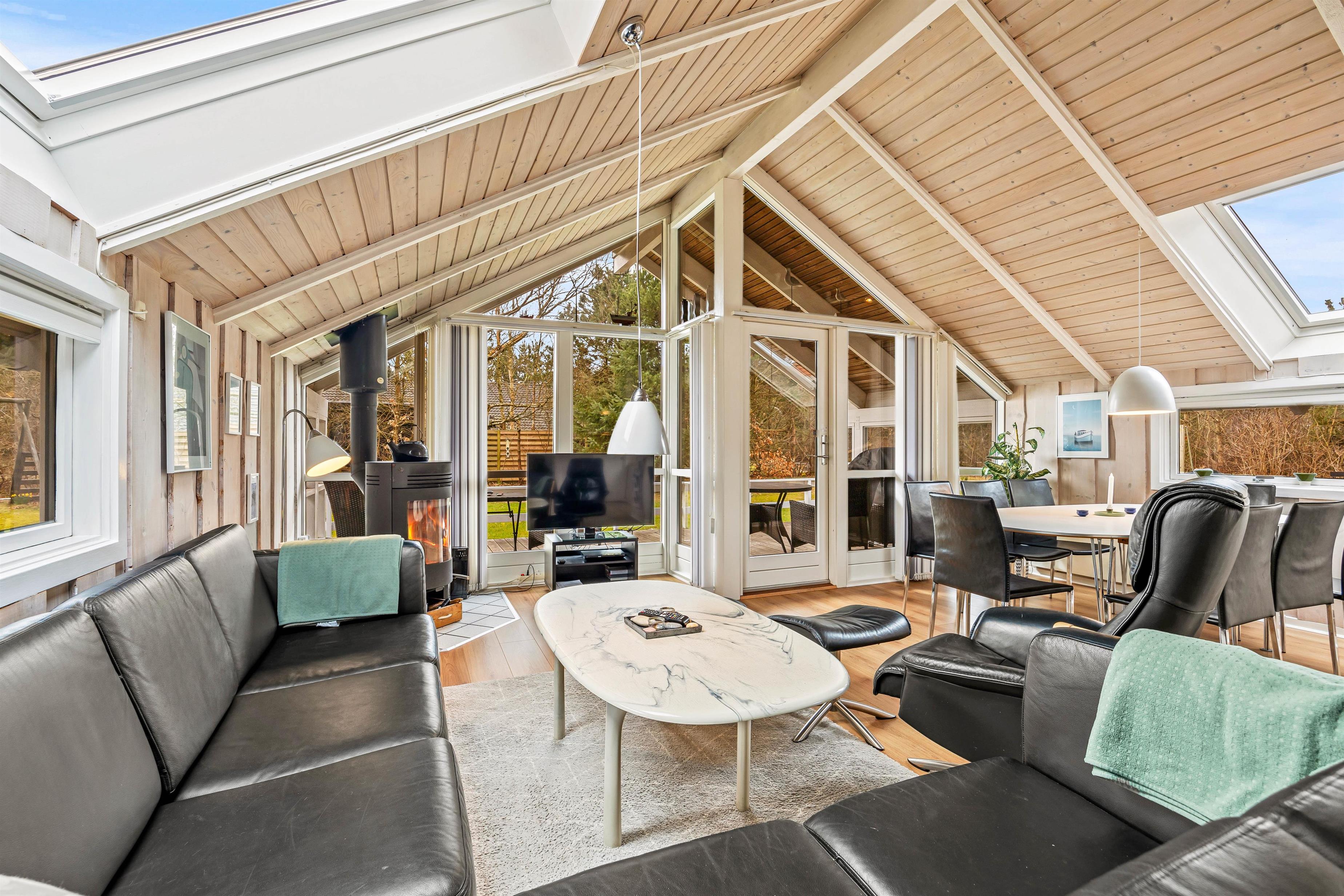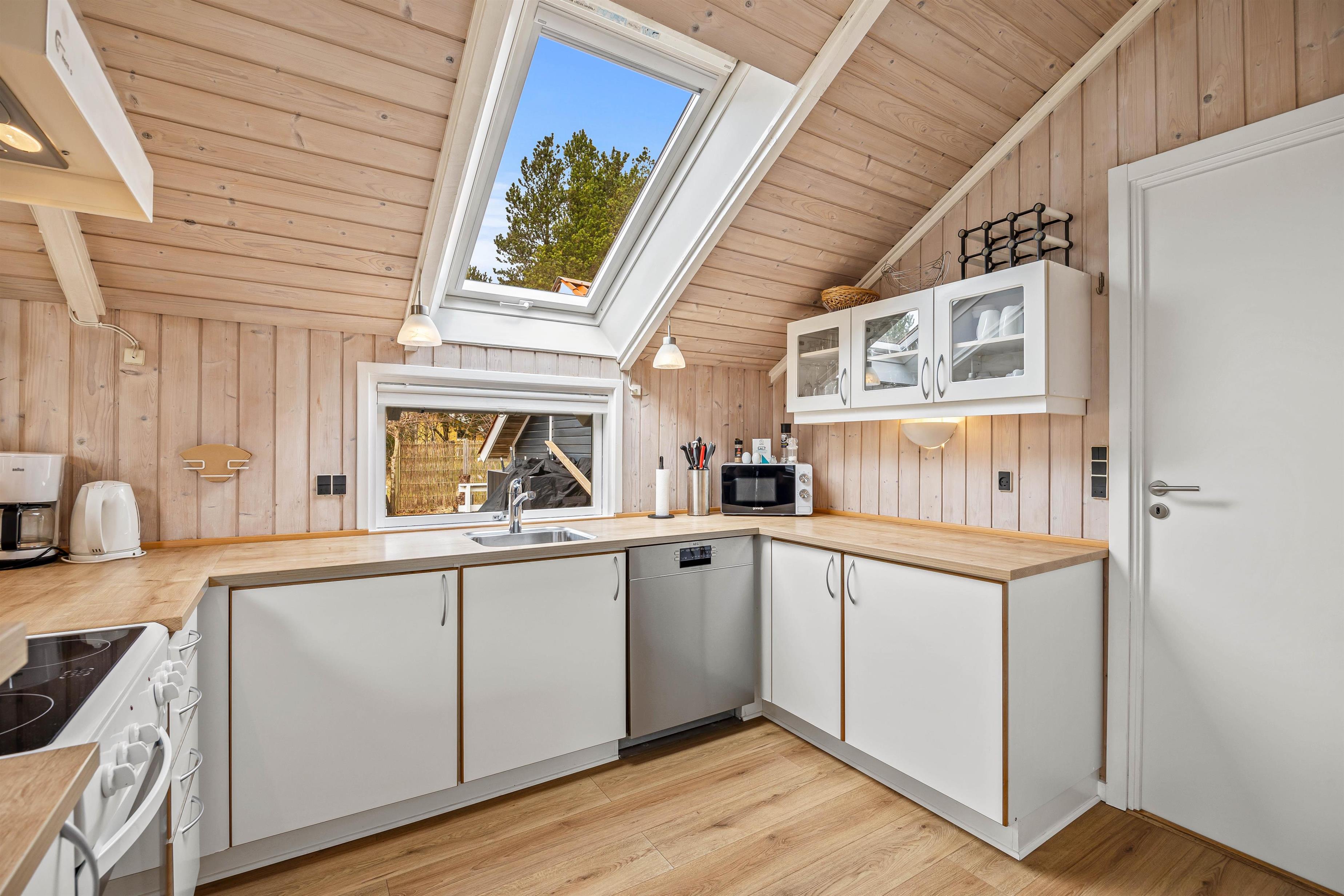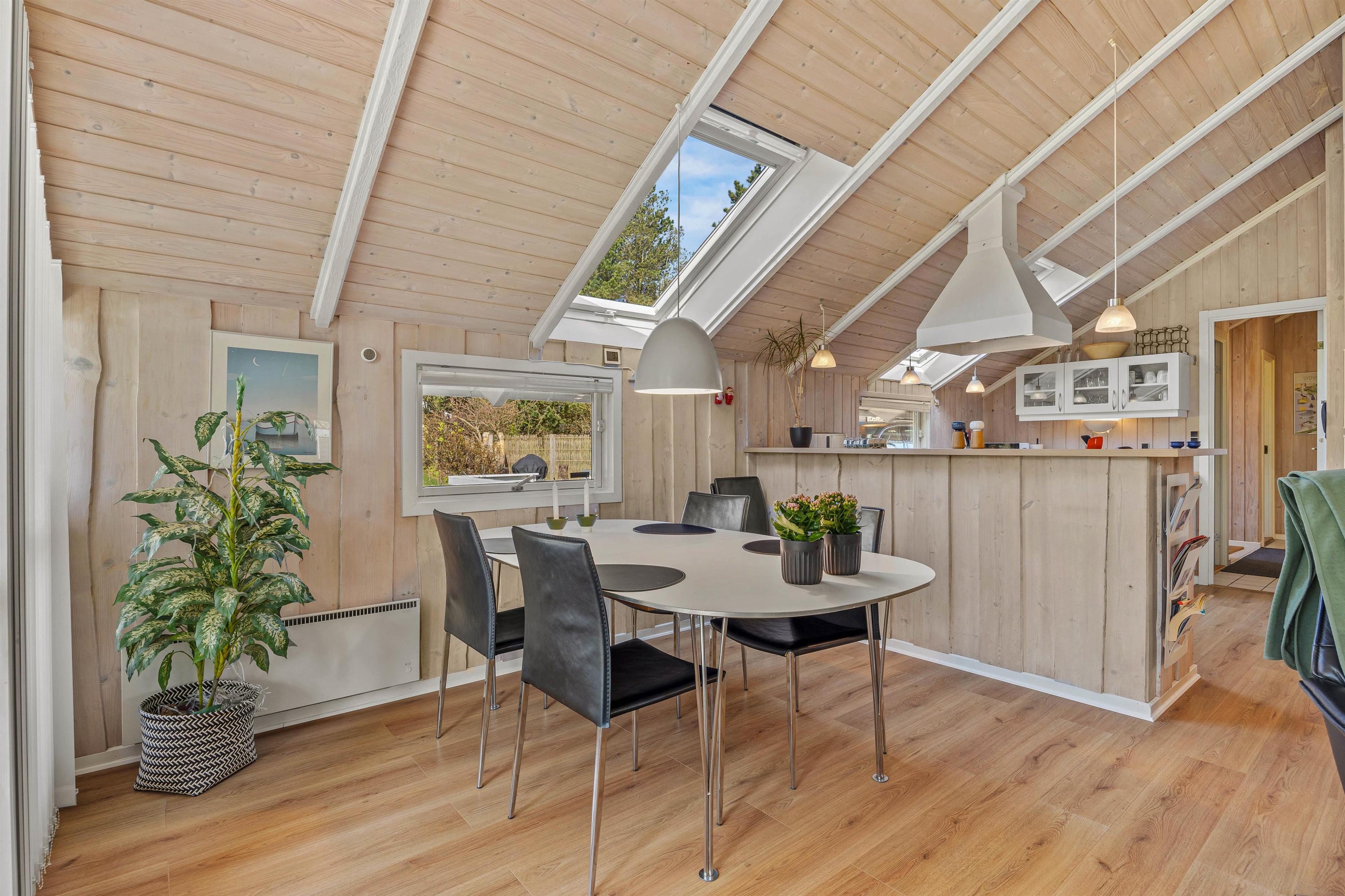 Sommerhuset fremstår lyst og indbydende, og på de 98 kvadratmeter er der blandt andet 3 gode soveværelser, som hver især er indrettet med en dobbeltseng, der måler 160 cm x 200 cm. Det store opholdsrum, hvor stue, køkken og spisestue er samlet, er det perfekte sted at nyde hinandens nærvær, mens I hver især laver noget forskelligt – lægger puslespil ved bordet, læser en bog i sofaen eller tilbereder lækre måltider.