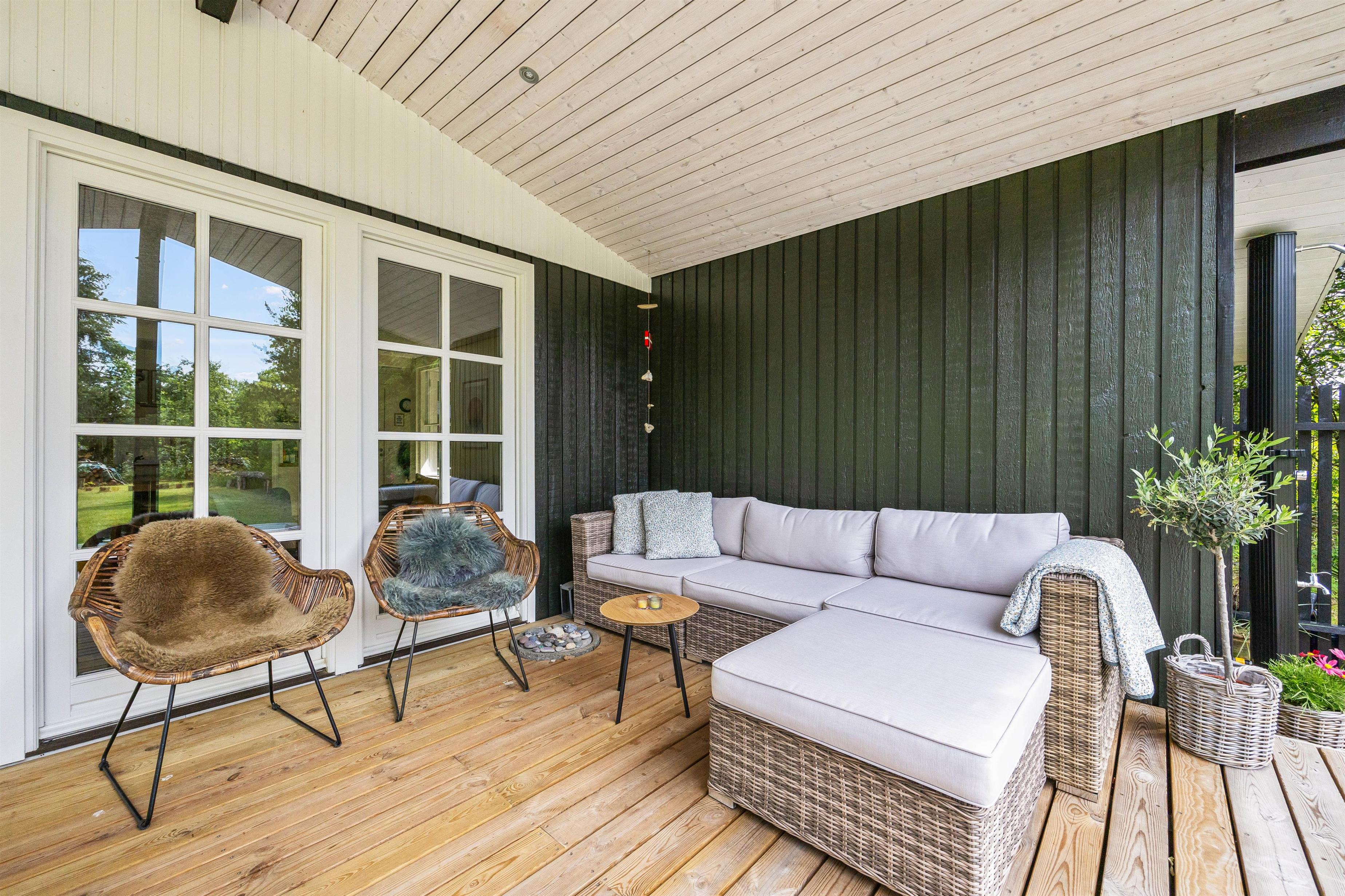 Fra stuen kan I gå direkte ud på terrassen, der både har en overdækket og åben del, så I kan sidde udenfor uanset vejret. Her finder I både havemøbler, solvogne og en grill, så I rigtig kan slappe af og lave lækre måltider, der smager af sol og sommer.