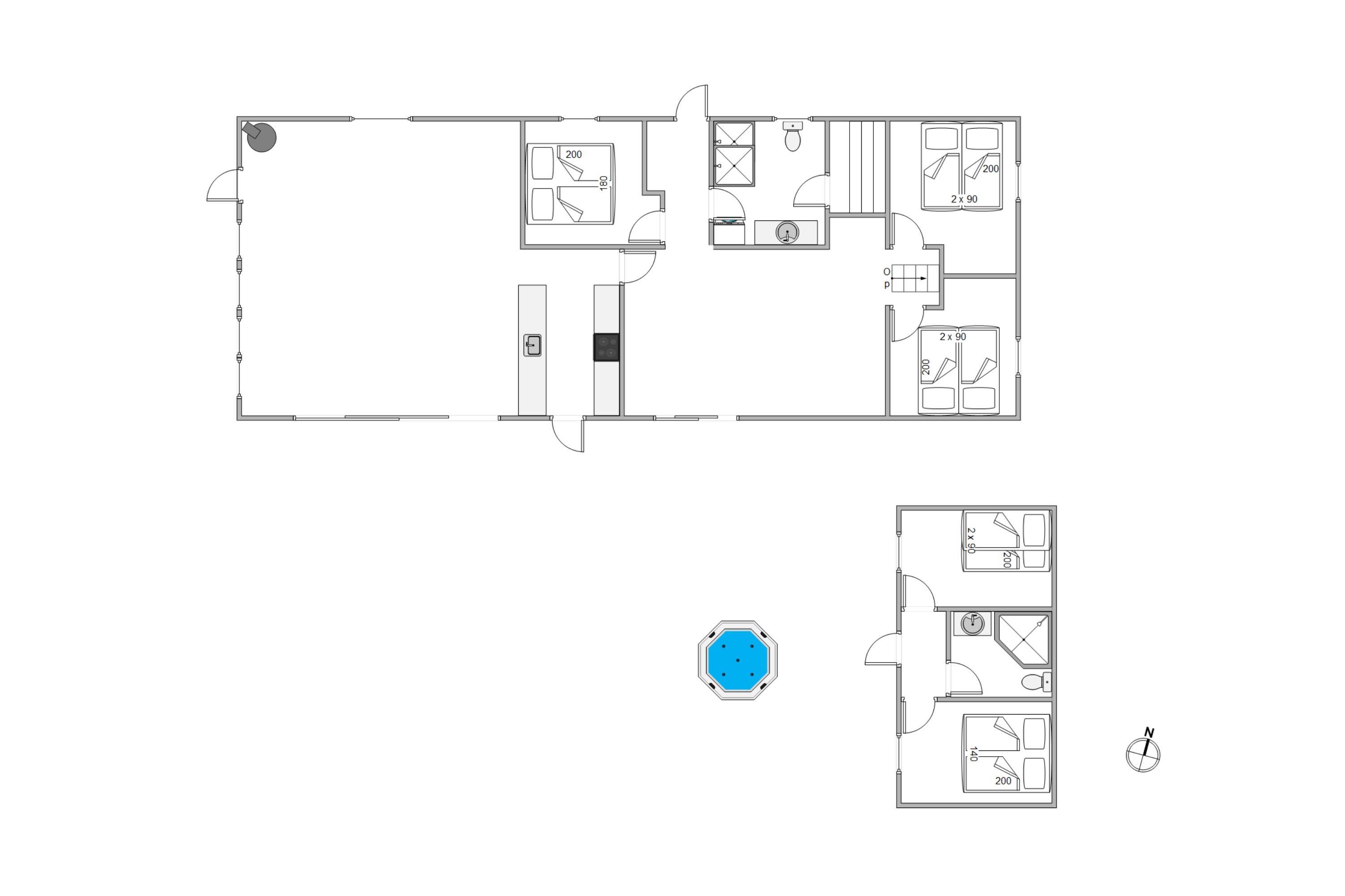 Sommerhuset er indrettet med 5 soveværelser, hvoraf 2 af dem er at finde i annekset, hvor I også finder det ene af sommerhusets 2 badeværelser. På badeværelset i hovedhuset er der en lækker sauna, hvor I kan blive varmet godt igennem efter en tur i det forfriskende Vesterhav.