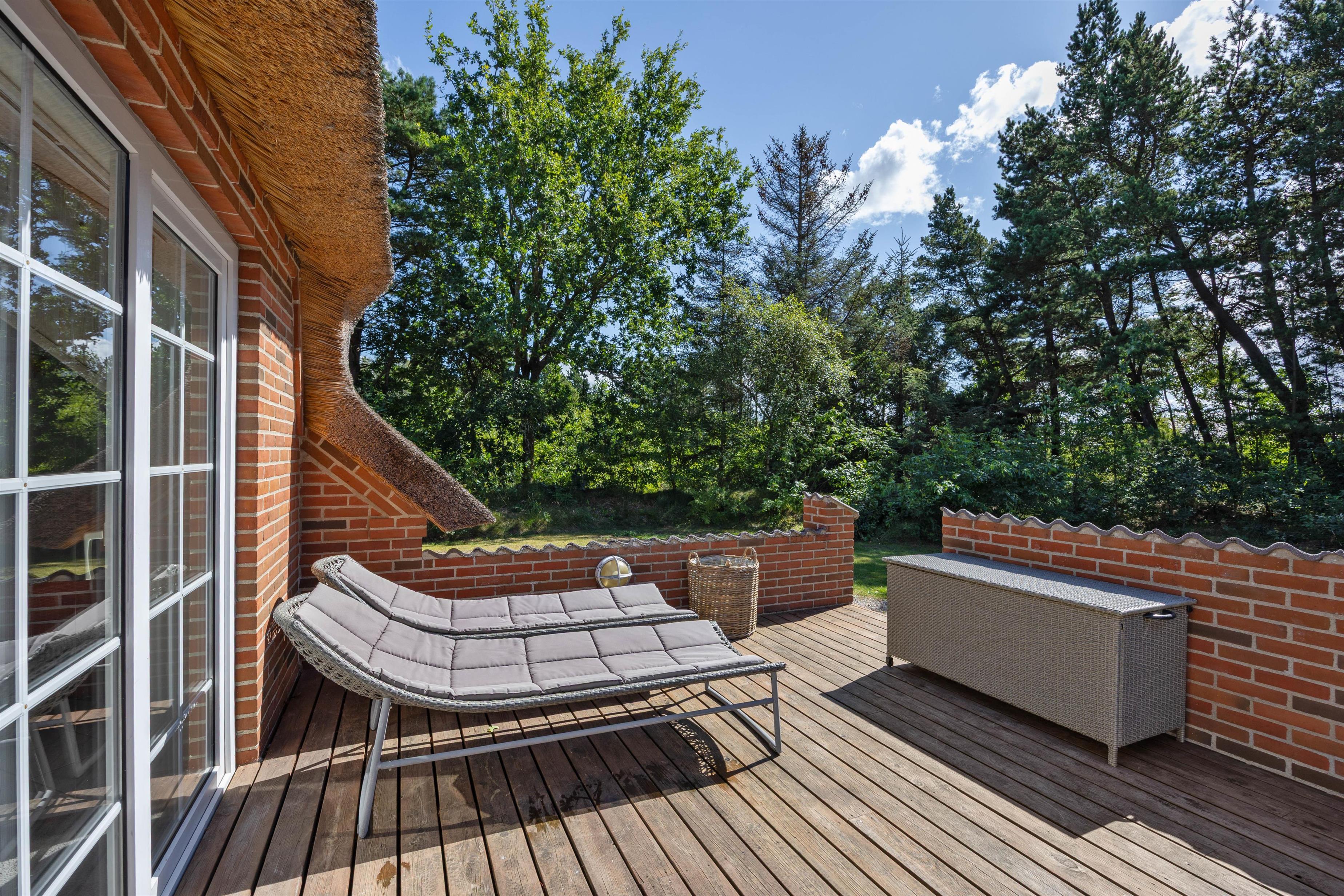 Fra sommerhuset kan I træde ud på en afskærmet terrasse, hvor I kan nyde de solrige dage af jeres ferie. Her har I både havemøbler, liggestole og en grill til rådighed, så I kan få mest muligt ud af de solrige dage på den åbne terrasse.