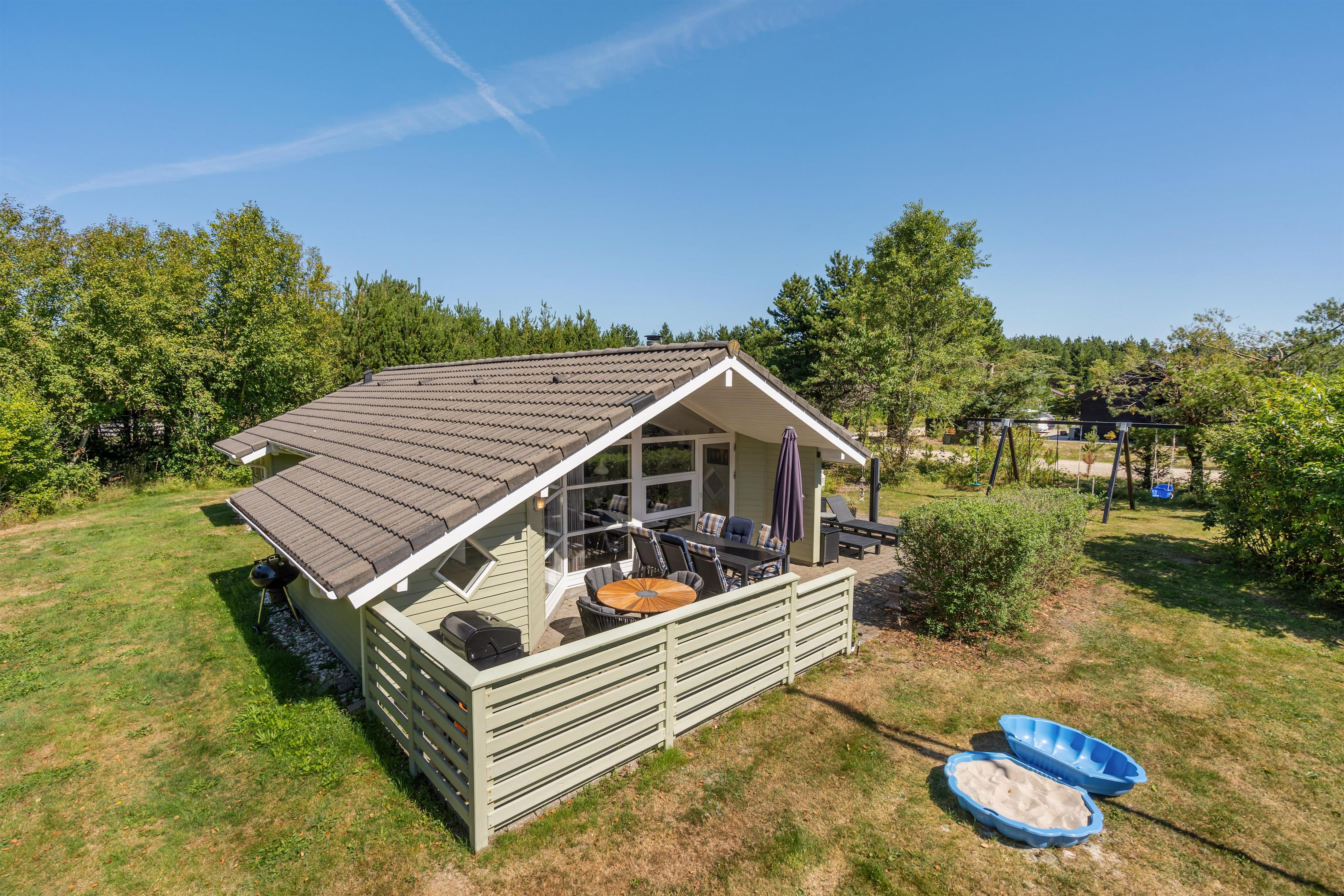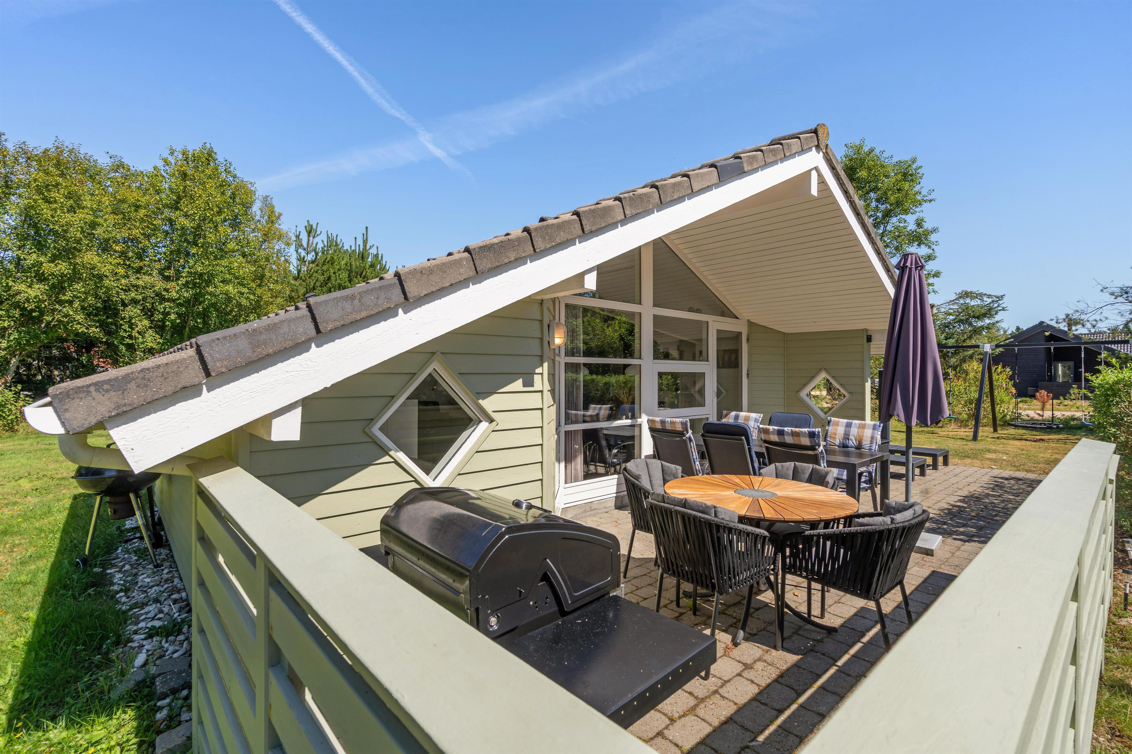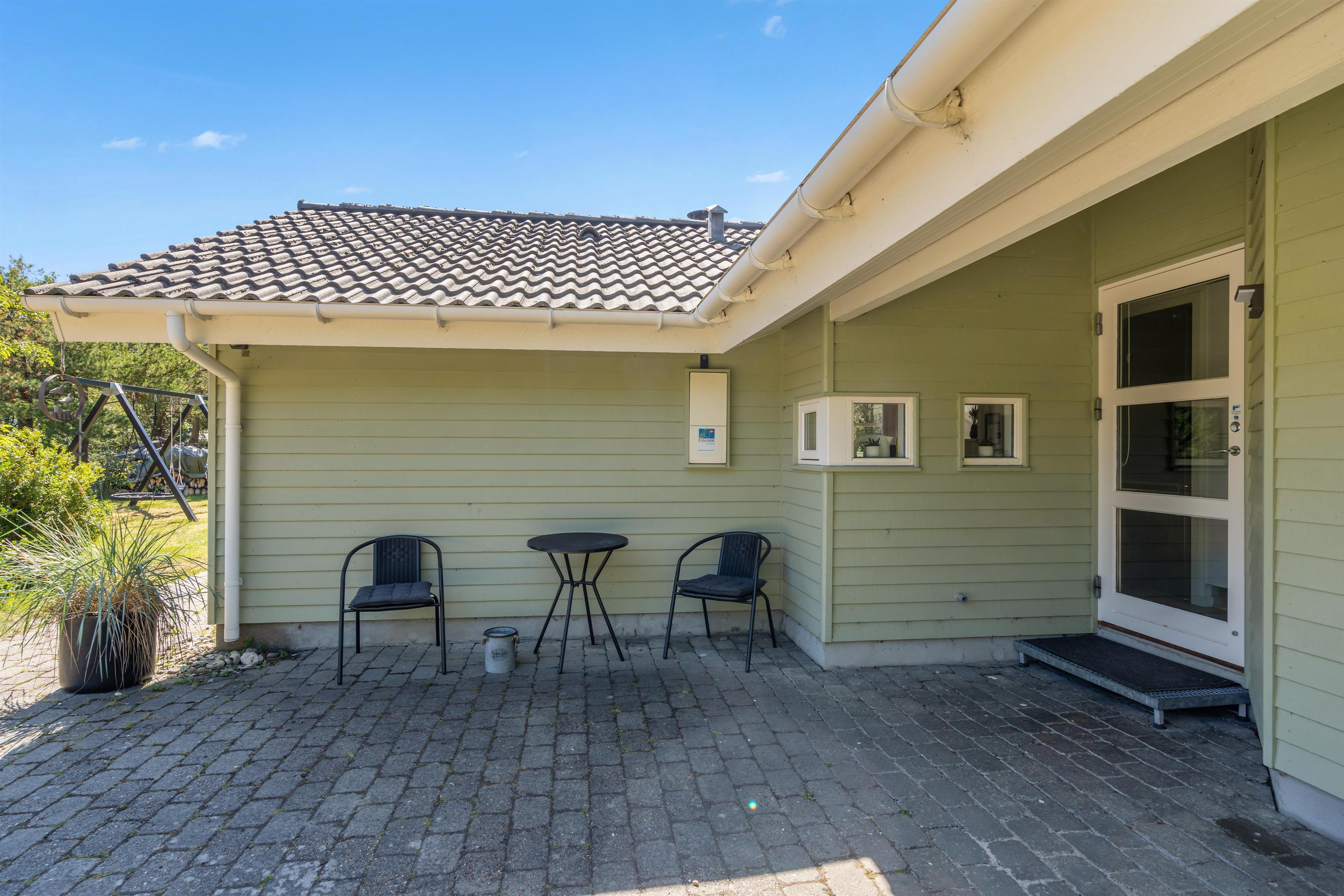 Huset er omgivet af en stor have med masser af græsplæne, og fra stuen kommer I ud på den skønne terrasse. Her kan I helt uforstyrret nyde feriedagene og solen, mens børnene tumler på græsplænen eller leger på gyngestativet eller i sandkassen. Om aftenen kan I tænde op i grillen, og på den overdækkede del af terrassen kan I tilberede et lækkert grillmåltid ligegyldigt vind og vejr.