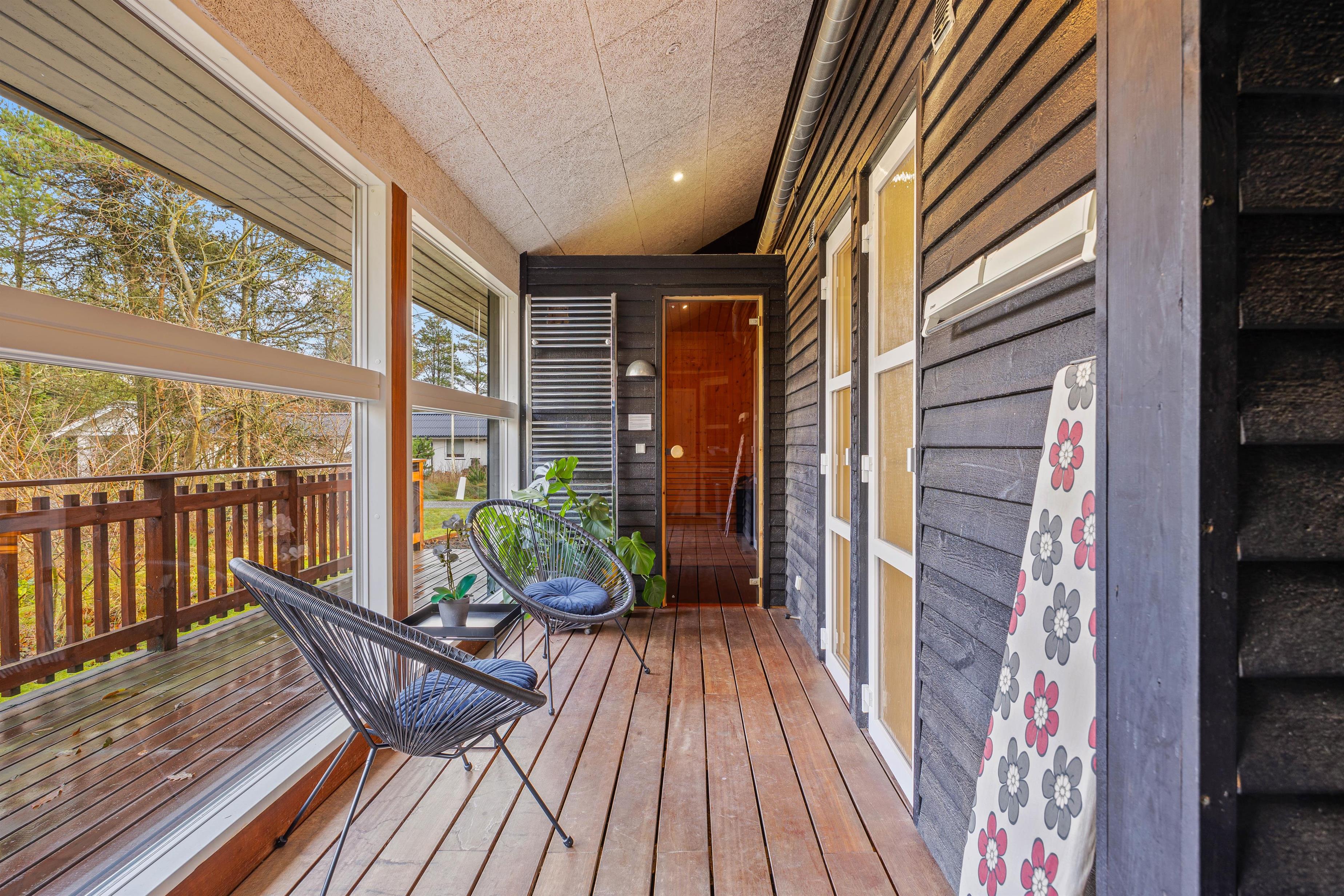 Feriehuset råder over ikke mindre end to flotte terrasser med masser af plads til solbadning og afslapning. For børnene og hunden er der en dejlig græsplæne med flere forskellige legemuligheder, heriblandt fodboldmål og trampolin fra april til oktober.