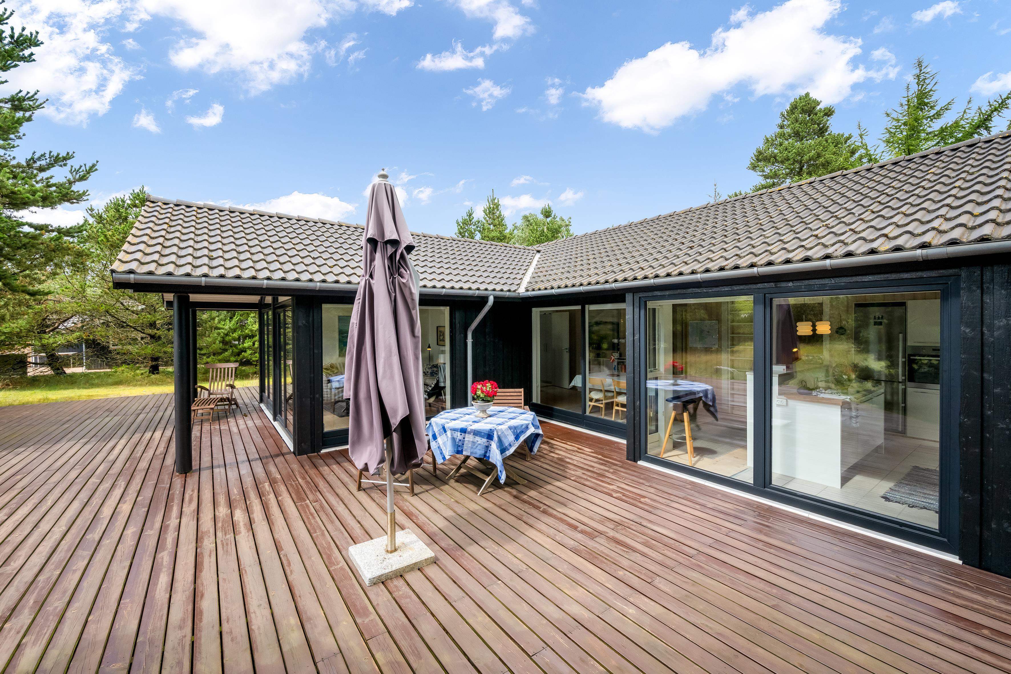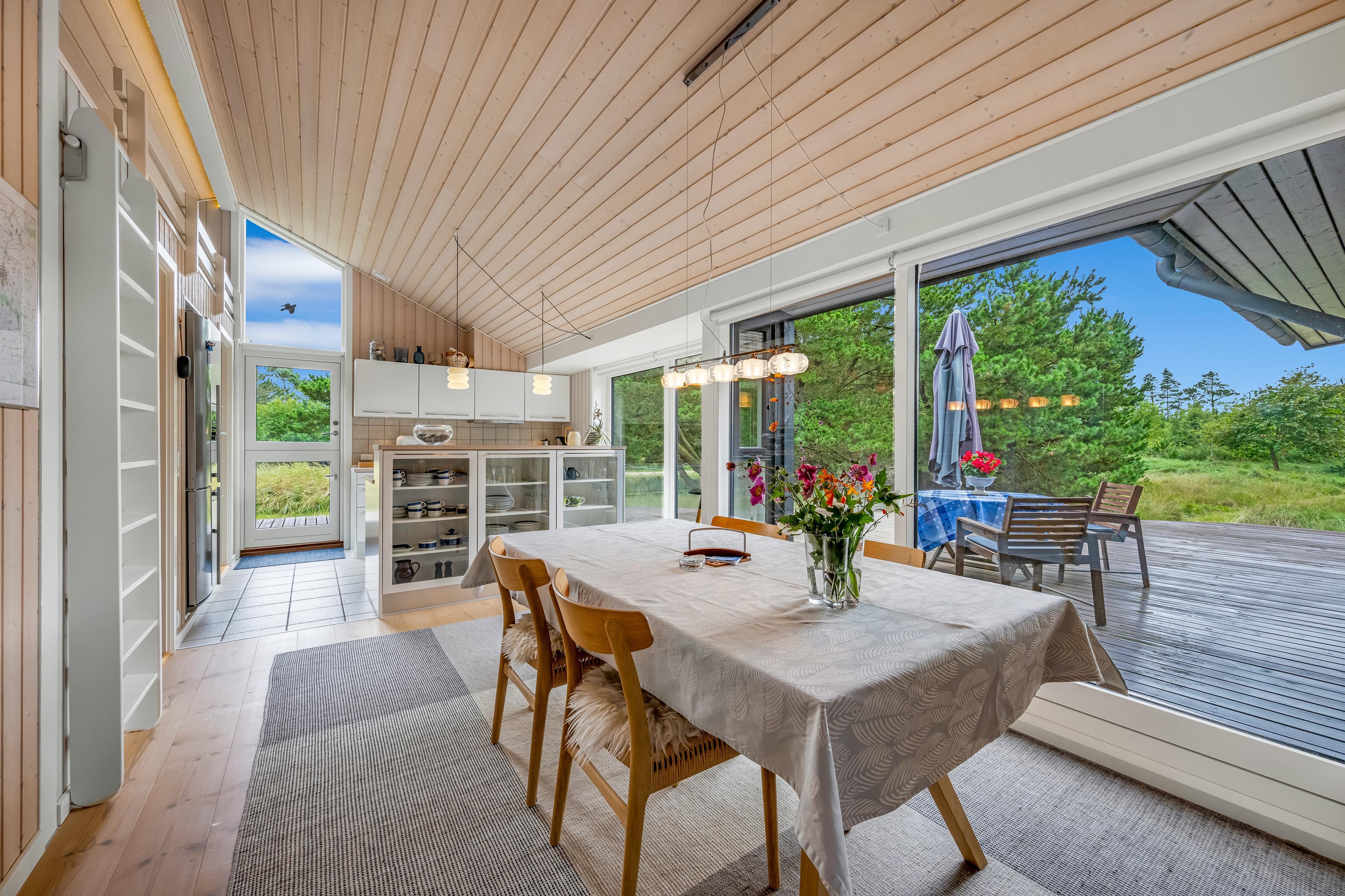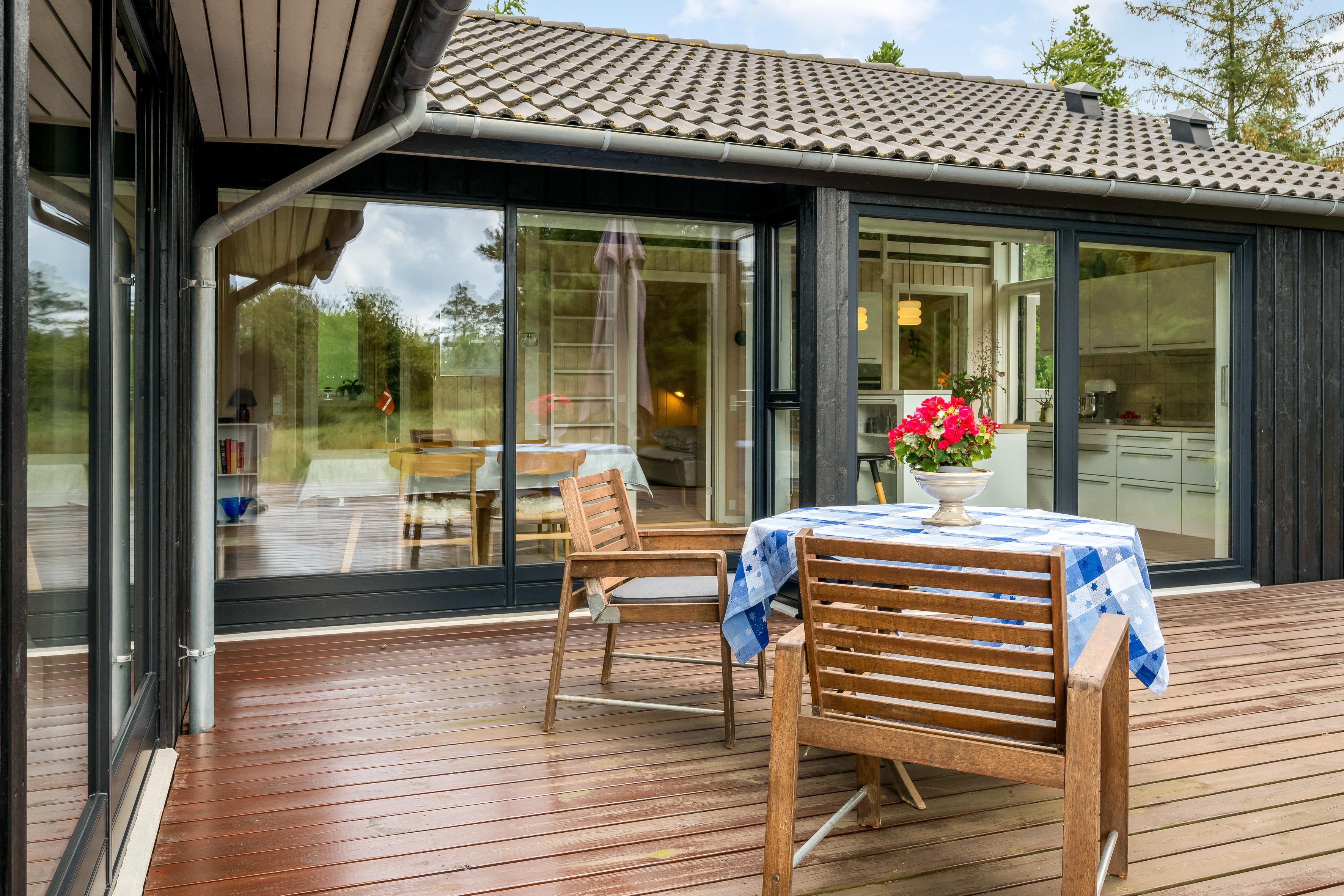 Gør jer klar til at skabe gode minder på den store overdækkede og afskærmede terrasse. Her kan I nyde den friske luft og naturen omkring jer. Havemøblerne inviterer til afslapning med en god bog, en frokost i det fri eller en hyggelig aften med venner og familie. Dette sommerhus i Houstrup er jeres oplagte feriested, hvor I kan lade op i naturskønne omgivelser.