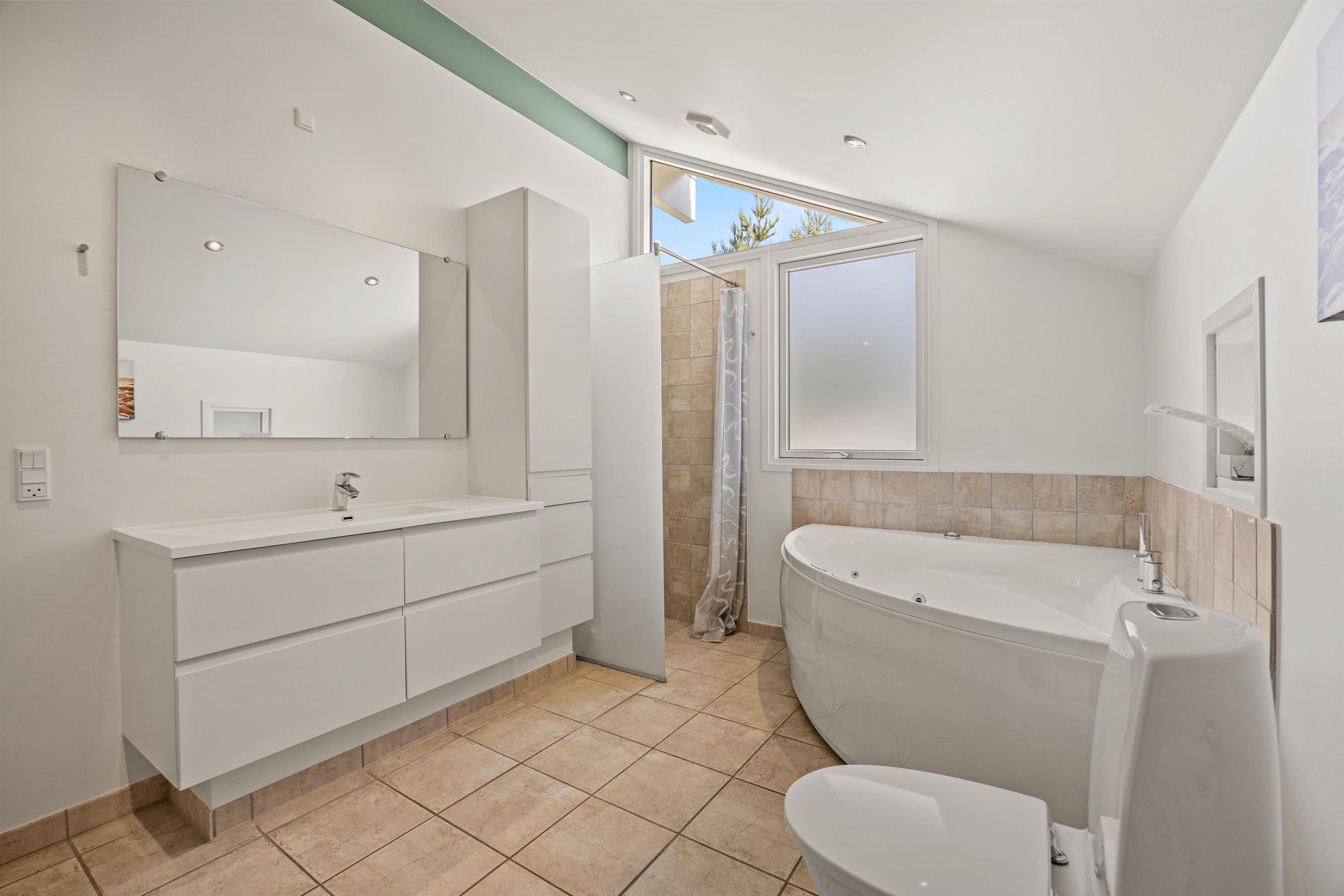 I det rummelige badeværelse finder I et lækkert spabad, som helt sikkert vil blive brugt flittigt i løbet af ferien. Efter en lang gåtur i det naturskønne område eller en udflugt til den smukke sandstrand kan I blive varmet godt igennem og tanke energi til en ny dag.
