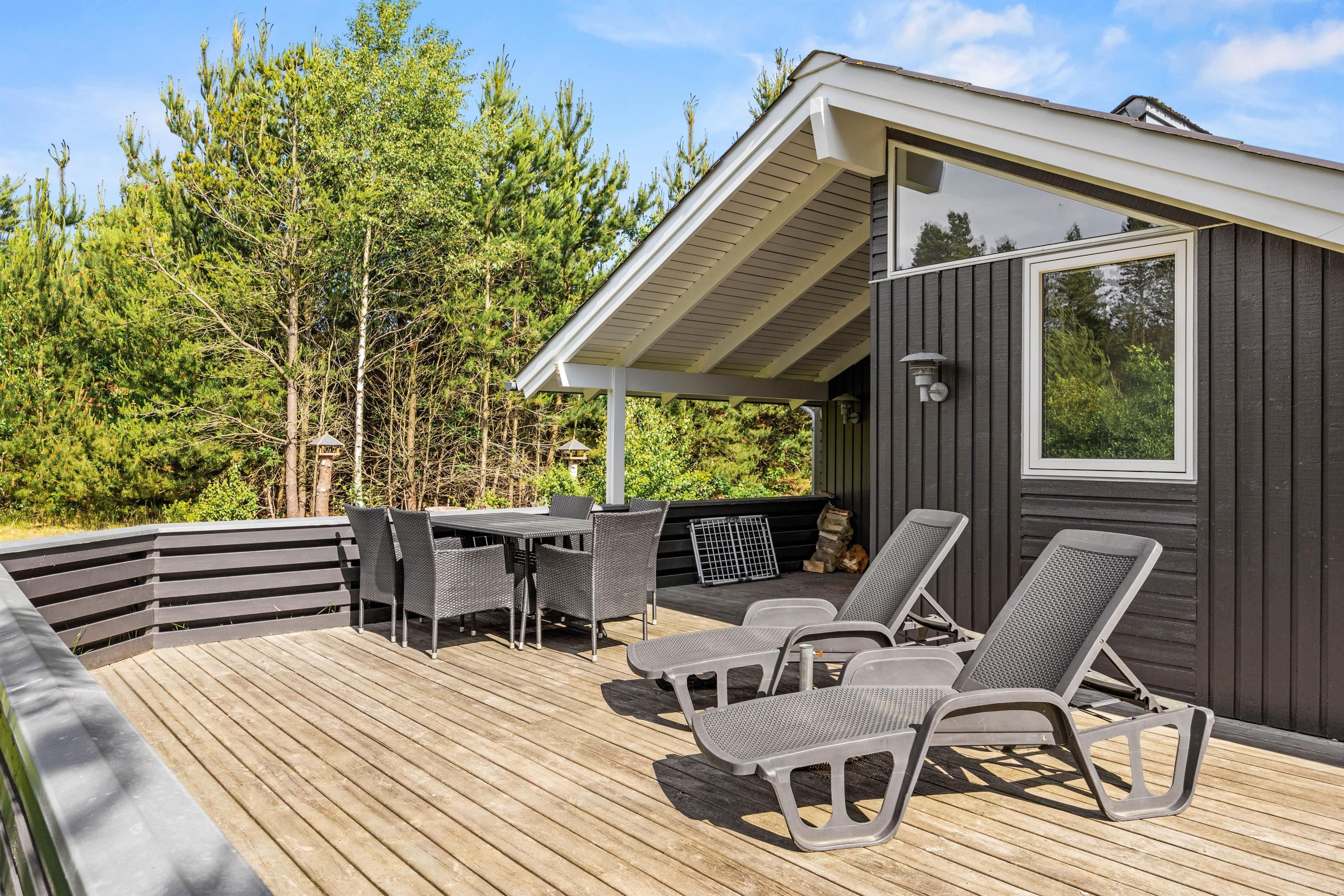 På terrassen har I en flot udsigt ud over den åbne naturgrund, og selv I halvdårligt vejr kan omgivelserne nydes udenfor under den overdækkede del af terrassen.