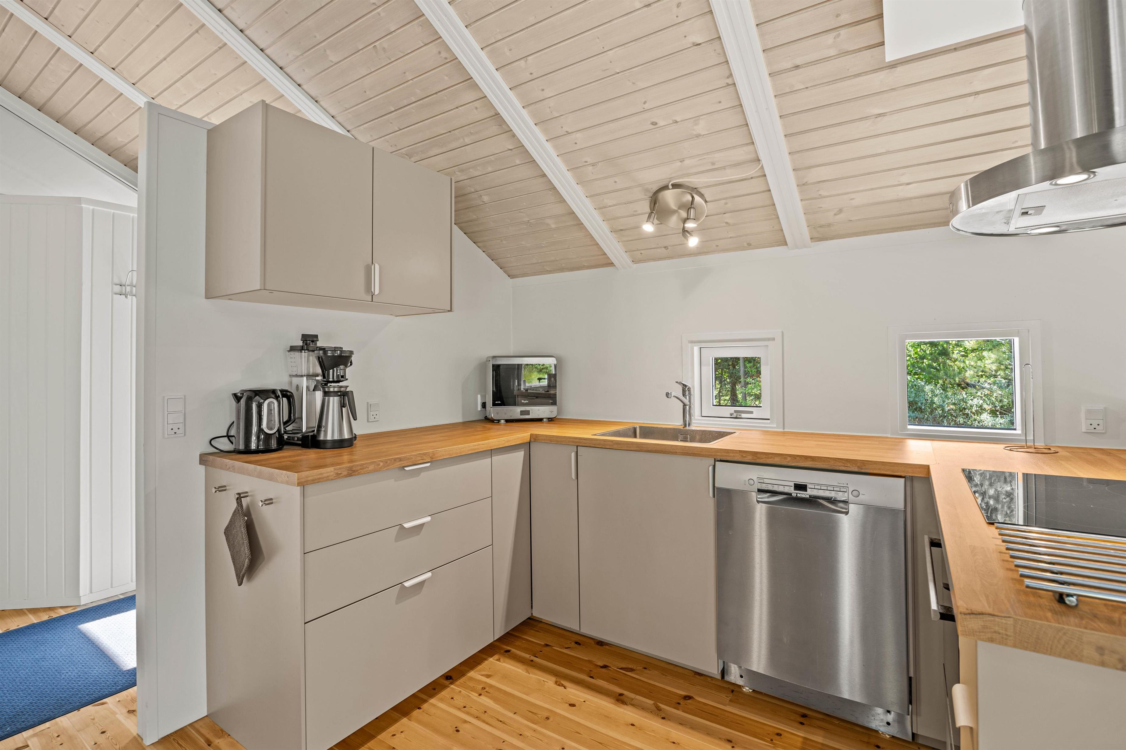 Det nydelige træsommerhus lyser op i solens skær og byder jer velkommen, så snart I rammer indkørslen. Fra første skridt ind ad døren vil I mærke, hvordan I hurtigt falder til i den lyse og venlige indretning, der gør sig gældende hele sommerhuset igennem.