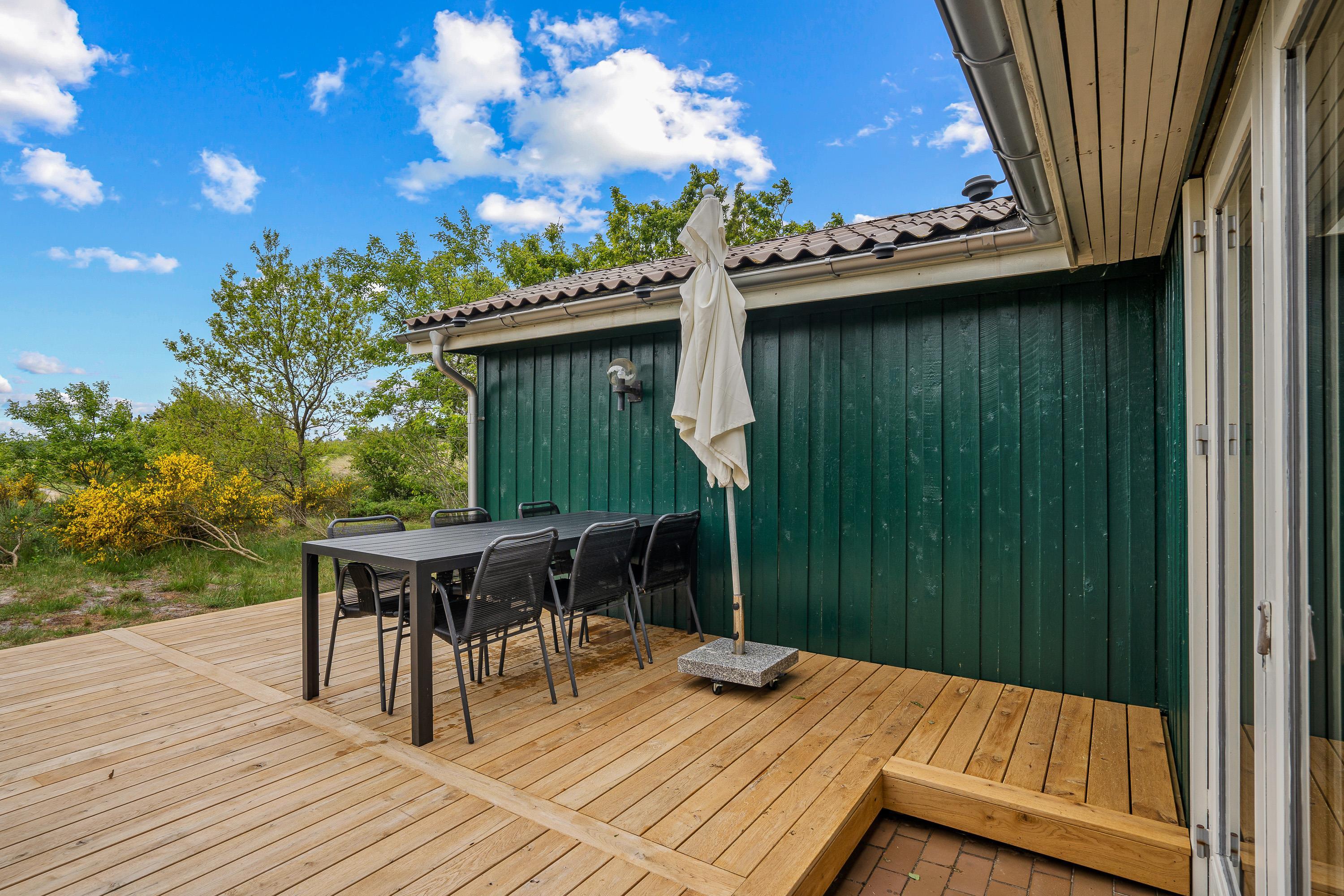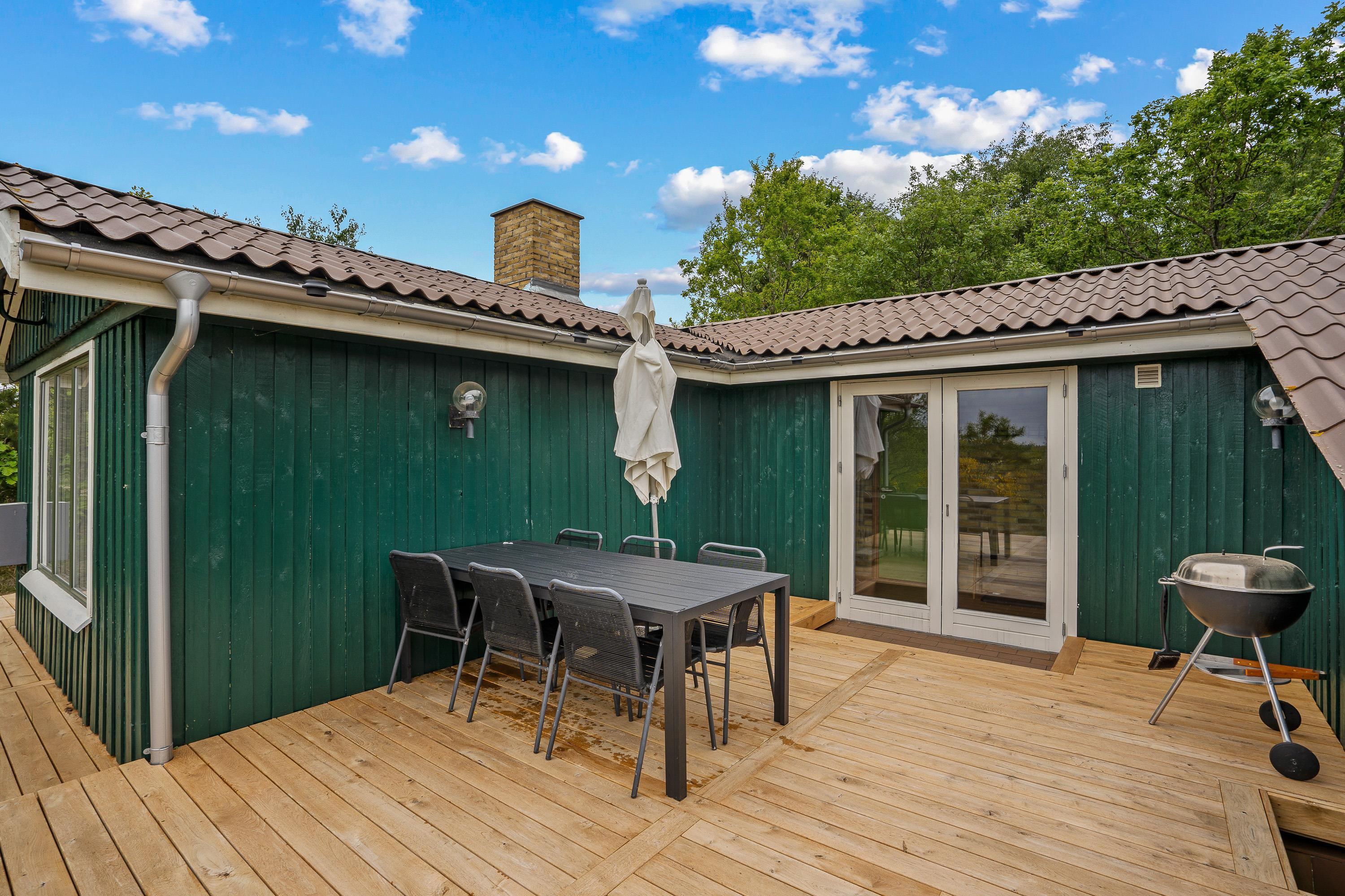 Er I på udkig efter et feriehus i et naturskønt område, er dette feriehus et godt bud. Her kan I rigtig komme til at koble af fra hverdagens stress og jag, og nyde hinandens selskab på terrassen. Tænd op i grillen og nyd en dejlig sommeraften i det fri, med god grillmad og spil. Terrassen har gode havemøbler, solvogne hvor I kan nappe en lille lur og tanke op med energi, og parasollen kan give lidt skygge, når solen virkelig står højt.