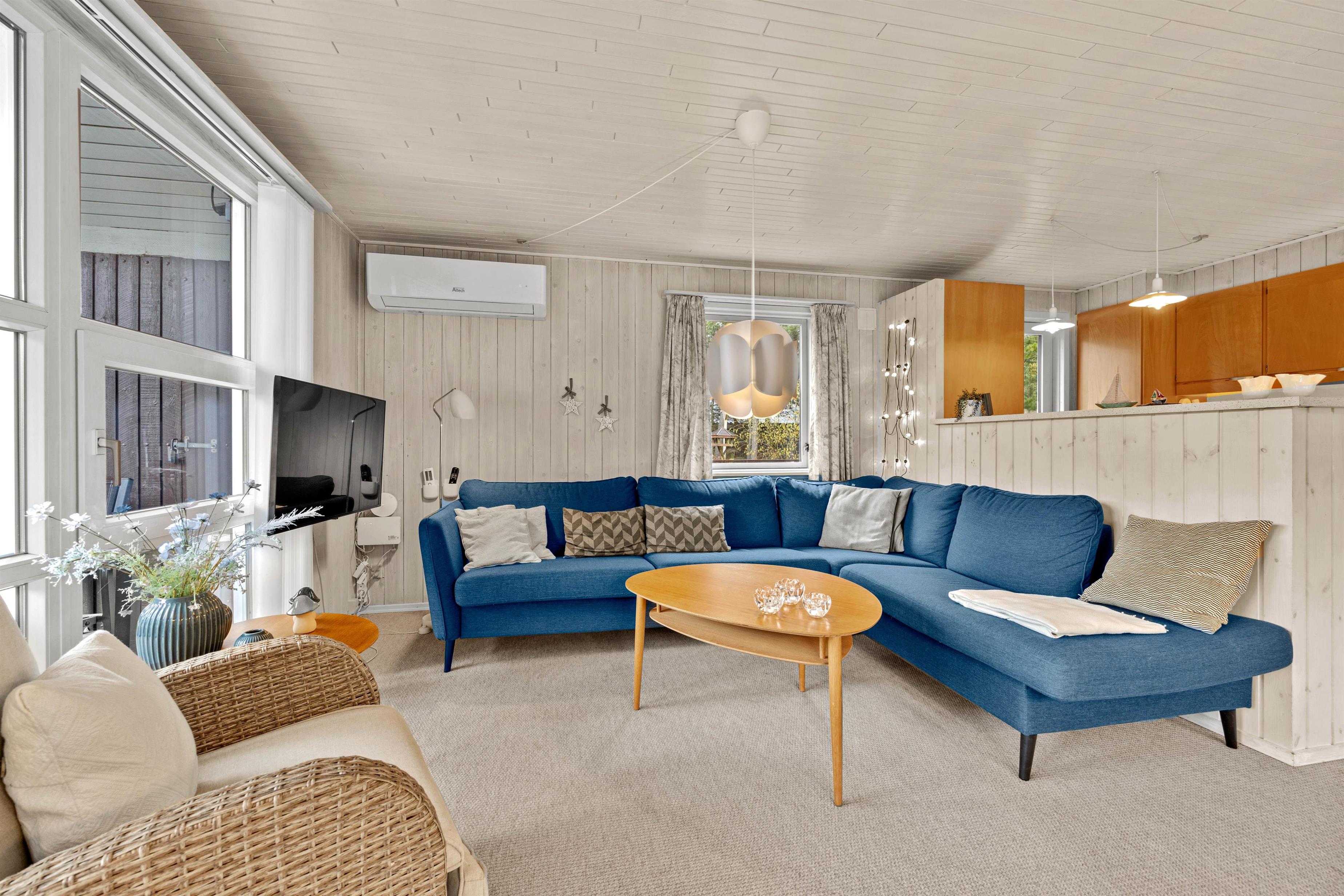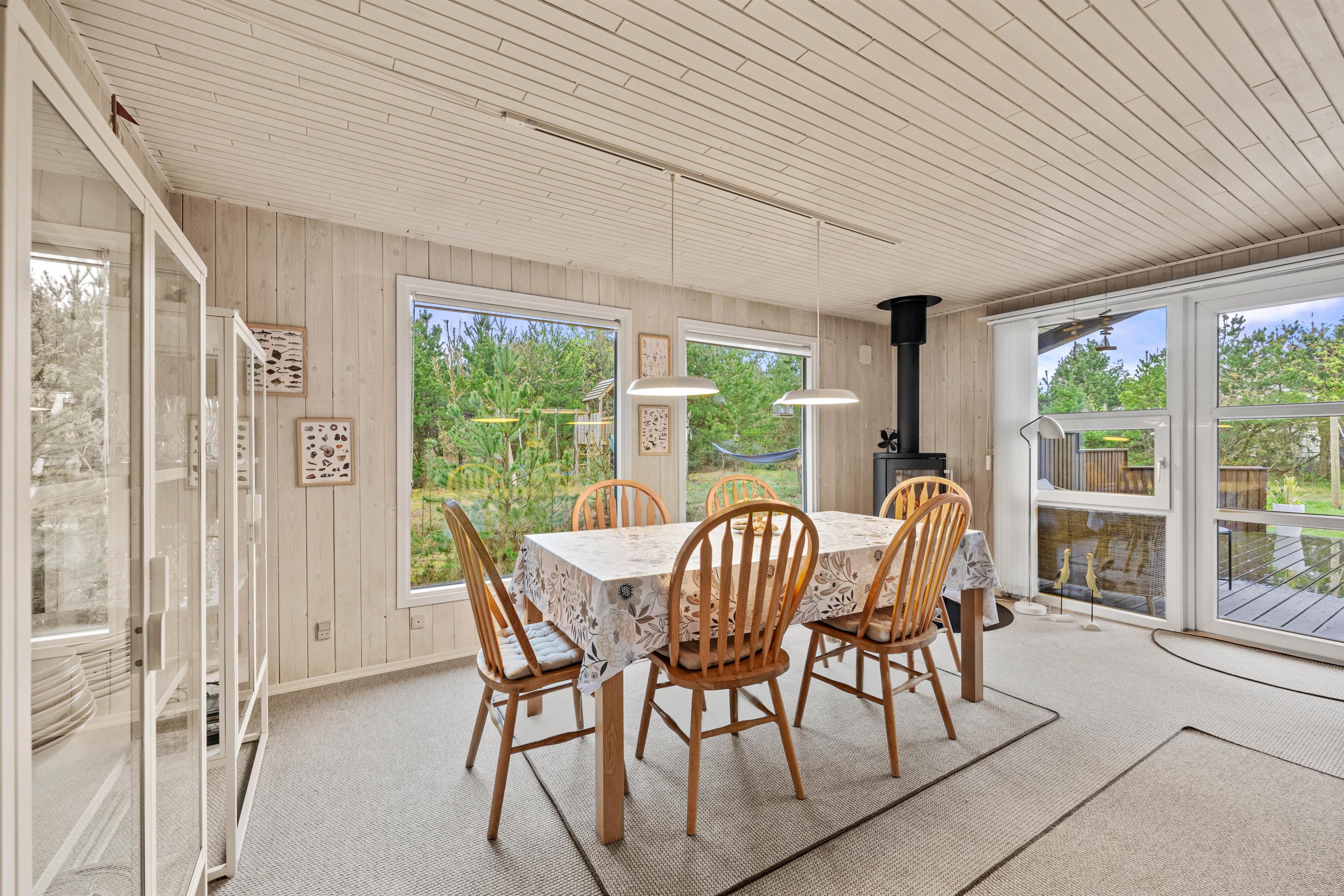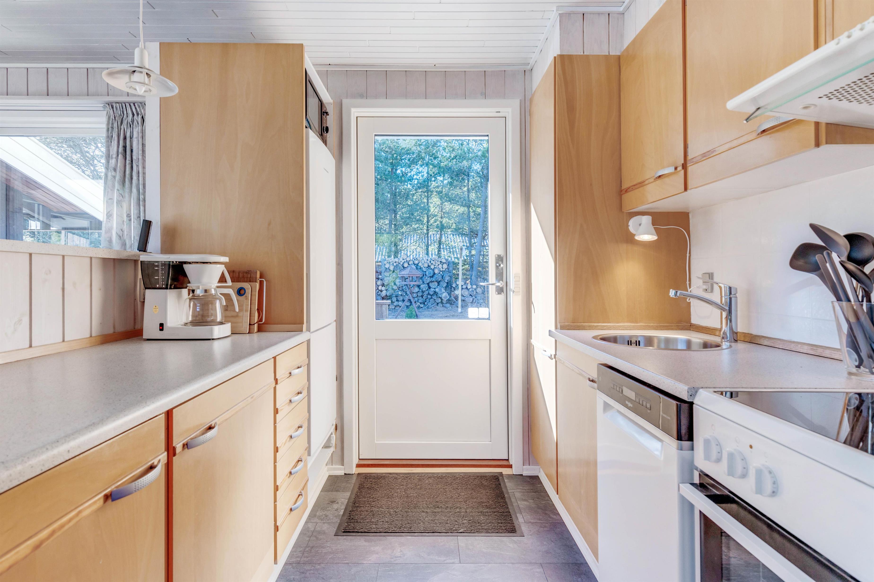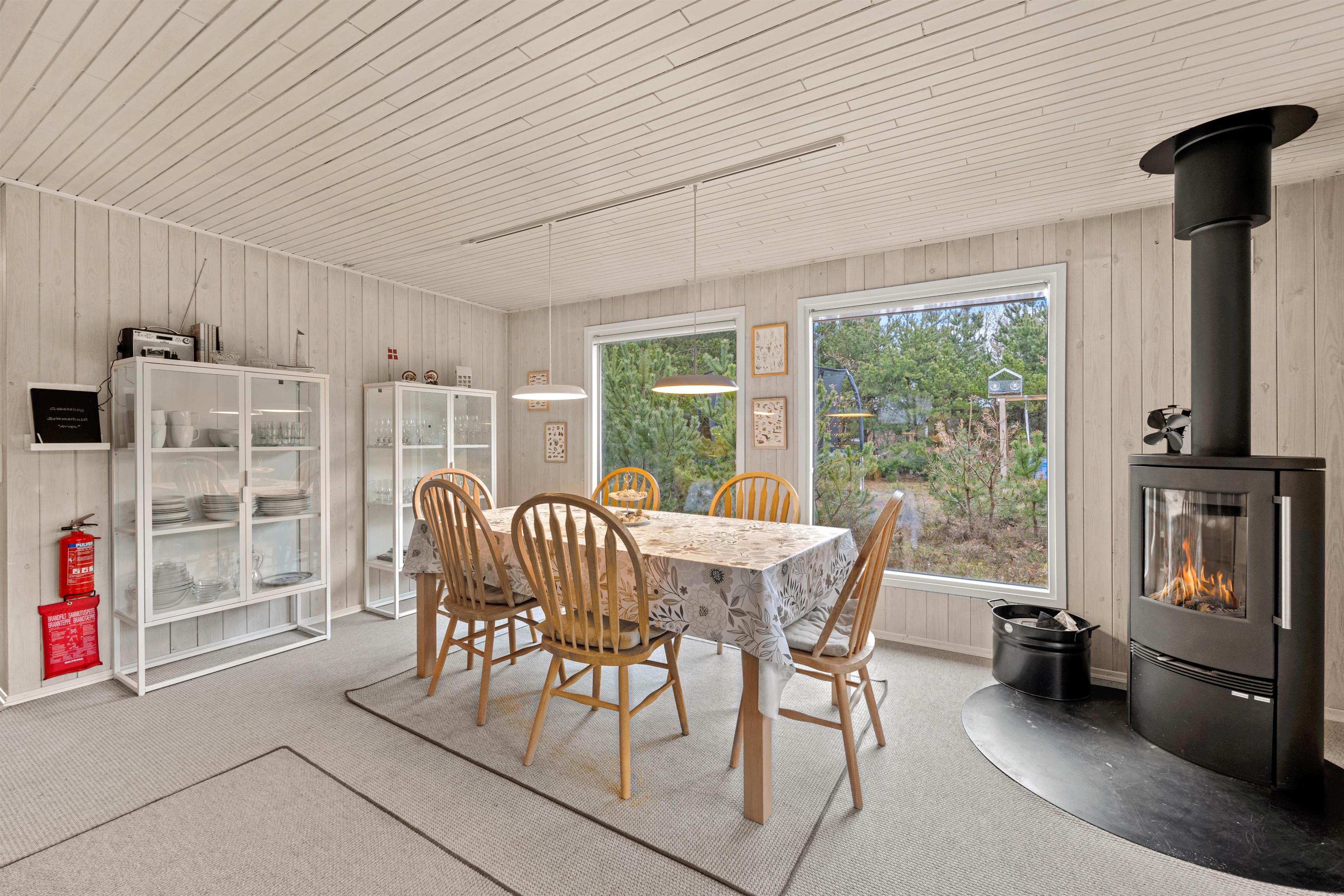 Ferieboligen er udstyret med en hyggelig brændeovn, og sådan en må selvfølgelig ikke mangle i et typisk dansk sommerhus, da flammernes varme og knitren skaber ægte hyggestemning. Alternativt kan I benytte den moderne varmepumpe for at sikre behagelige temperaturer. En opvaskemaskine, vaskemaskine og tørretumbler er også tilgængelige, hvilket især er praktisk til et længere ophold.