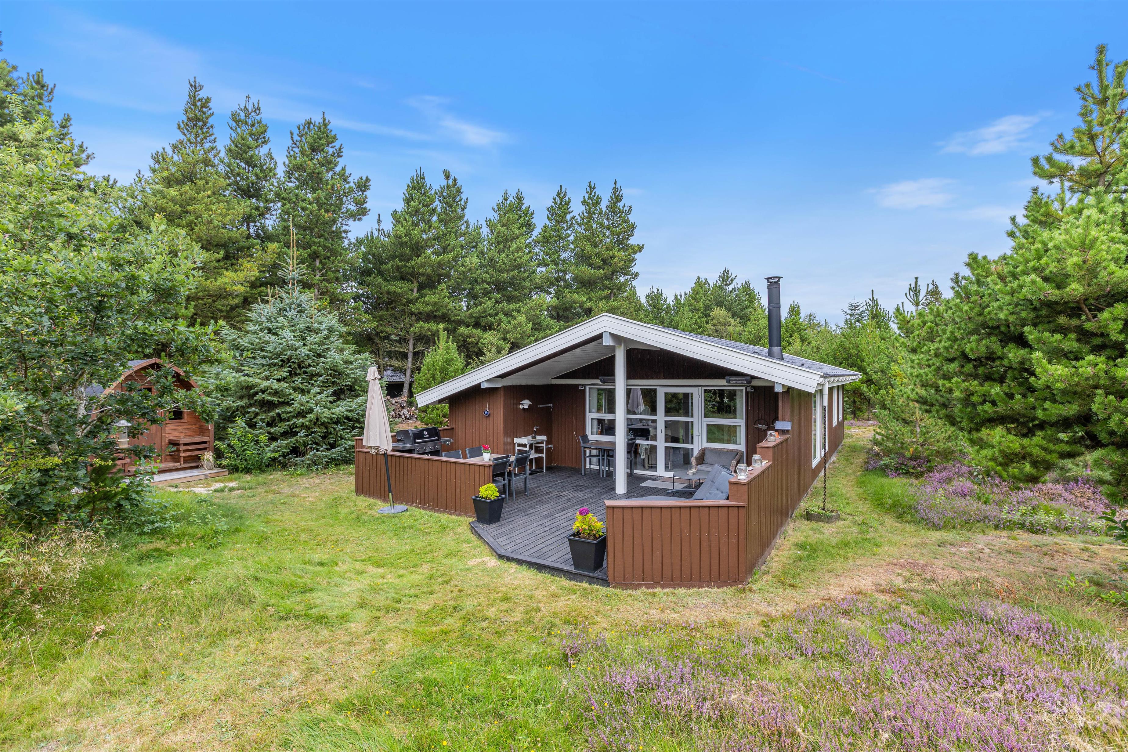 Beliggenheden af ??dette sommerhus på Kirkeflod 3 midt i det smukke og rolige Houstrup kan betegnes som intet mindre end fantastisk, hvis man holder af naturen, især skoven, den tilstødende hede og selvfølgelig Vesterhavet, stranden og klitterne.