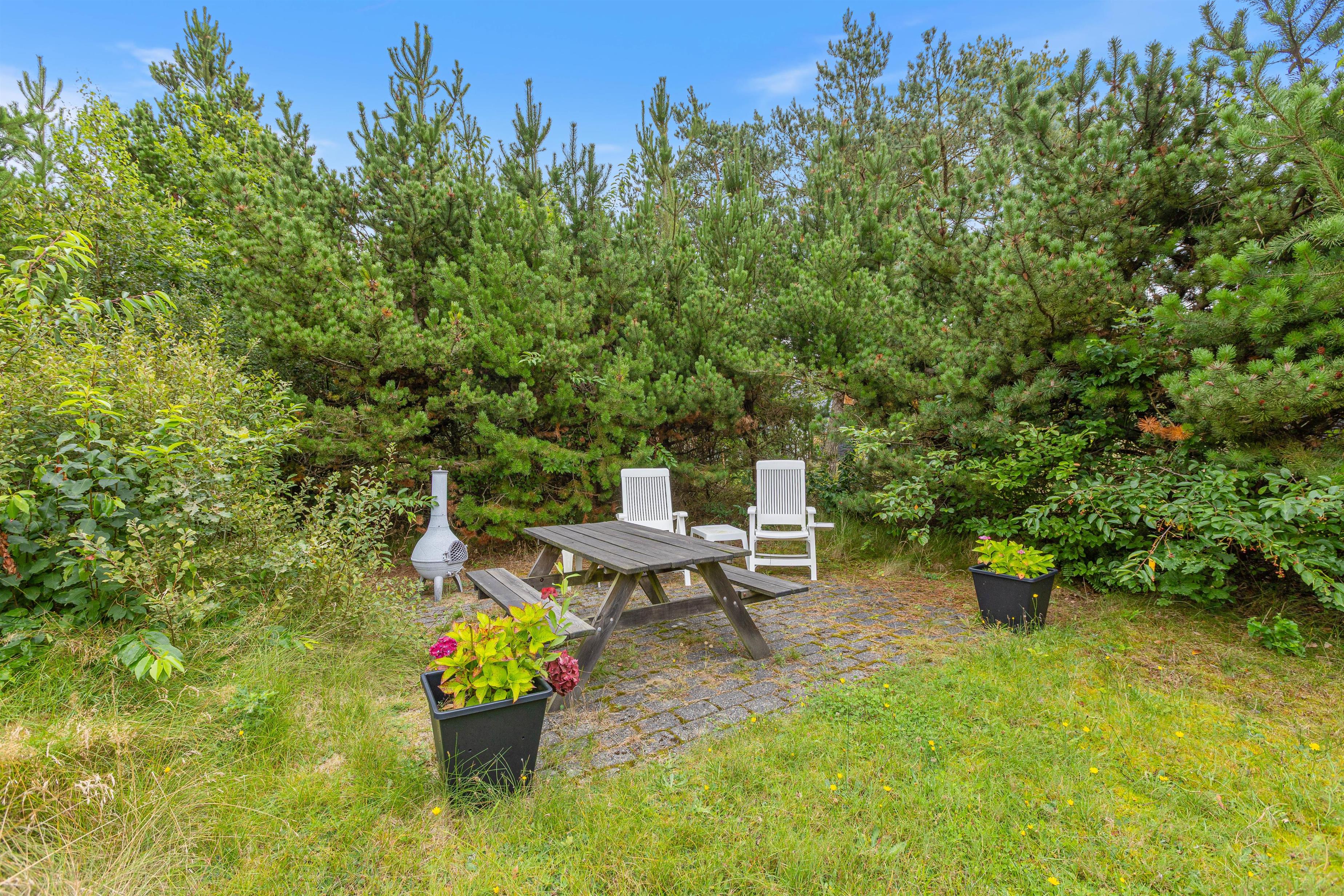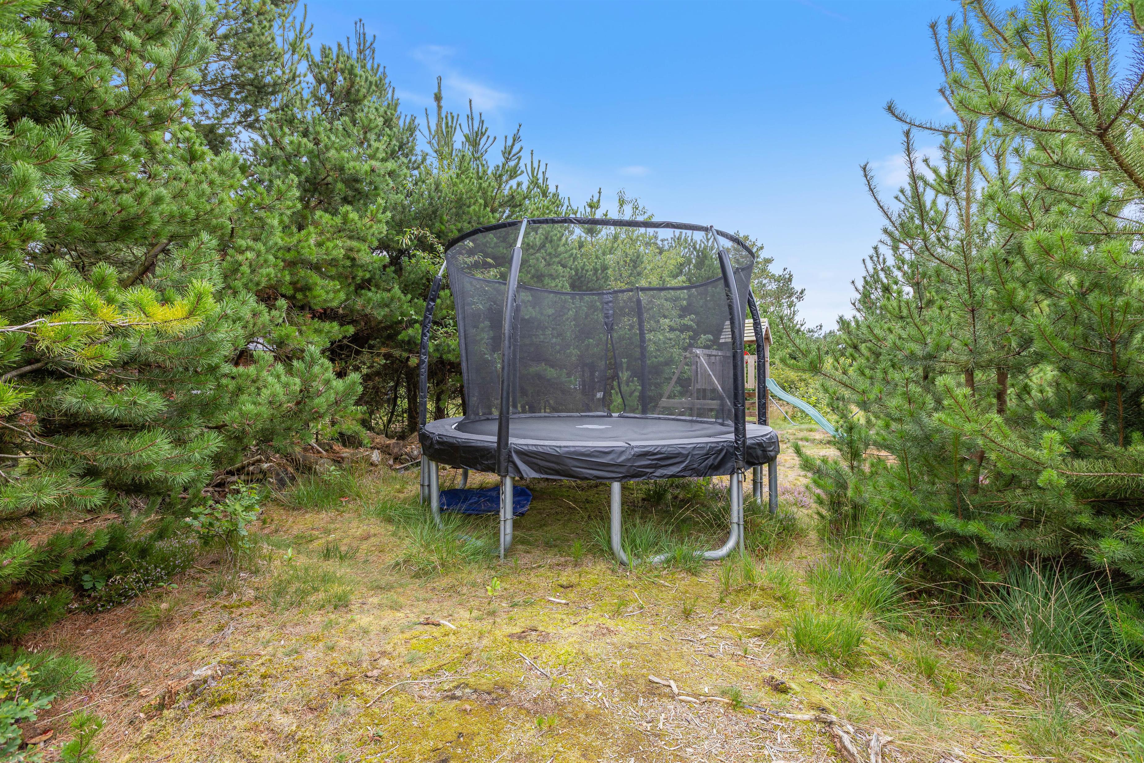 Børnene vil få glæde af haven i mange timer, fordi de her har deres egen legeplads. Der er en gynge, en sandkasse, en trampolin og et klatretårn med rutschebane til børnene. Der er også et badmintonnet samt andre udendørsspil, så I alle har mulighed for at spille sammen. Der er en type 2 lademulighed lige ved siden af ??feriehuset til familiens elbil.