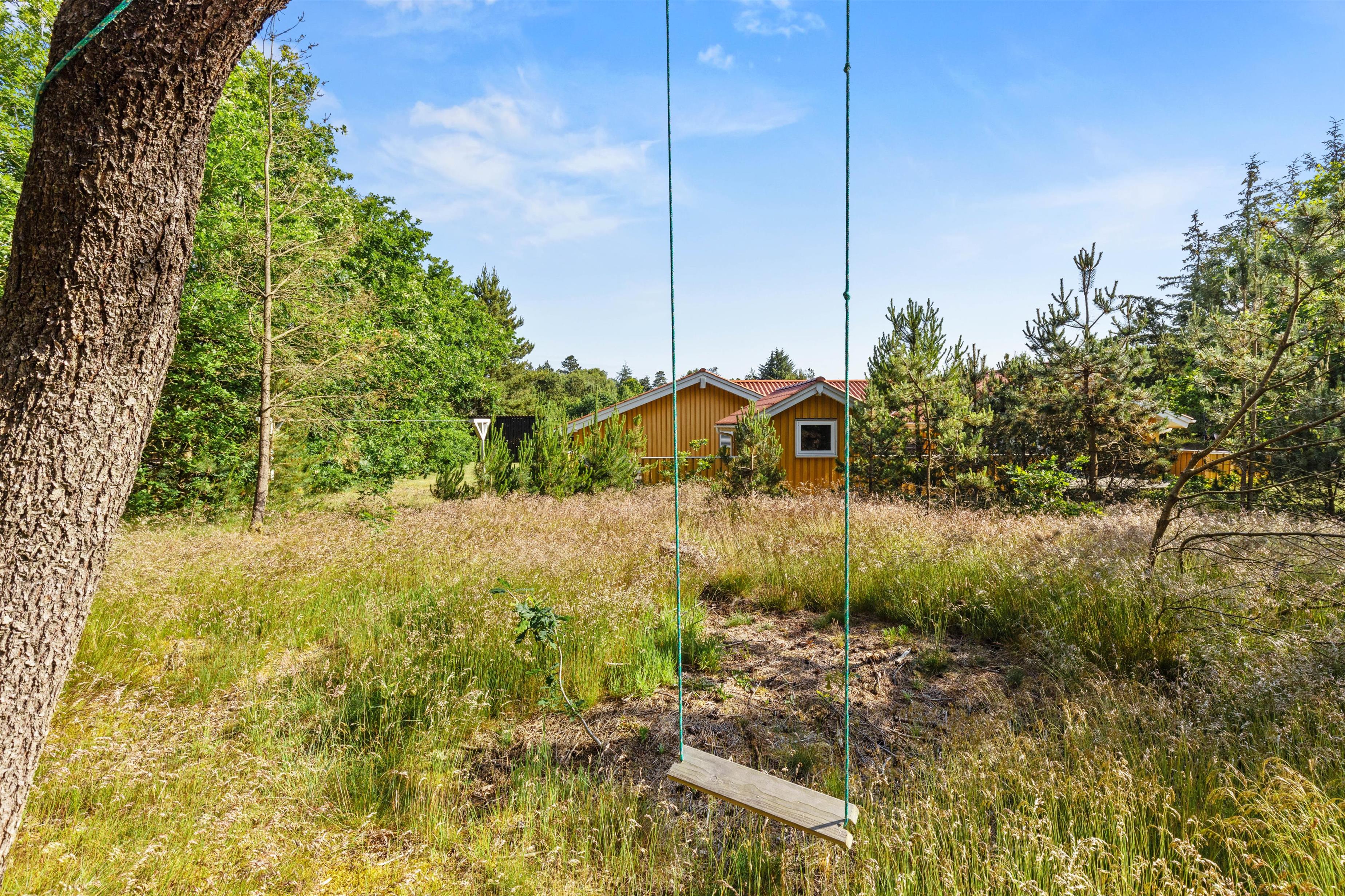 Udemiljøet omkring sommerhuset byder på en rummelig og alsidig grund på 1800 m2, der indbyder til masser af udendørs aktiviteter og afslapning. På plænegrunden finder du både en sandkasse og en gynge, som sikrer, at de yngste gæster kan underholde sig selv i trygge omgivelser.