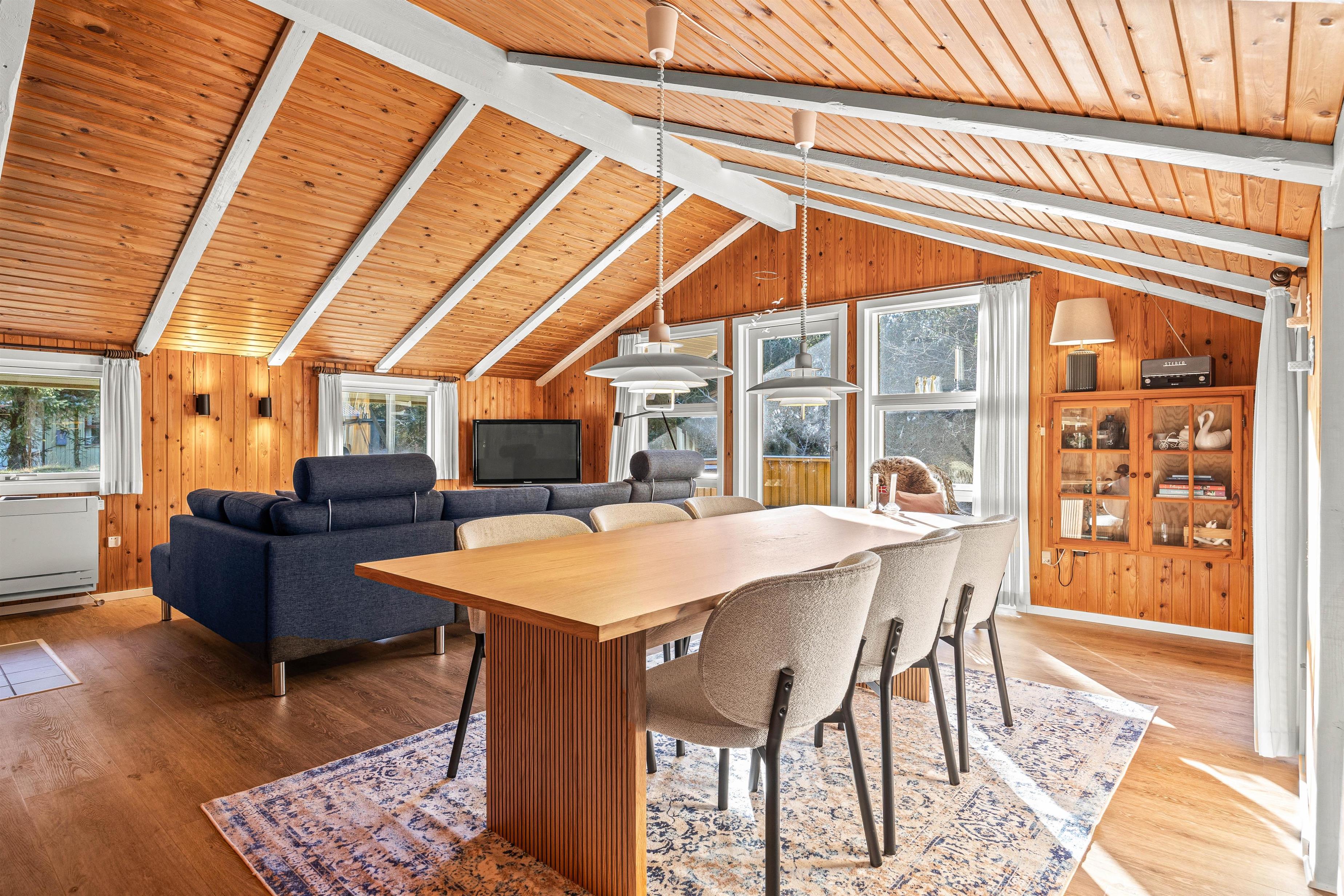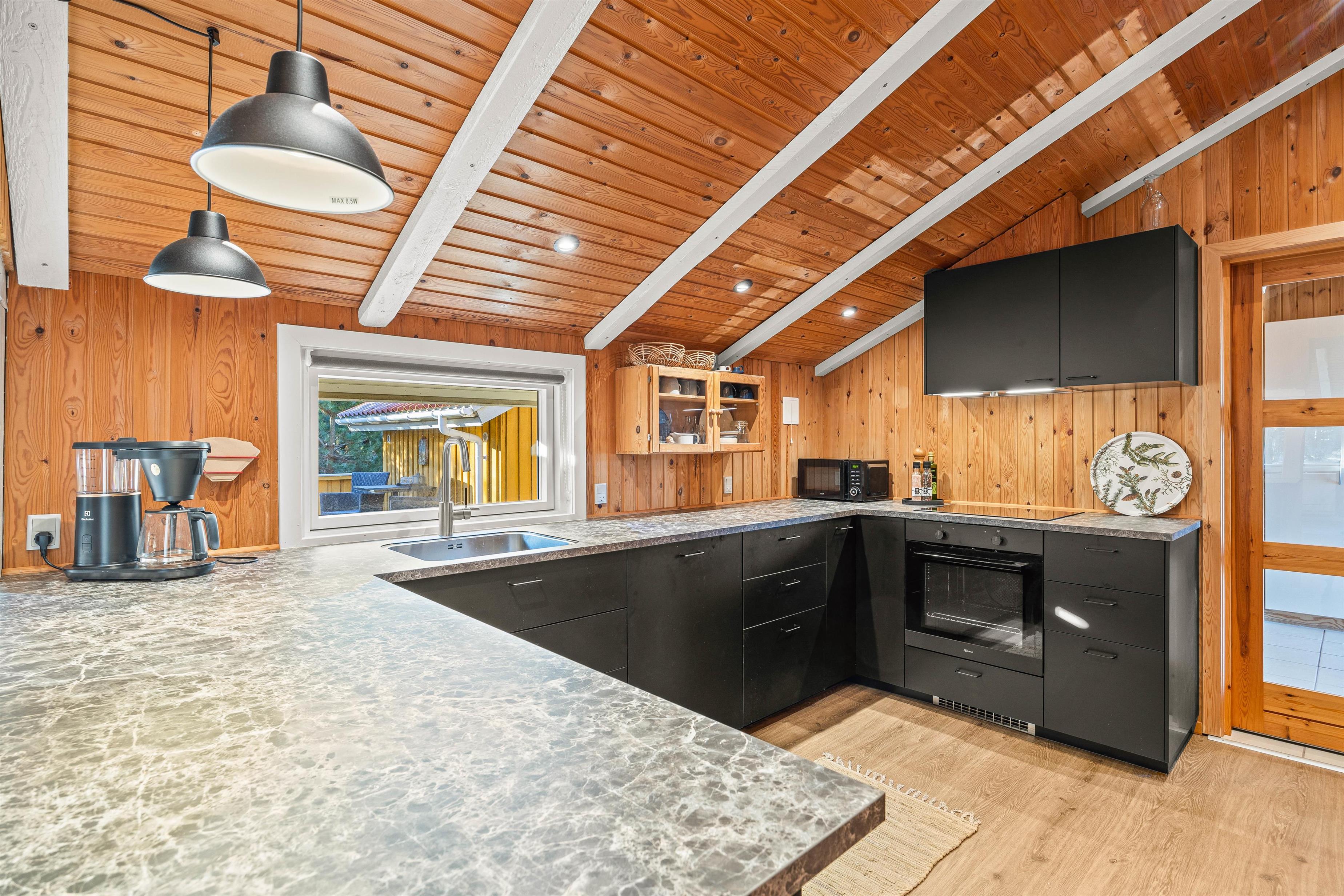 Indenfor i sommerhuset er du omgivet af al den komfort, der gør dit ophold uforglemmeligt og hyggeligt. Skal I helt ned i gear kan I hoppe end tur i tømmespaen eller få varmen i saunaen. I den hyggelige stue finder du en indbydende brændeovn, der spreder varme og skaber en perfekt atmosfære for hyggelige stunder med familie og venner.