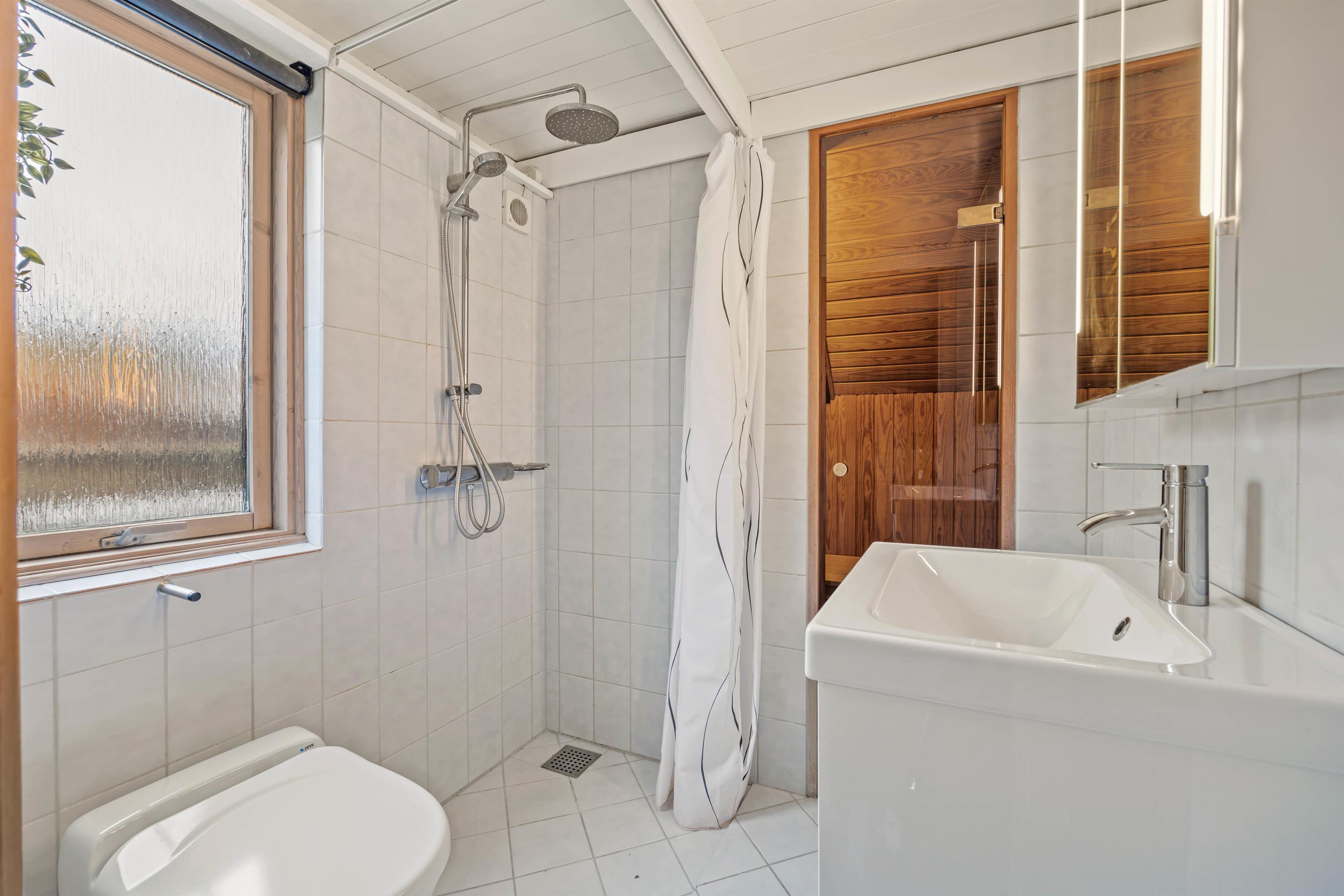 For at gøre jeres hverdag lettere, er huset udstyret med flere praktiske faciliteter. I køkkenet finder I en opvaskemaskine, som sparer jer tid, så I kan fokusere på at slappe af og nyde ferien. En mindre sauna er klar til de af jer, der har lyst til at lade jer forkæle med lidt ekstra varme. Badeværelset har gulvvarme, hvilket tilføjer en behagelig varme, især i de køligere måneder.