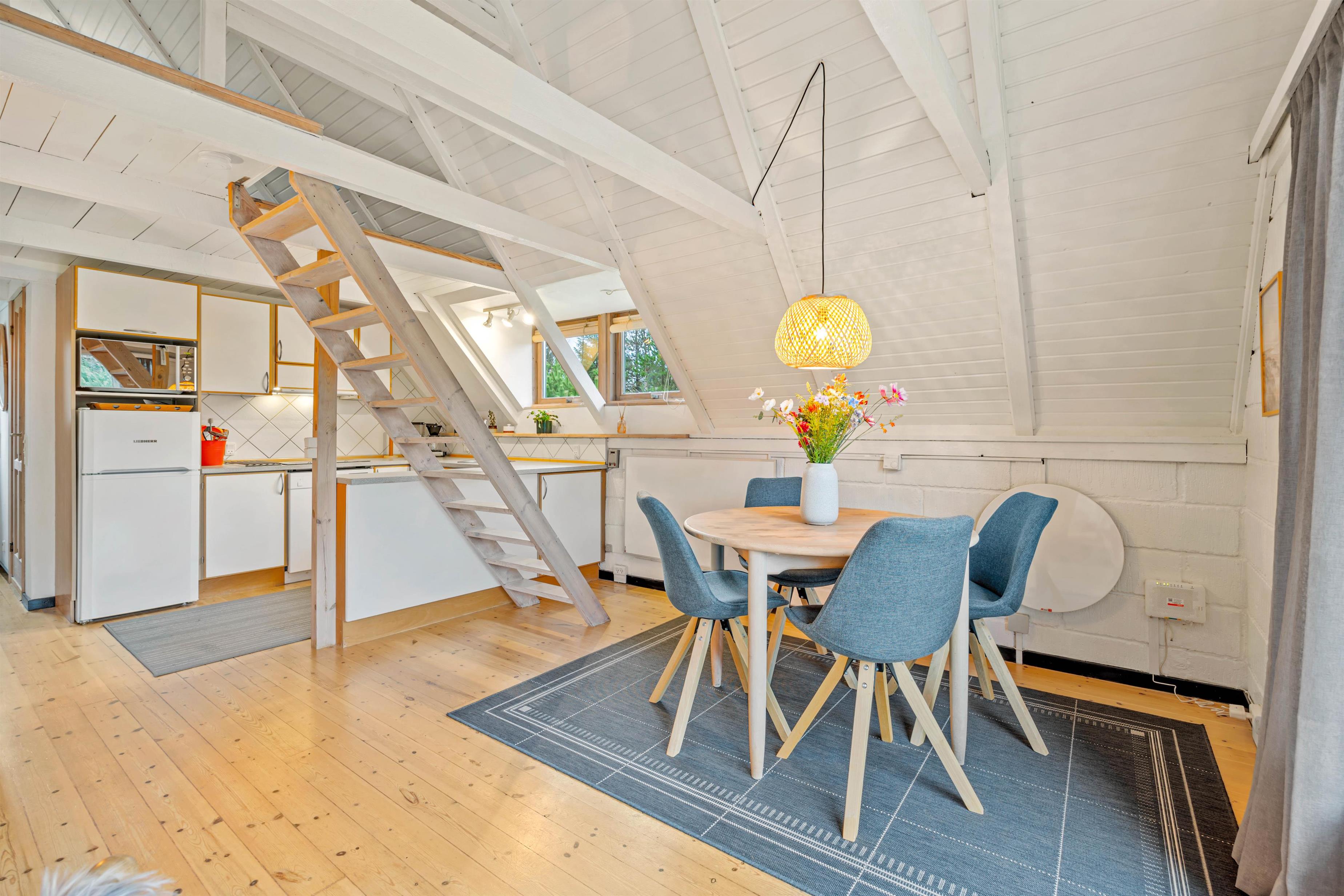 Stuen, sommerhusets hjerte, er udstyret med en brændeovn, der ikke kun giver varme på de kølige aftener, men skaber også en hyggelig atmosfære, hvor I kan samles, slappe af og bare nyde hinandens nærvær.