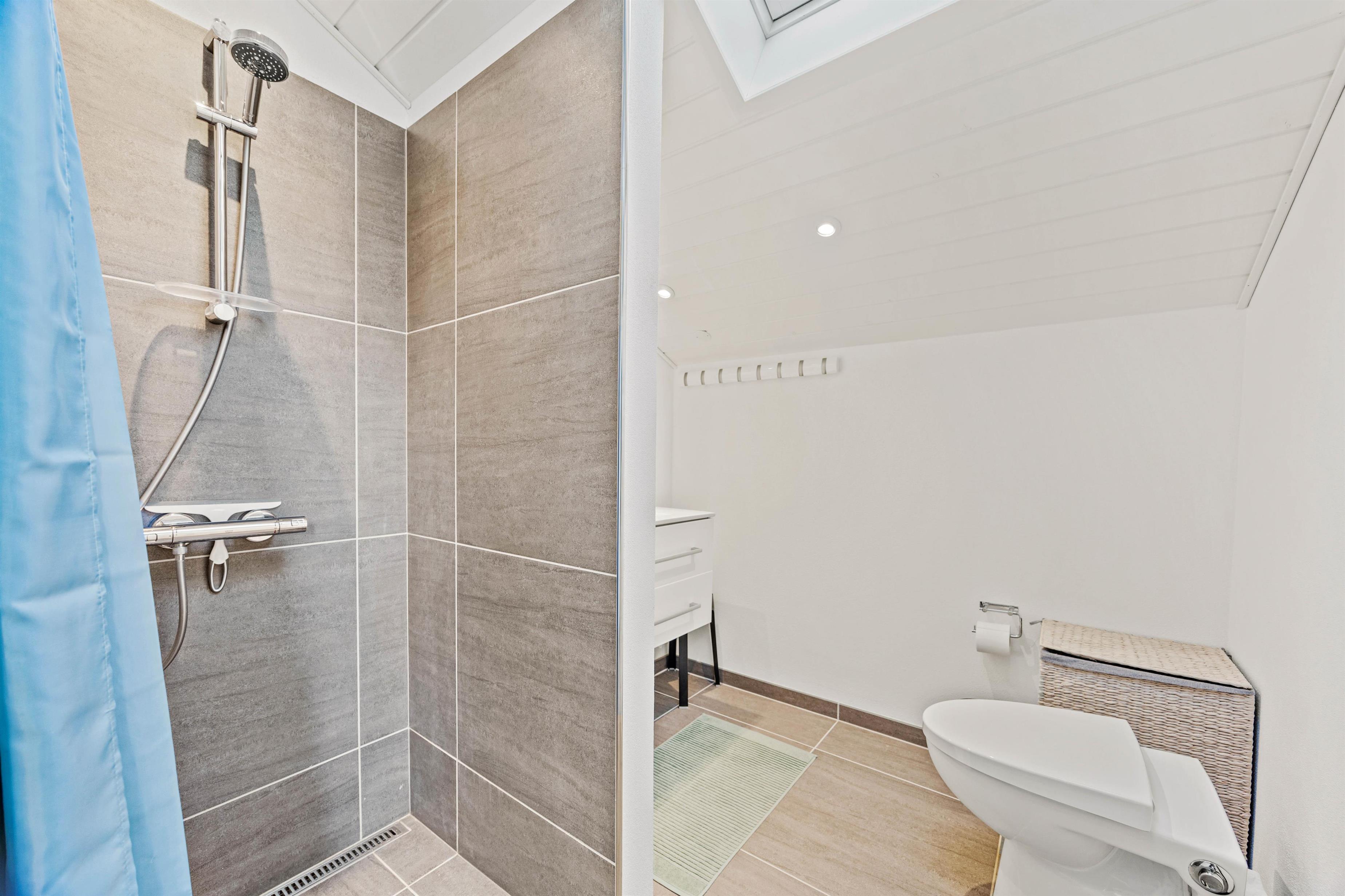 Der er 2 gode badeværelser med gulvvarme og bruseniche, og det ene har endda dobbelt håndvask. En vaskemaskine står også til rådighed, så I ikke behøver at medbringe den store kuffert. De 5 hyggelige og godt indrettet soveværelser giver god plads til alle gæster.