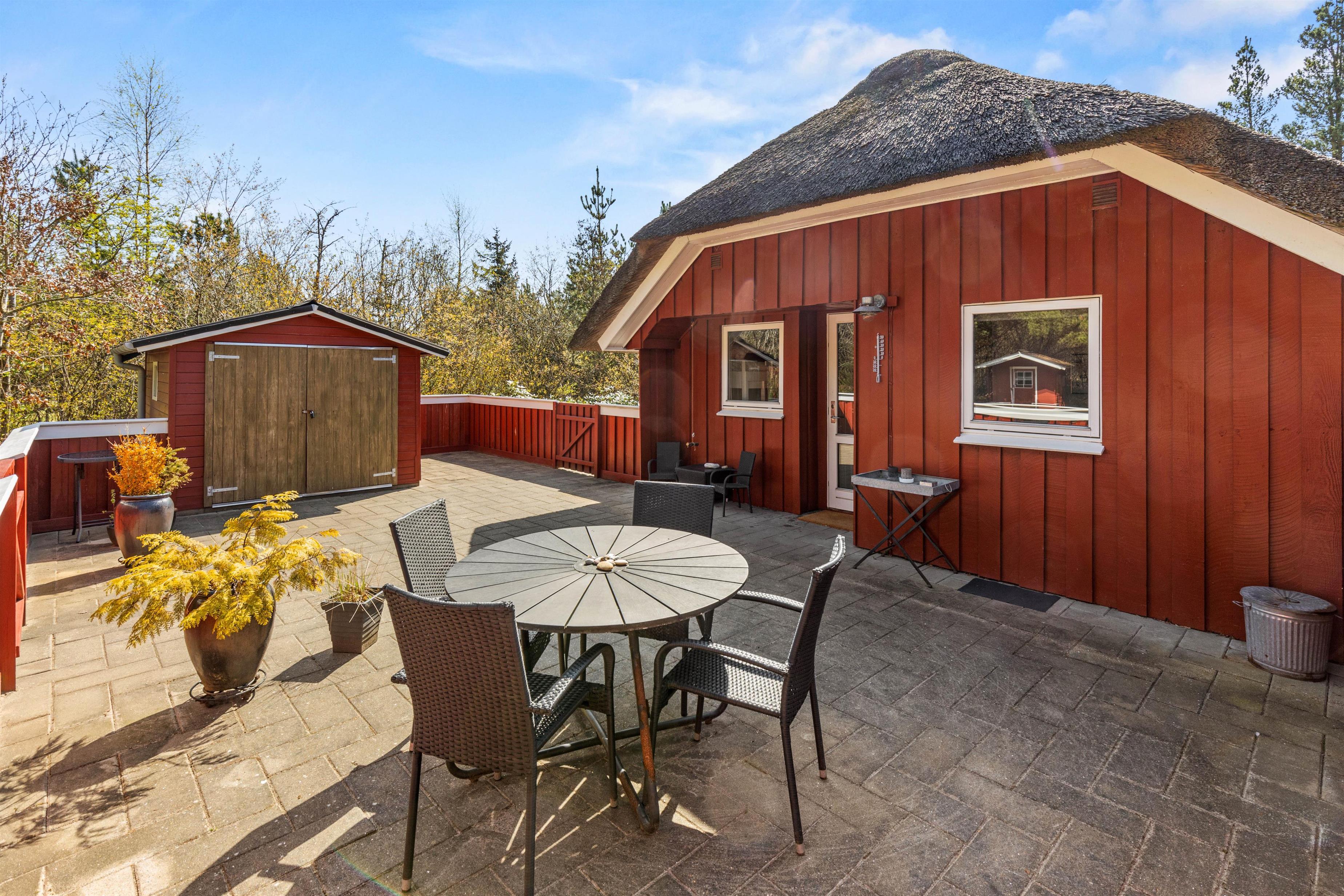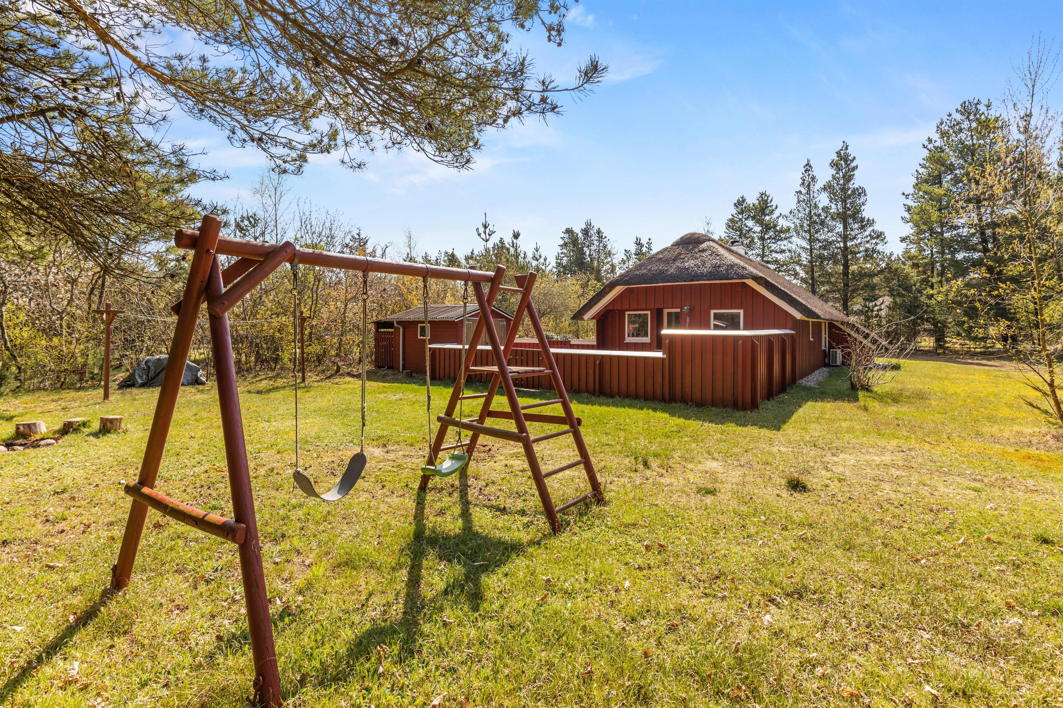 Den store terrasse er afskærmet fra flere sider, og her er der altid god læ til at sidde udenfor og nyde naturen. På de varme sommerdage kan I rykke udenfor med morgenmaden og spise nybagte rundstykker rundt om havebordet, mens dagens første solstråler varmer jer. Gyngen og sandkassen sørger for god underholdning til de mindste feriegæster.