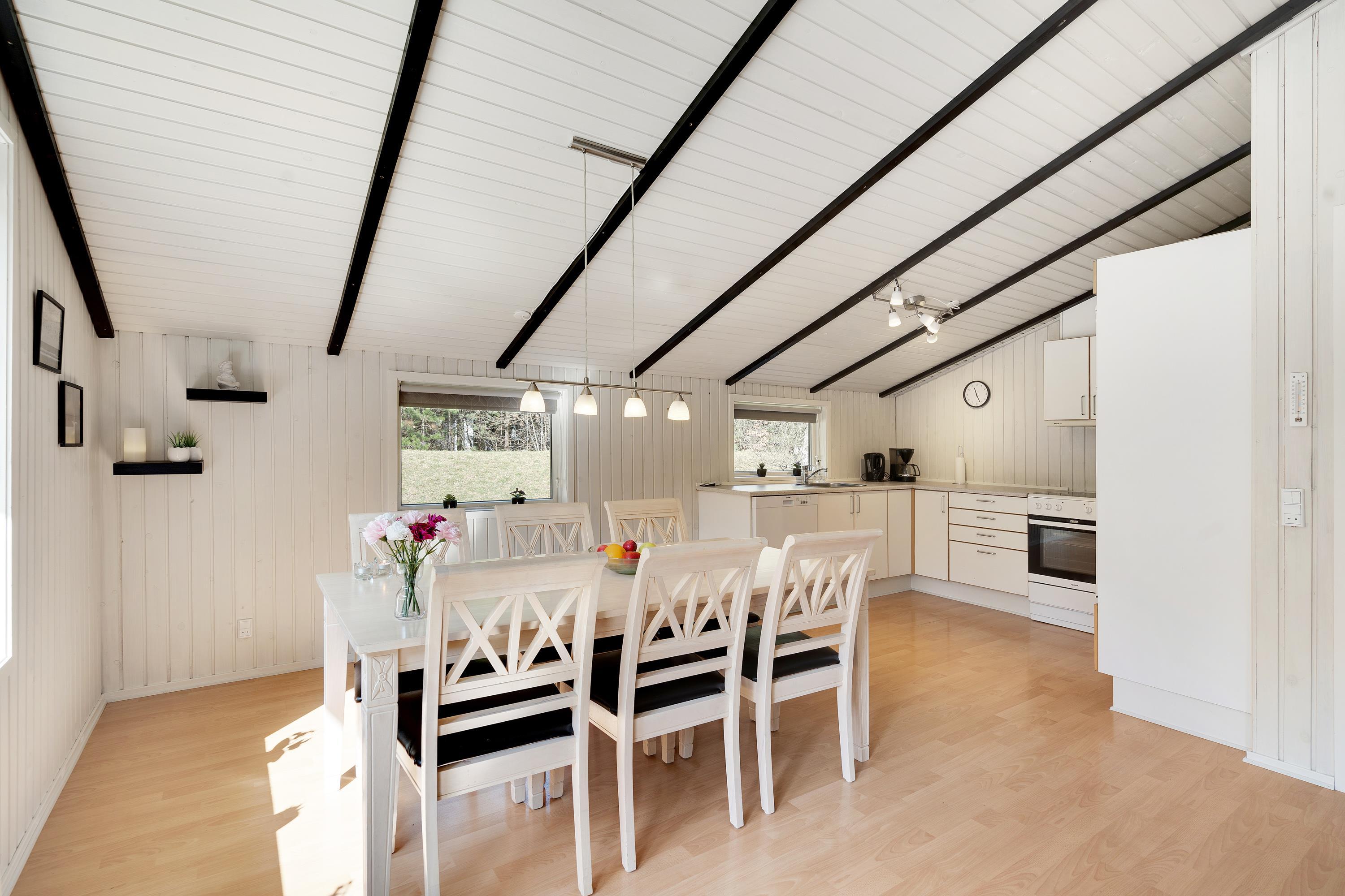 Kirkeflod 68 er et hyggeligt indrettet feriehus til 6 personer. Der er 2 soverum med dobbeltsenge og 1 med 2 enkeltsenge, badeværelset er med bruser. I køkkenet er der opvaskemaskine, så der er mere tid til de vigtige ting, som familiespil ved det store spisebord eller at slappe af på den store bekvemme sofa med en god film i fjernsynet. Lyse vægge med bjælkeværk og den klassiske brændeovn sørger for en moderne men stadig varm og hyggelig stemning, og med luft-til-luft varmepumpe kan I med god samvittighed have det dejligt varmt i huset.