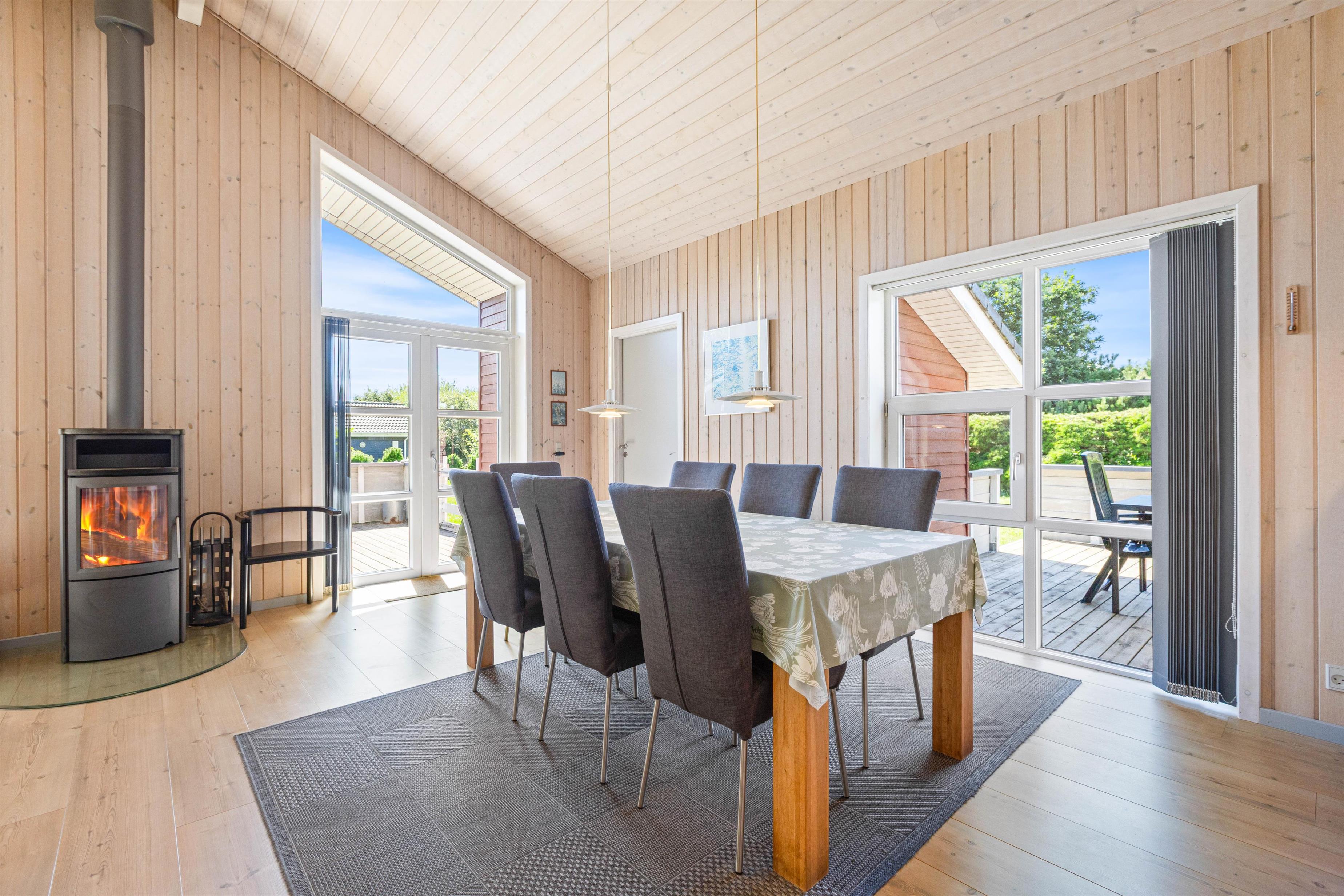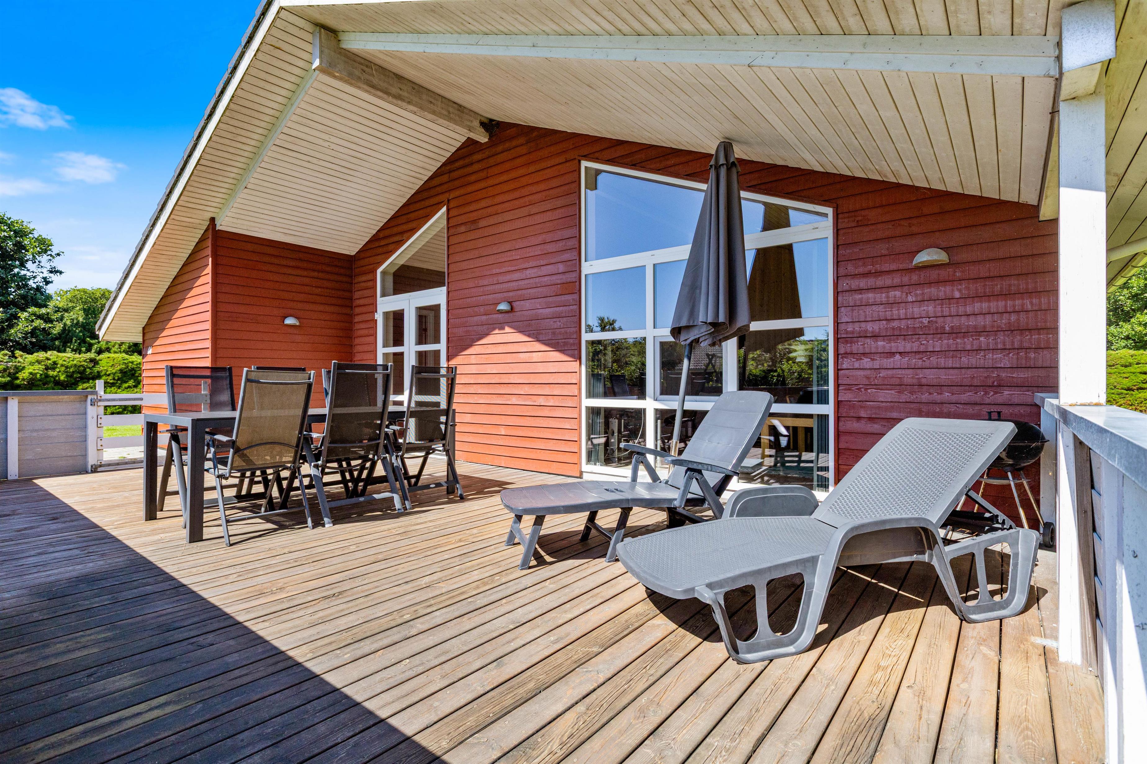 Huset har to store dejlige terrasser med masser af plads til afslapning. Med både en syd- og vestvendt terrasse kan Ifølge med solen dagen lang, og med et overdækket stykke kan den smukke natur betragtes, selv når vejret svigter.