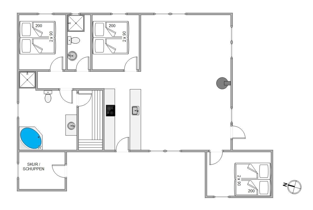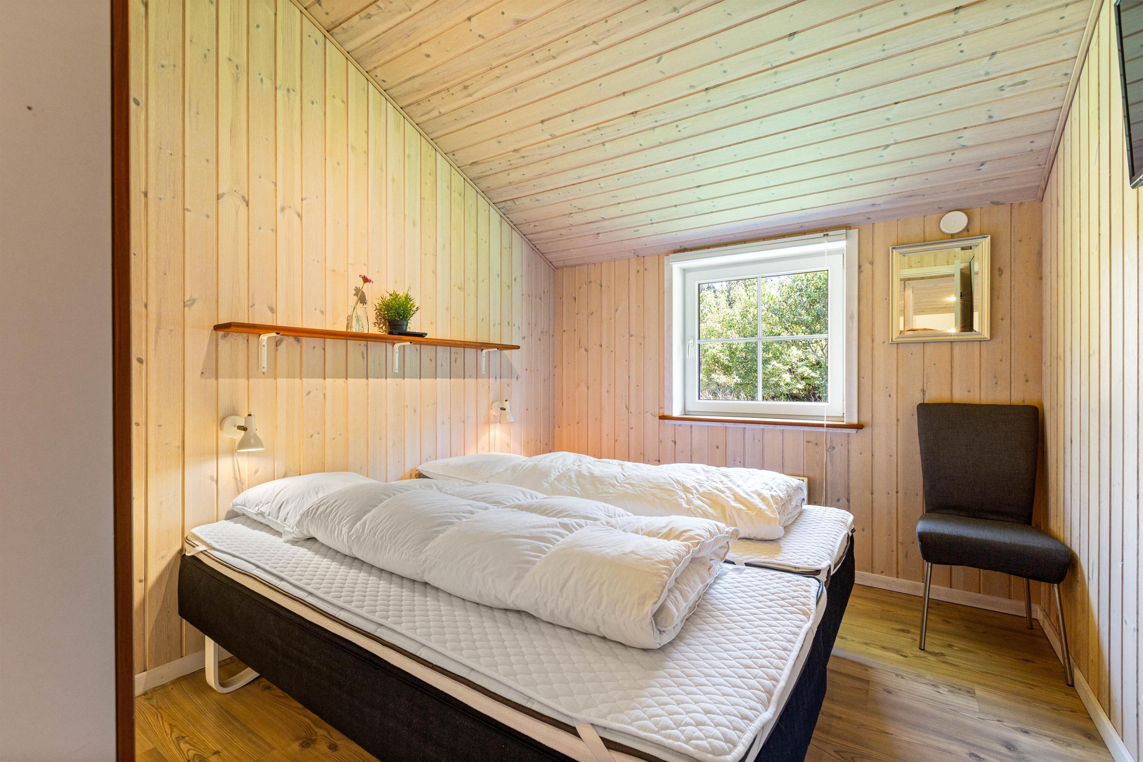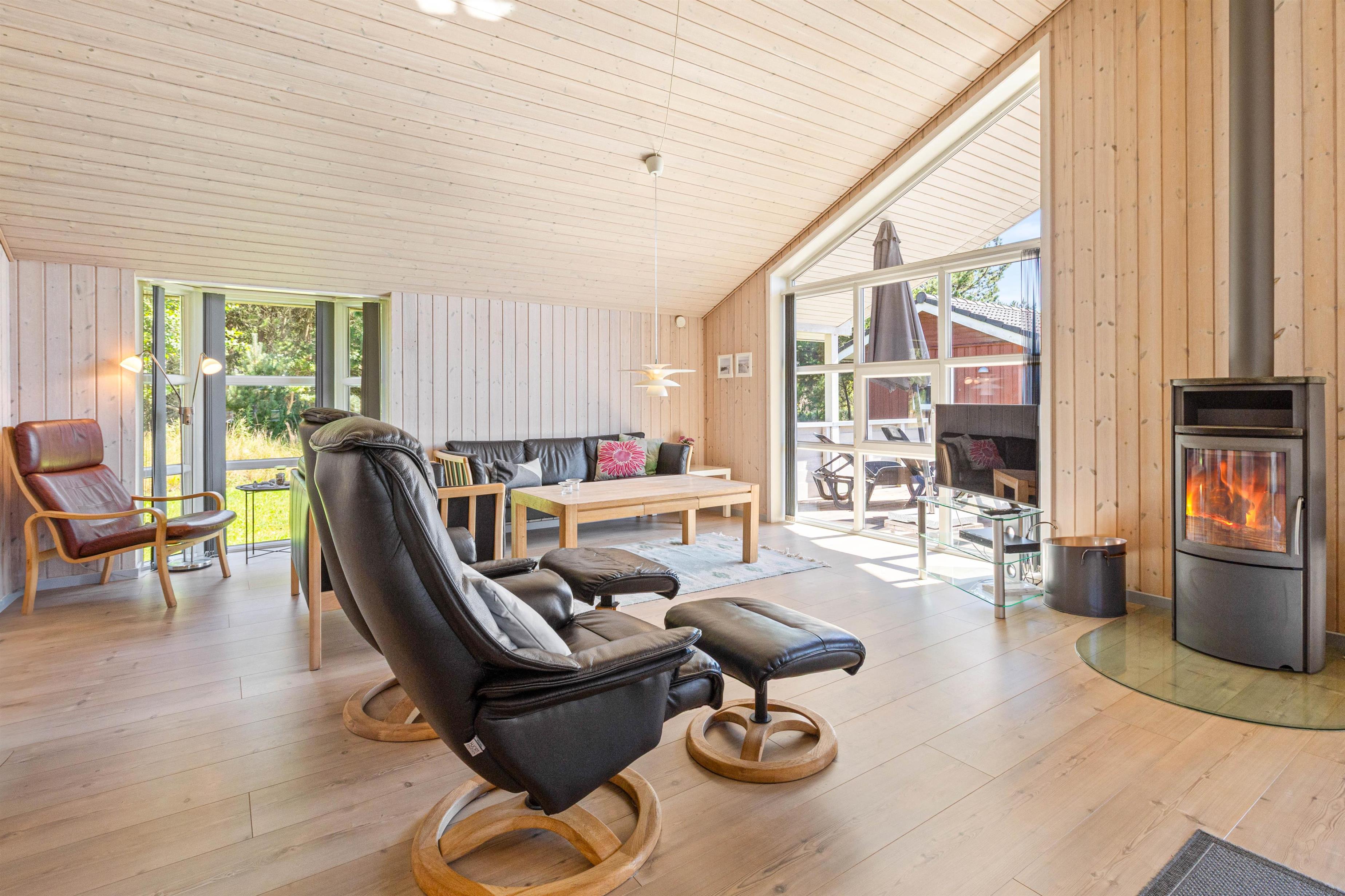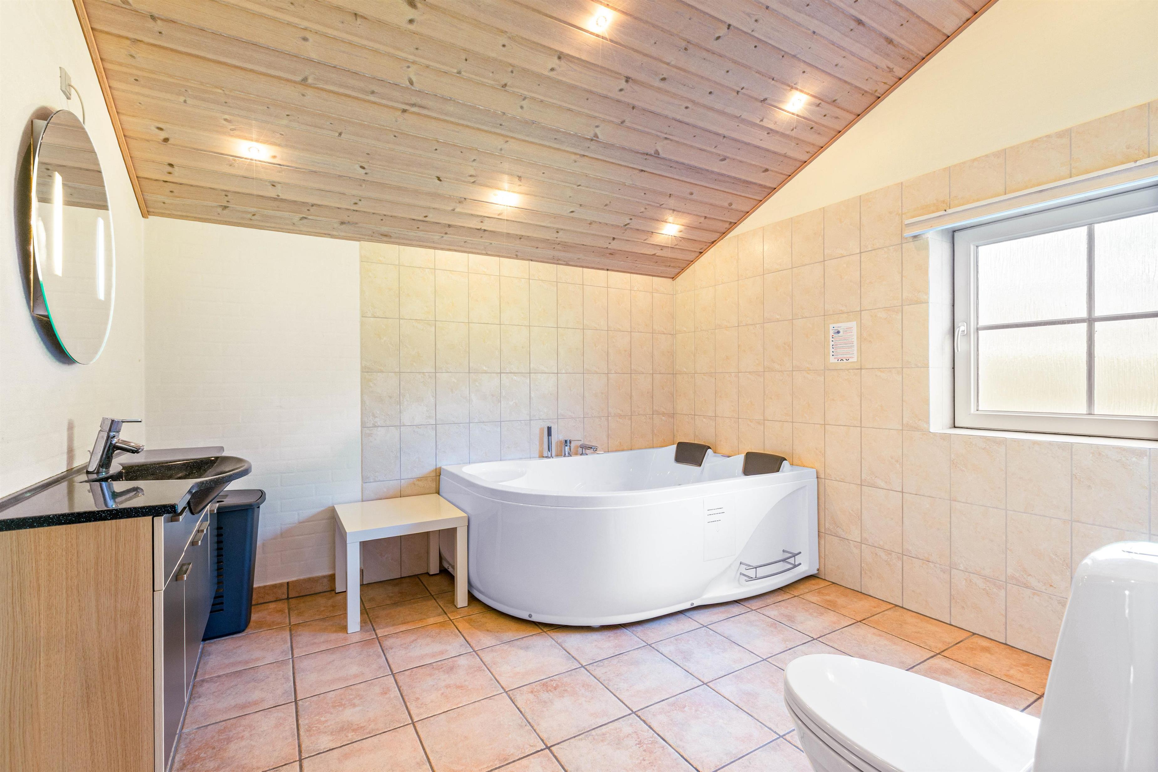 På det største badeværelse står spabadet og saunaen klar til at forkæle jer efter en lang og dejlig dag ude i den friske luft. Her er altså skøn feriestemning hele året rundt, og sammen med brændeovnen sørger spaen og saunaen for masser af varme og hygge.