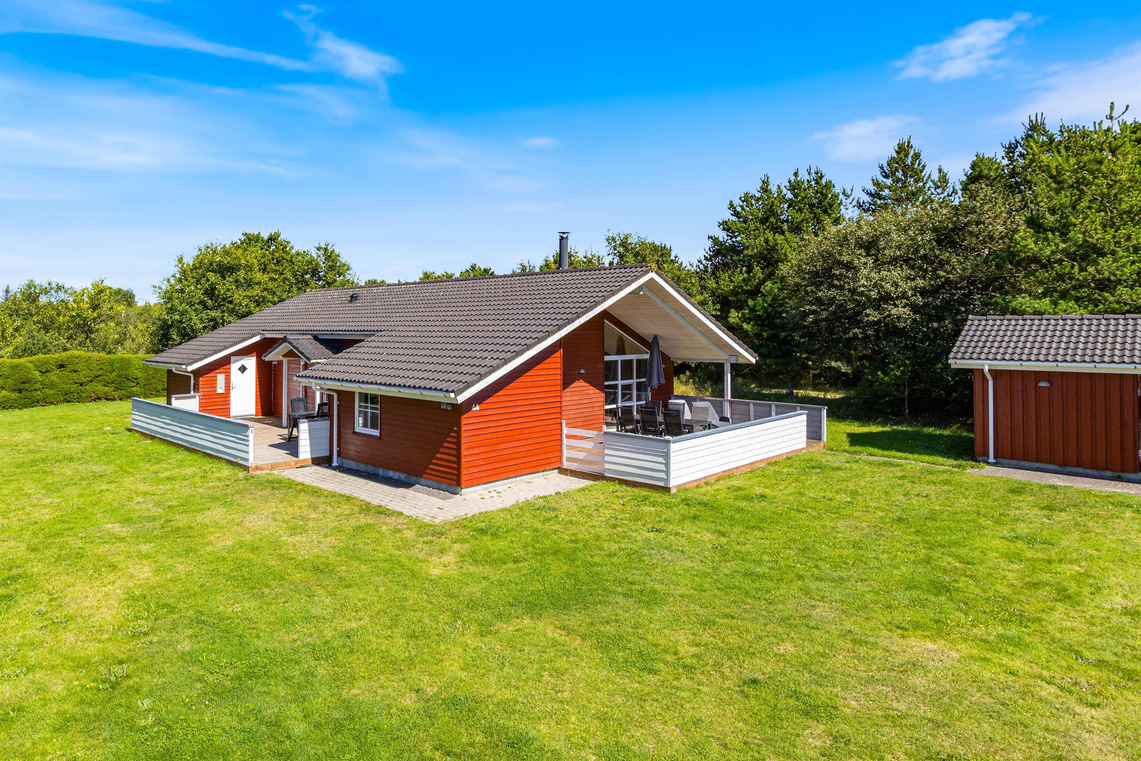 På Skovvang 44 er rammerne sat for en herlig ferie med vennerne, og selvfølgelig hunden. Her får I et lækkert og moderne somemrhus med både spa og sauna, og rygning tilladt. Dertil er der 2 store, dejlige terrasser med have og plads til masser af hygge.