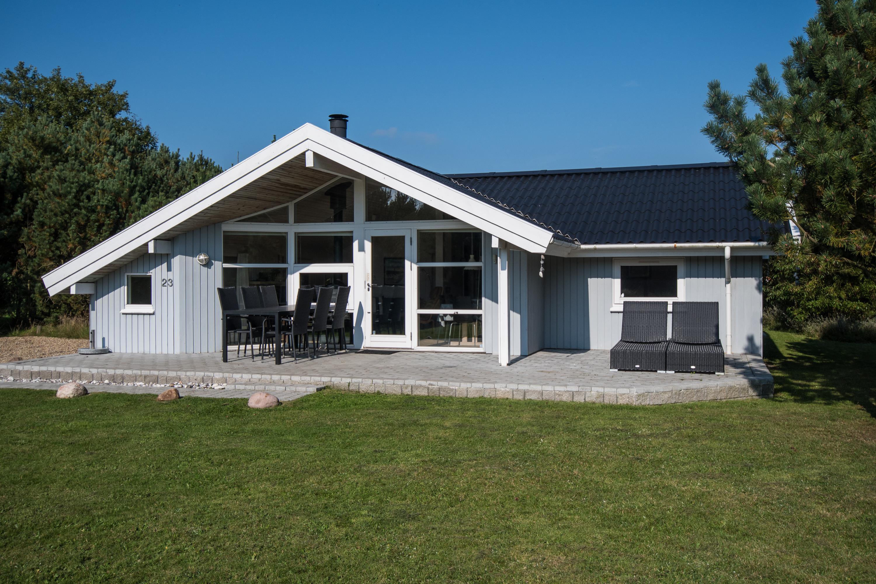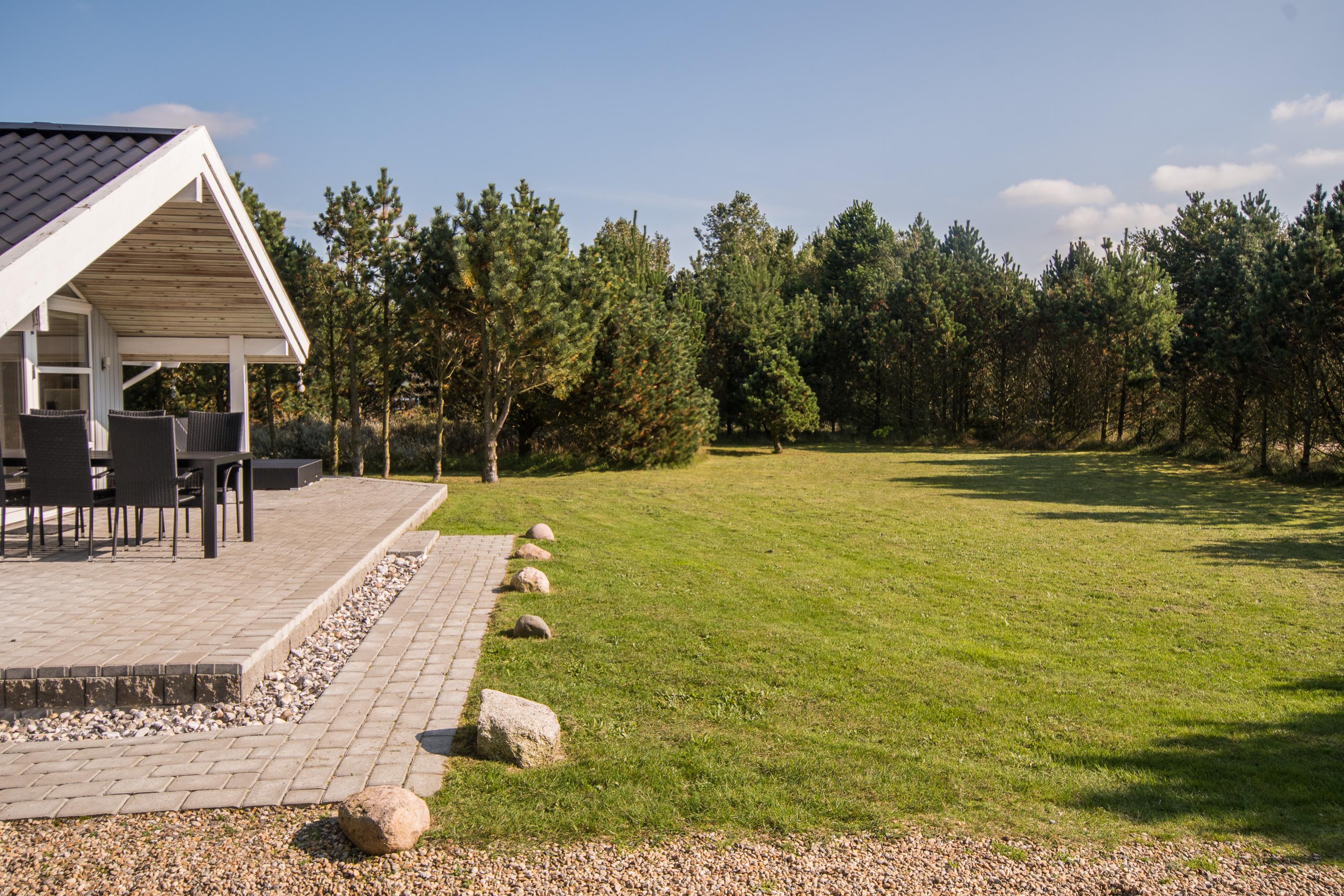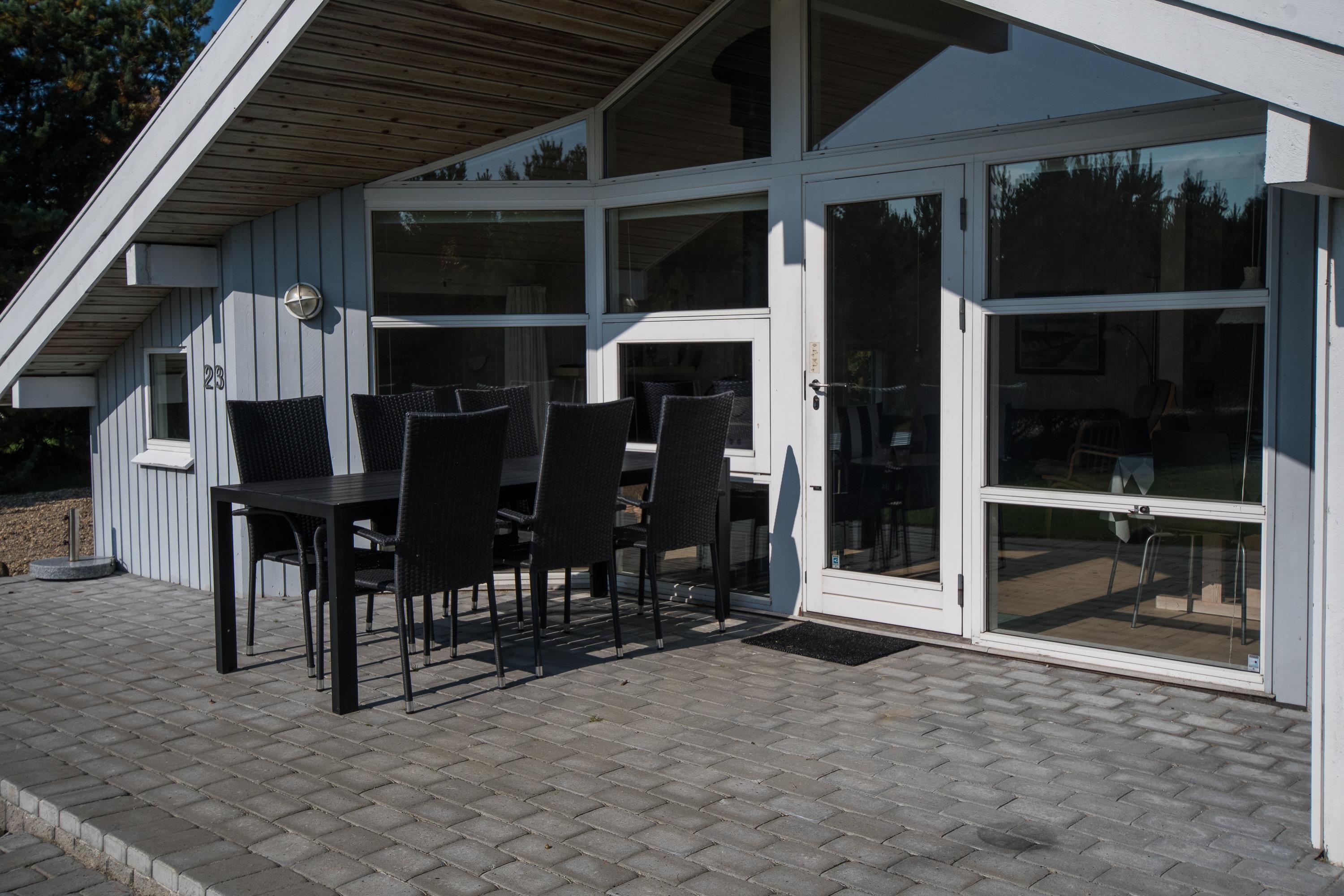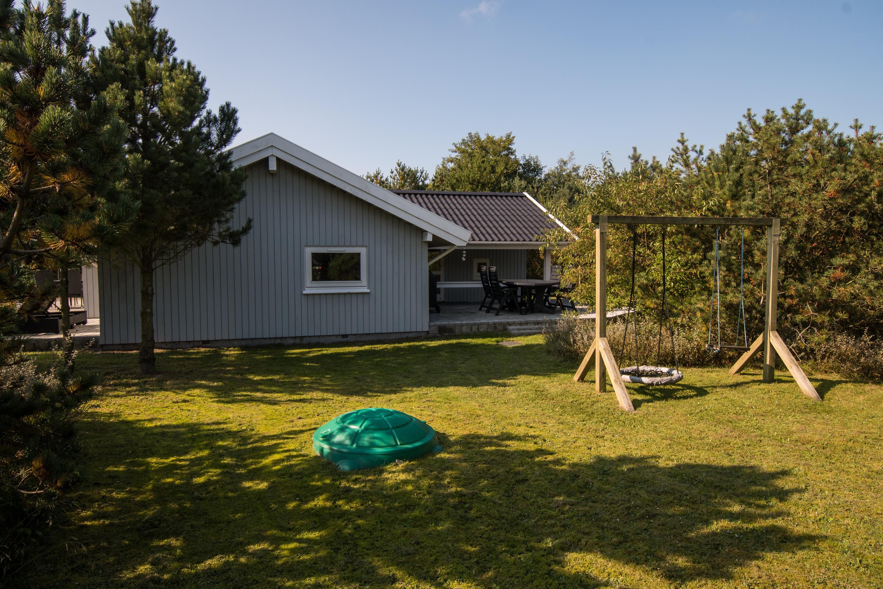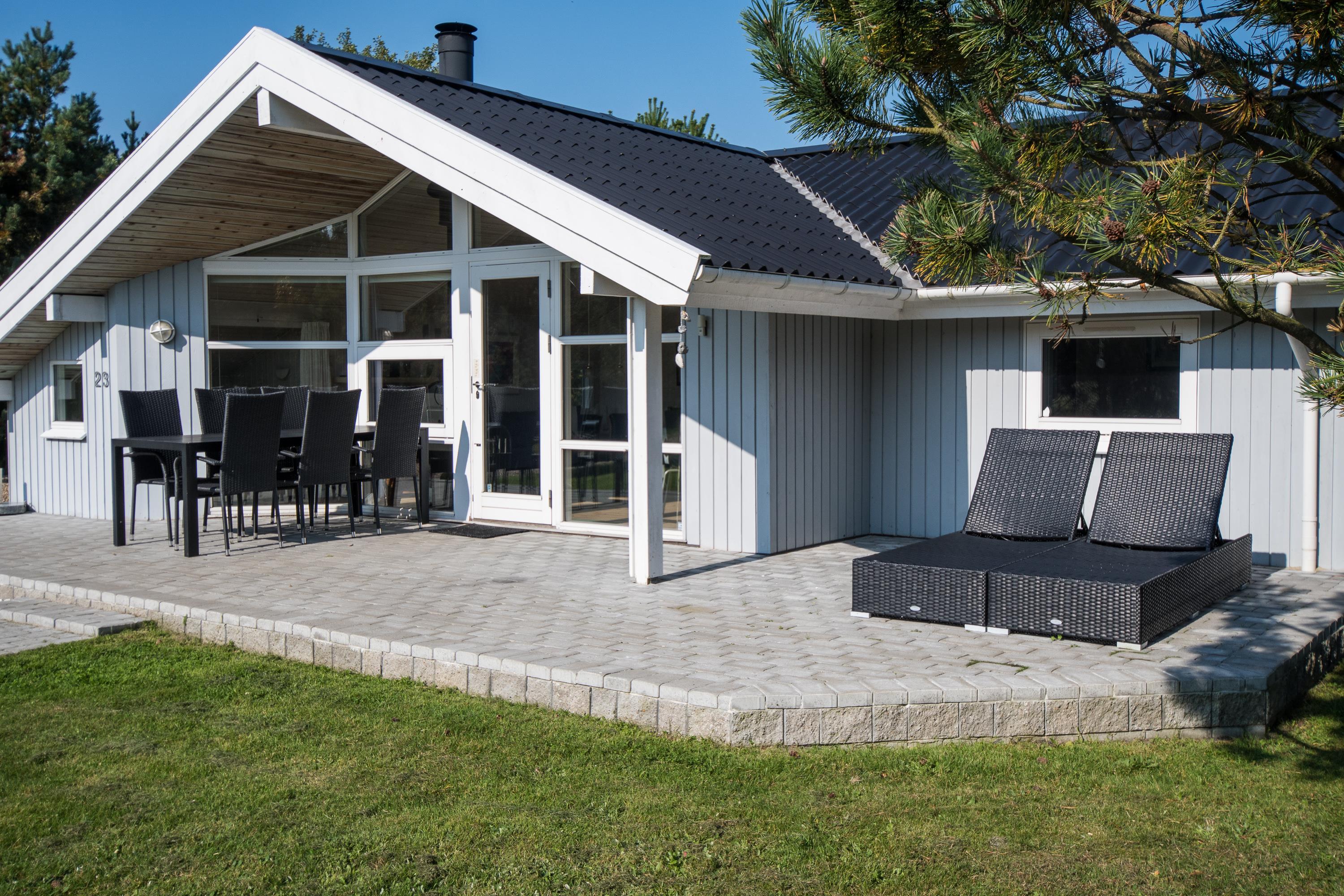 Efter en hyggelig morgenmad er det tid til at rykke ud på terrassen, hvor liggestolene står klar til at sørge for afslapning og feriefred. Luk øjnene i og nyd stilheden med hundenes gøen og børnenes latter i det fjerne, mens de leger på den store græsplæne med legeplads.