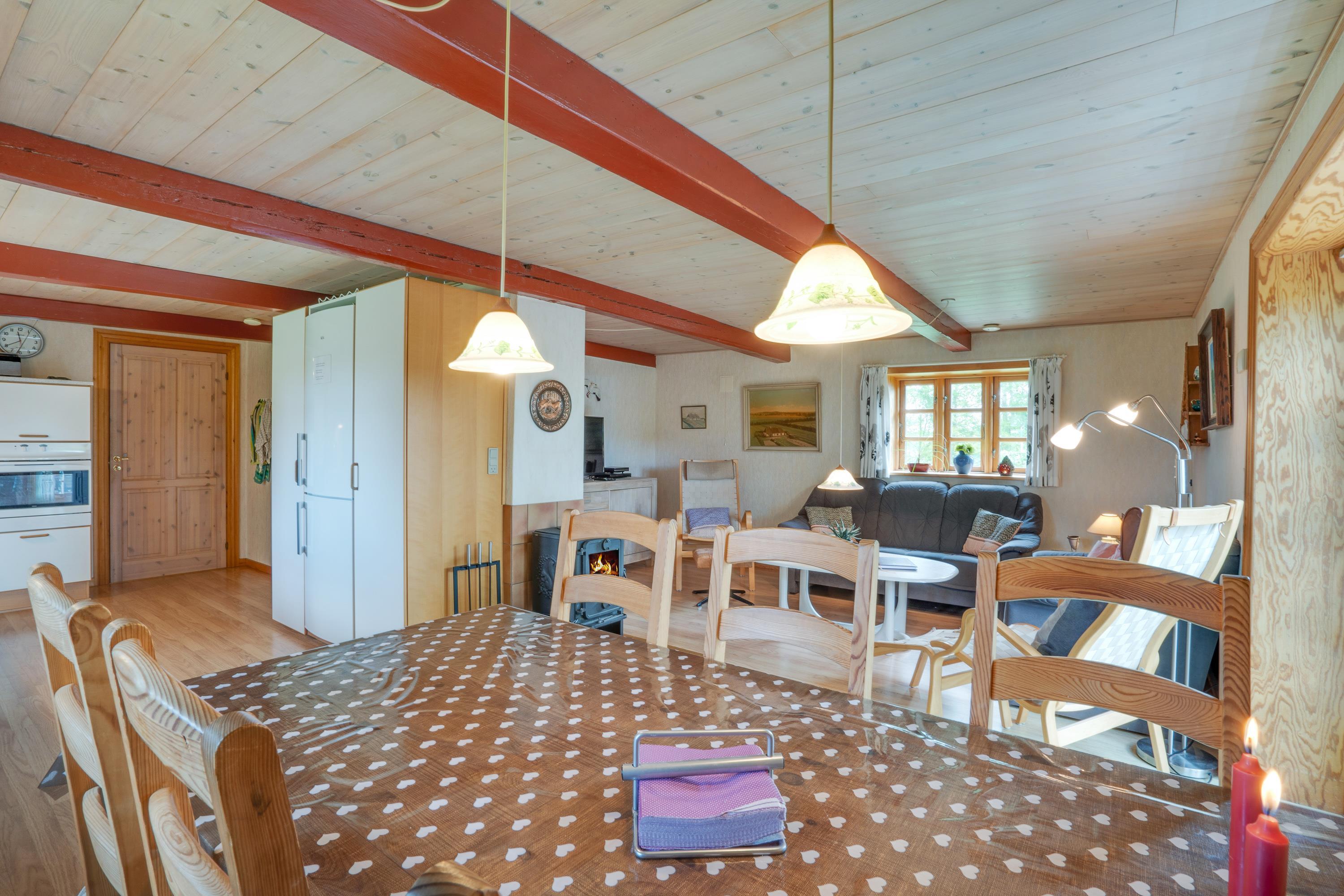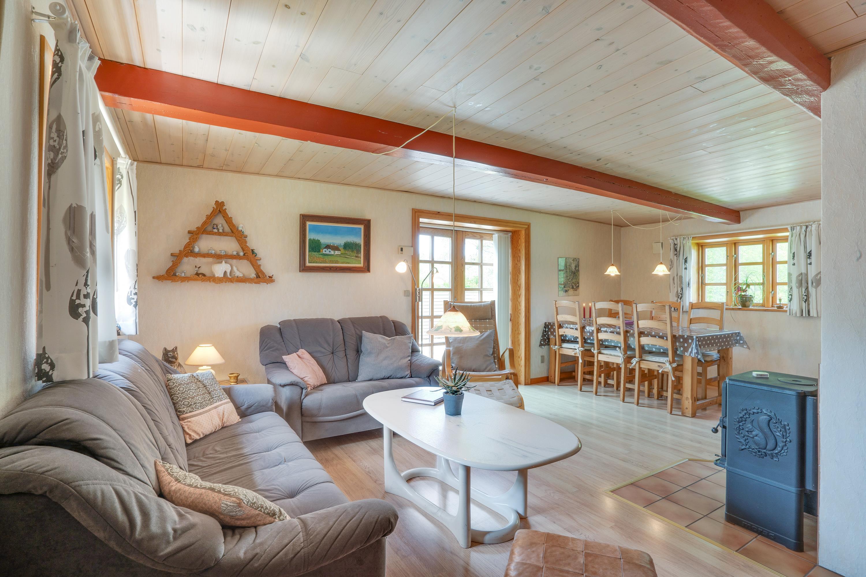 Ferieboligens indretning er enkel, men velholdt og perfekt til en afslappende ferie med familien. Her kan op til 6 personer tilbringe fridagene med et beboelsesareal på 100 m². Den energibesparende varmepumpe sørger for behagelige temperaturer, ligesom gulvvarmen, men der er også en traditionel brændeovn. Især på de måske lidt køligere aftener sikrer brændeovnen ikke kun en hyggelig temperatur, men også den perfekte ferieatmosfære, der følger med den.
