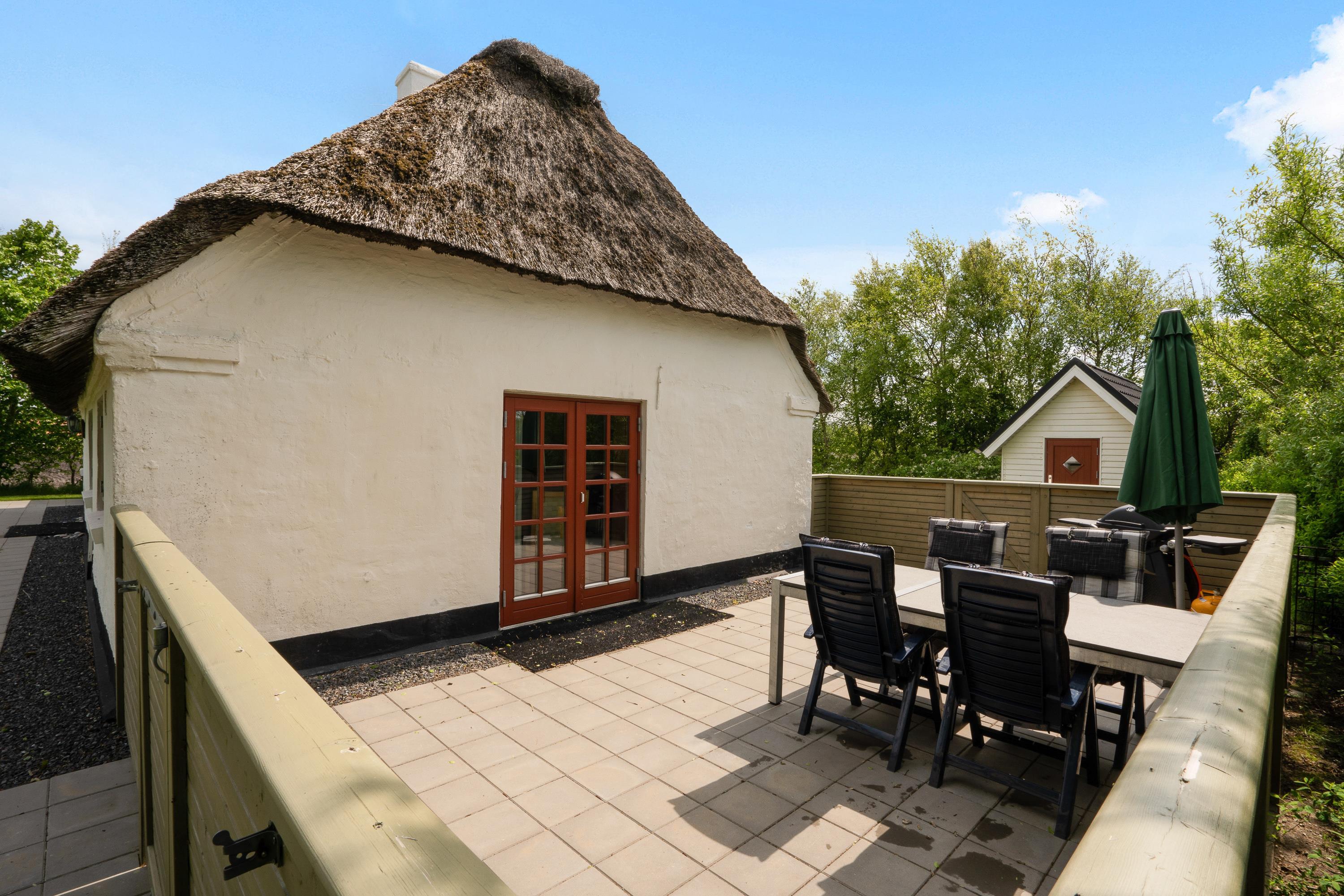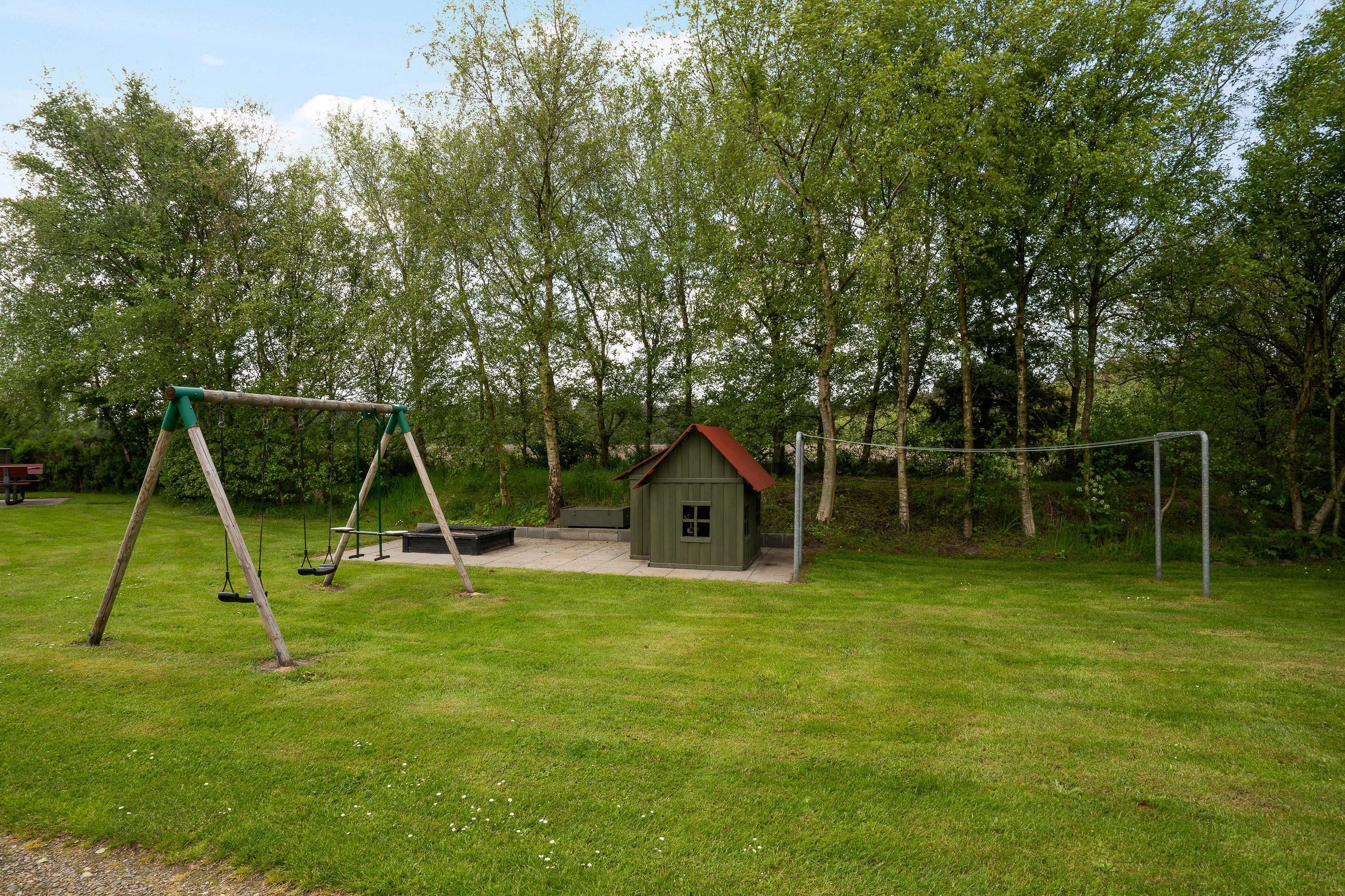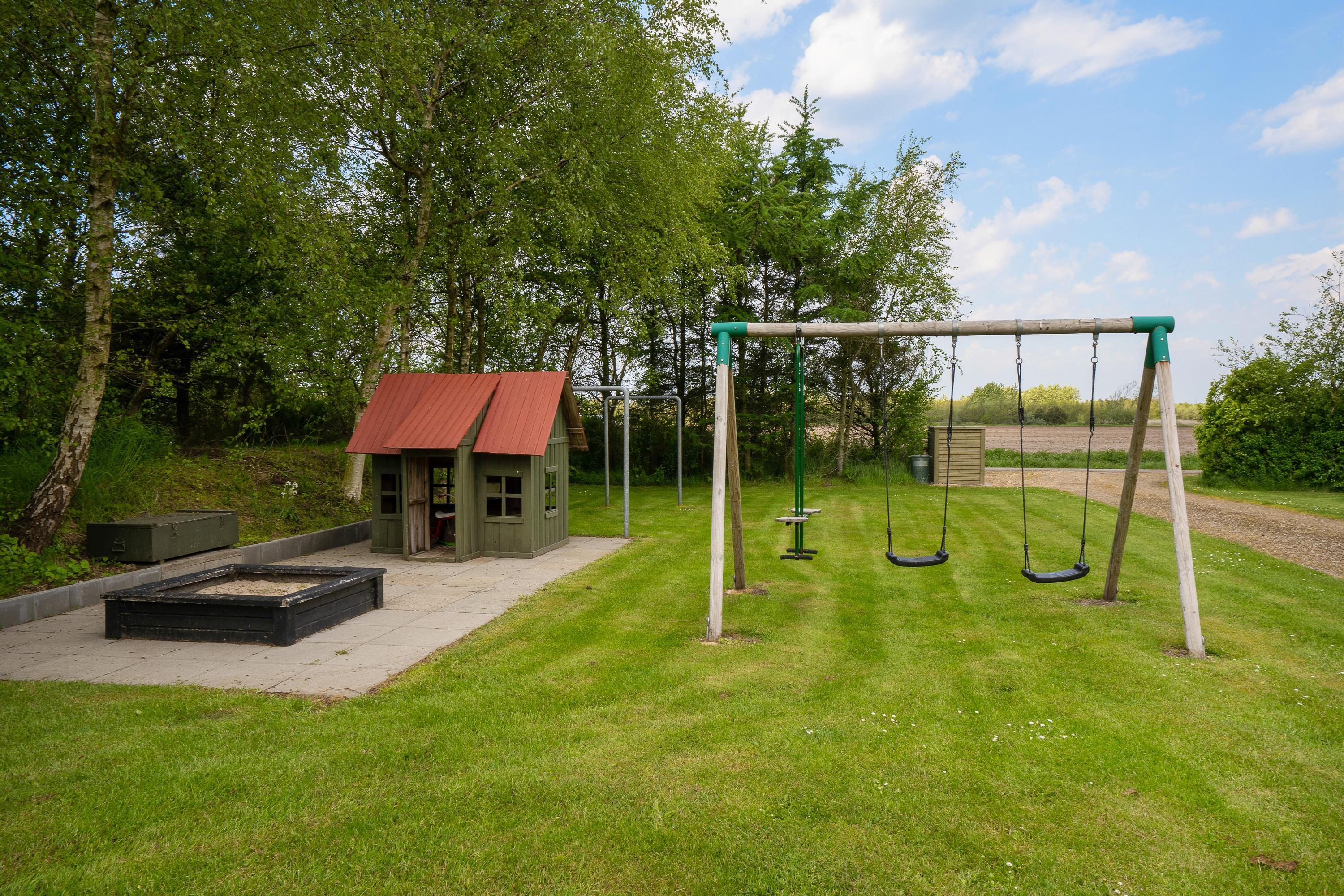 Især hvis du rejser med små børn eller hunde, vil du helt sikkert sætte pris på den lukkede terrasse. Denne er udstyret med havemøbler, liggestole og en gasgrill - perfekt til afslappende dage ved sommerhuset i Houstrup. For børnene er der gynger, et lille legehus og en sandkasse. Hele ejendommen er bestemt den perfekte eventyrlegeplads.