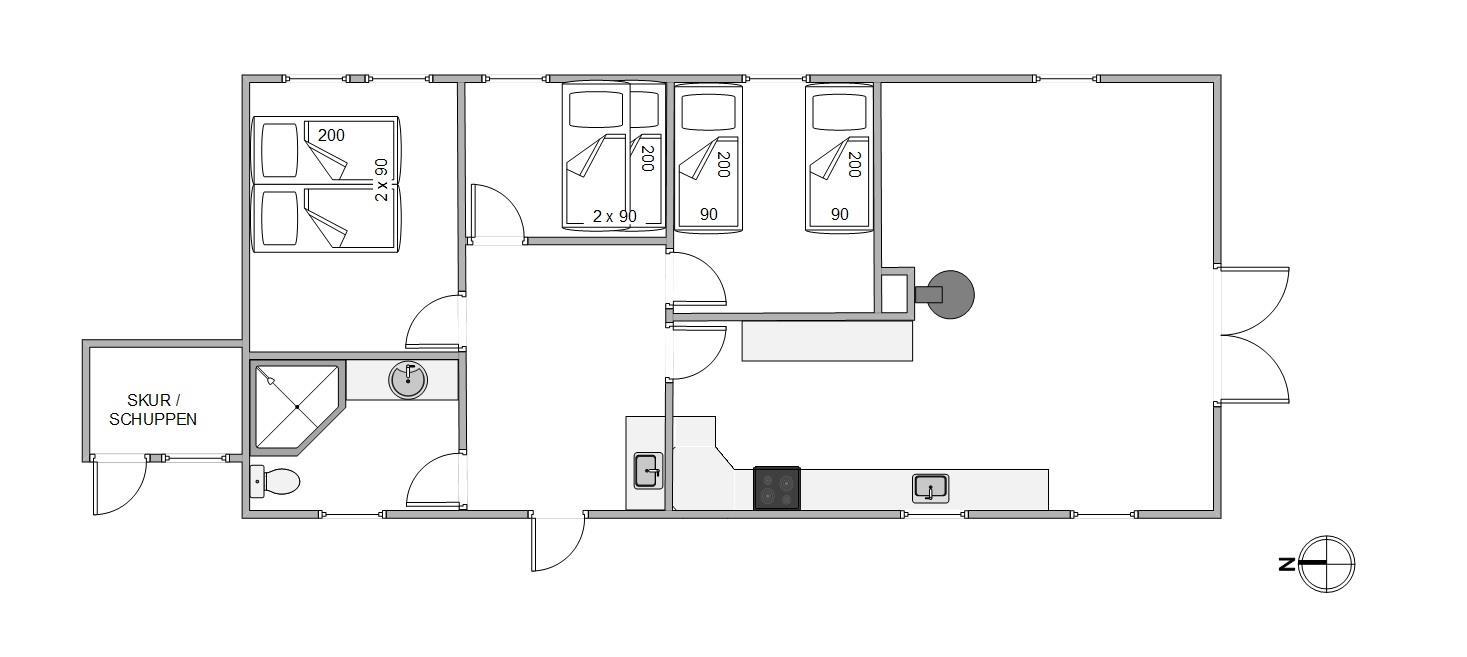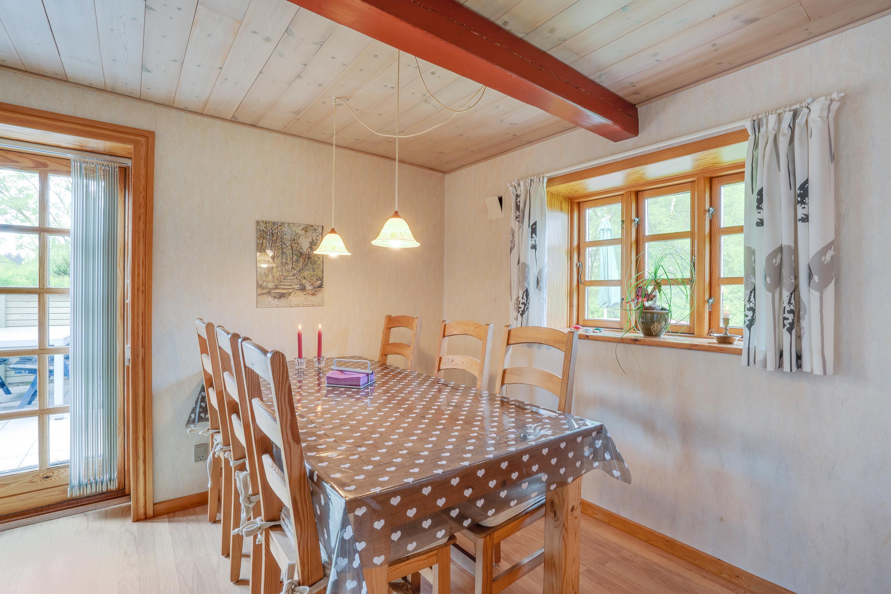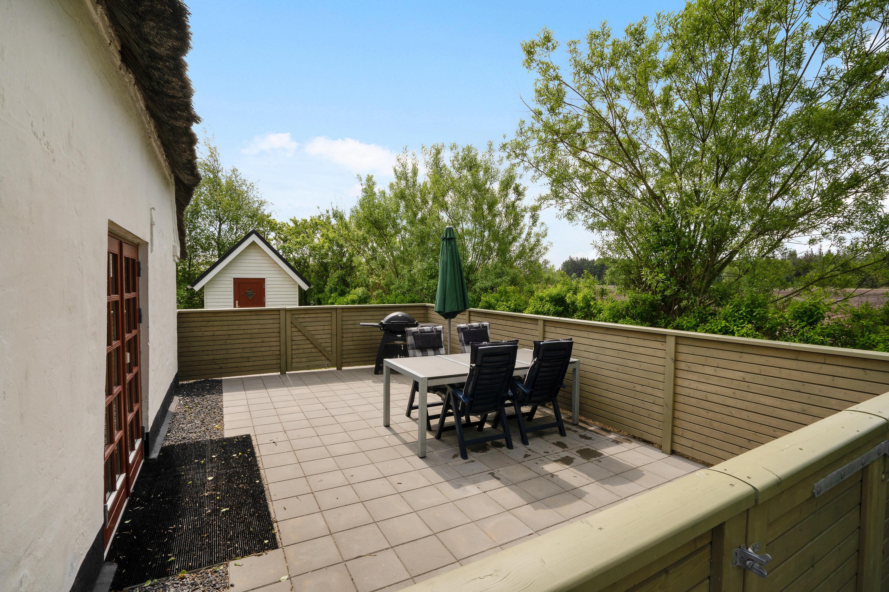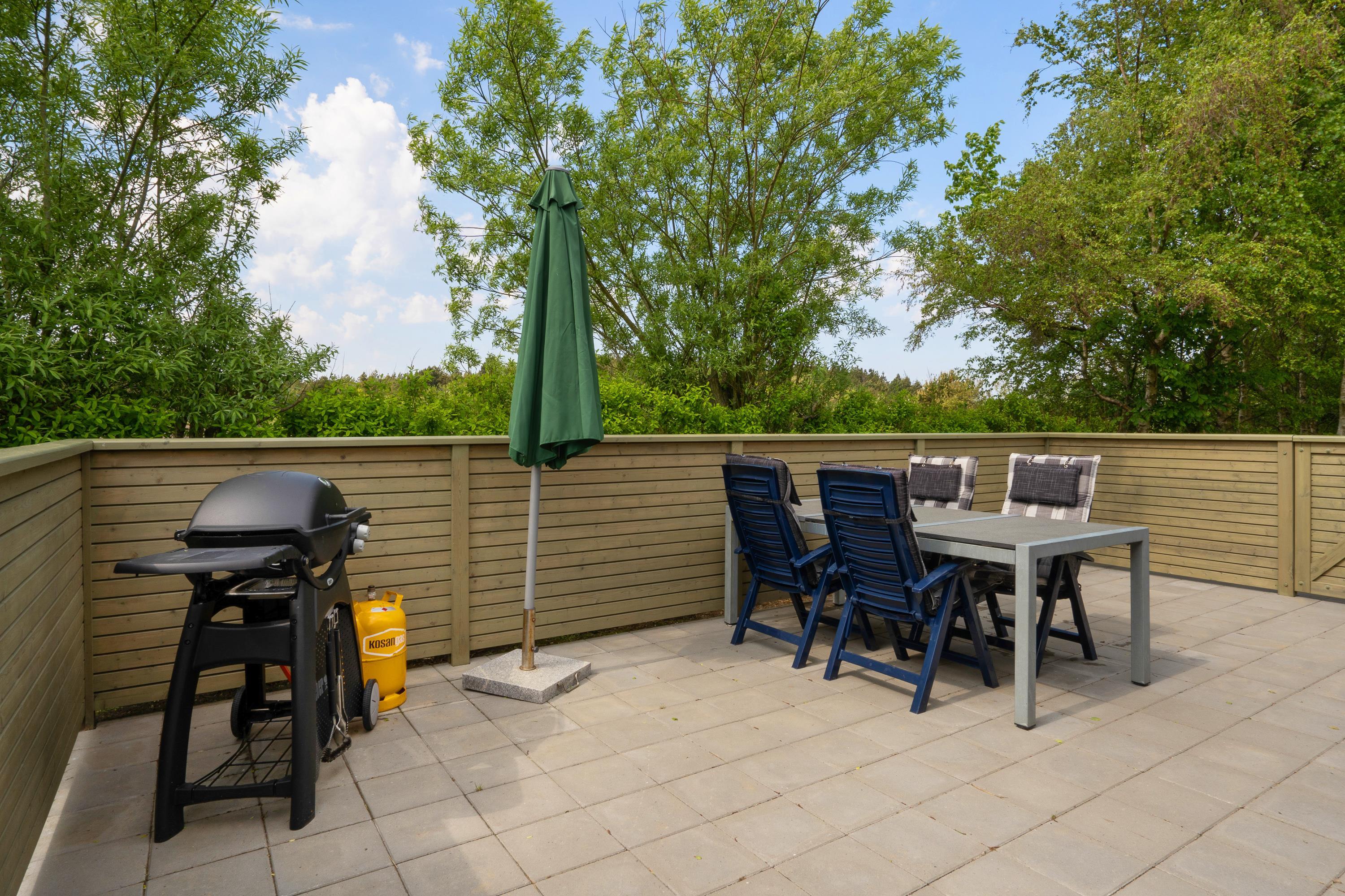 Især hvis du rejser med små børn eller hunde, vil du helt sikkert sætte pris på den lukkede terrasse. Denne er udstyret med havemøbler, liggestole og en gasgrill - perfekt til afslappende dage ved sommerhuset i Houstrup. For børnene er der gynger, et lille legehus og en sandkasse. Hele ejendommen er bestemt den perfekte eventyrlegeplads.