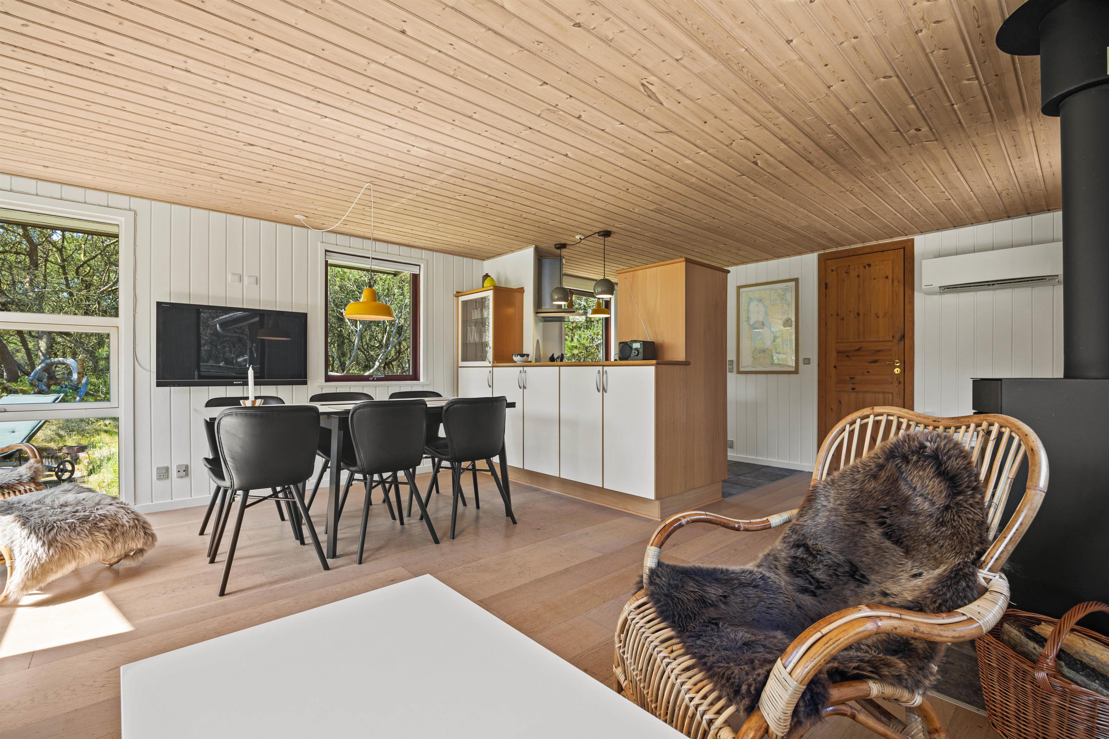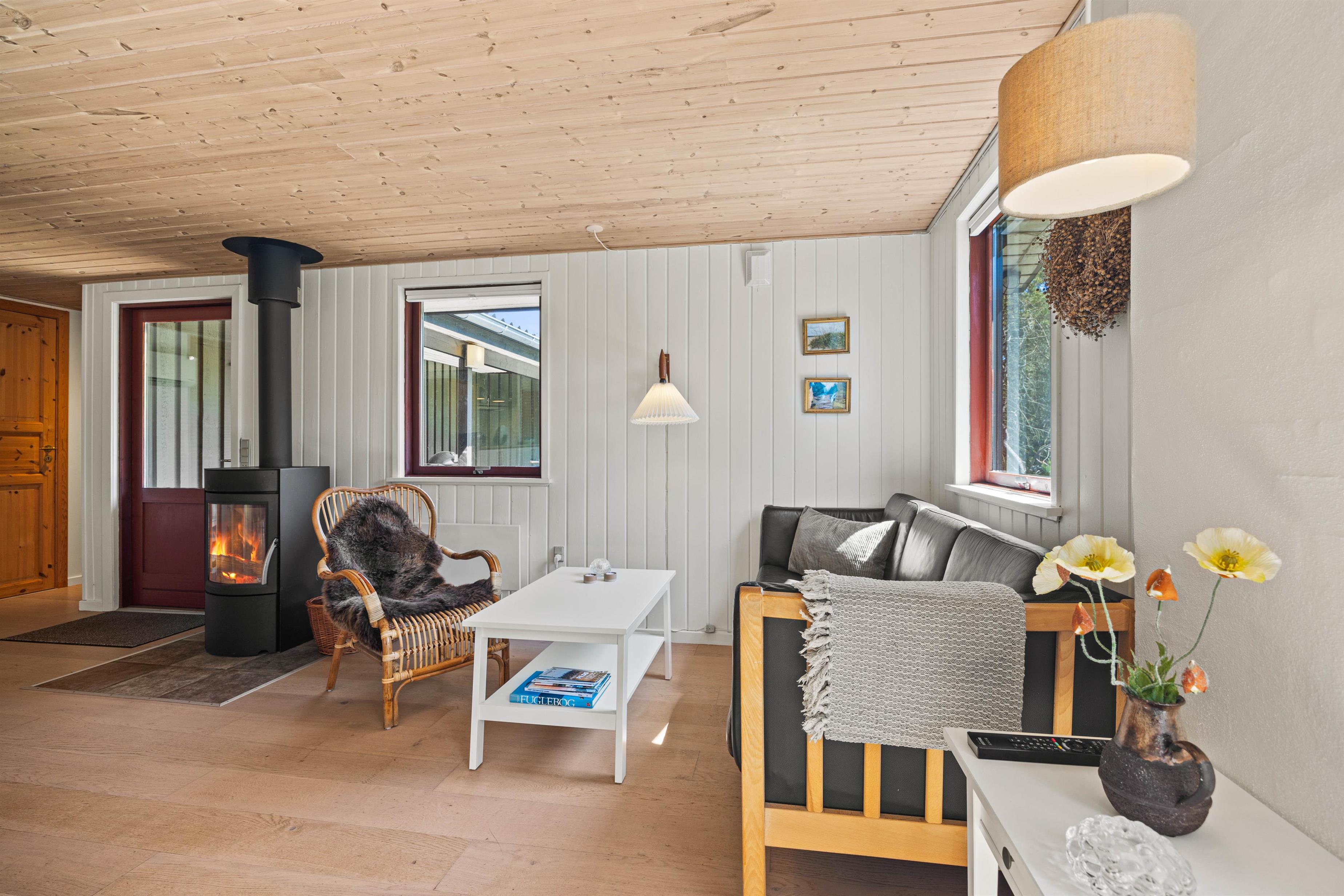 Den knitrende brændeovn vil sørge for både varme og masser af feriestemning, mens I læser en bog i sofaen, tilbereder aftensmaden i køkkenet, eller nyder en god middag og et glas vin rundt om spisebordet.