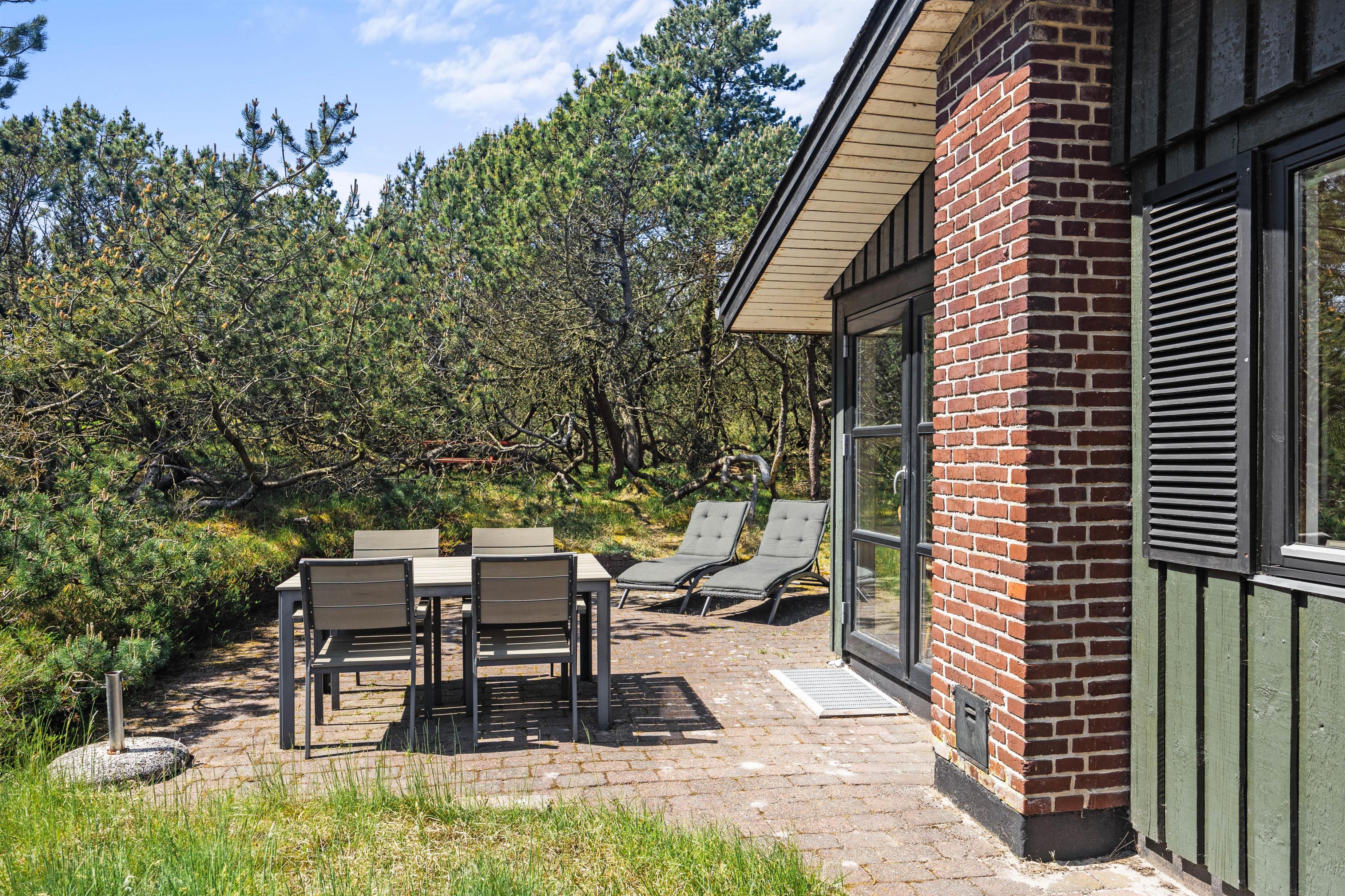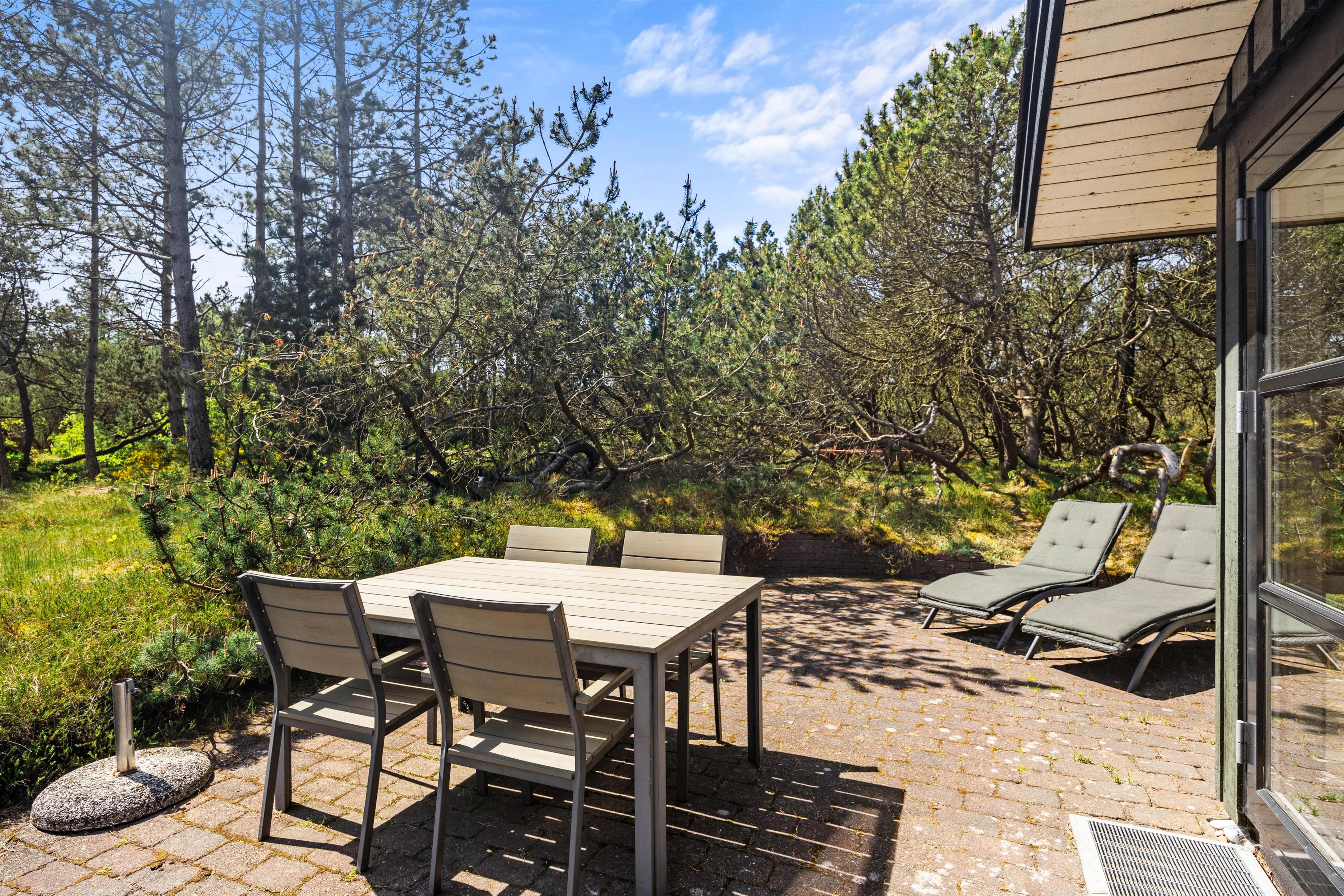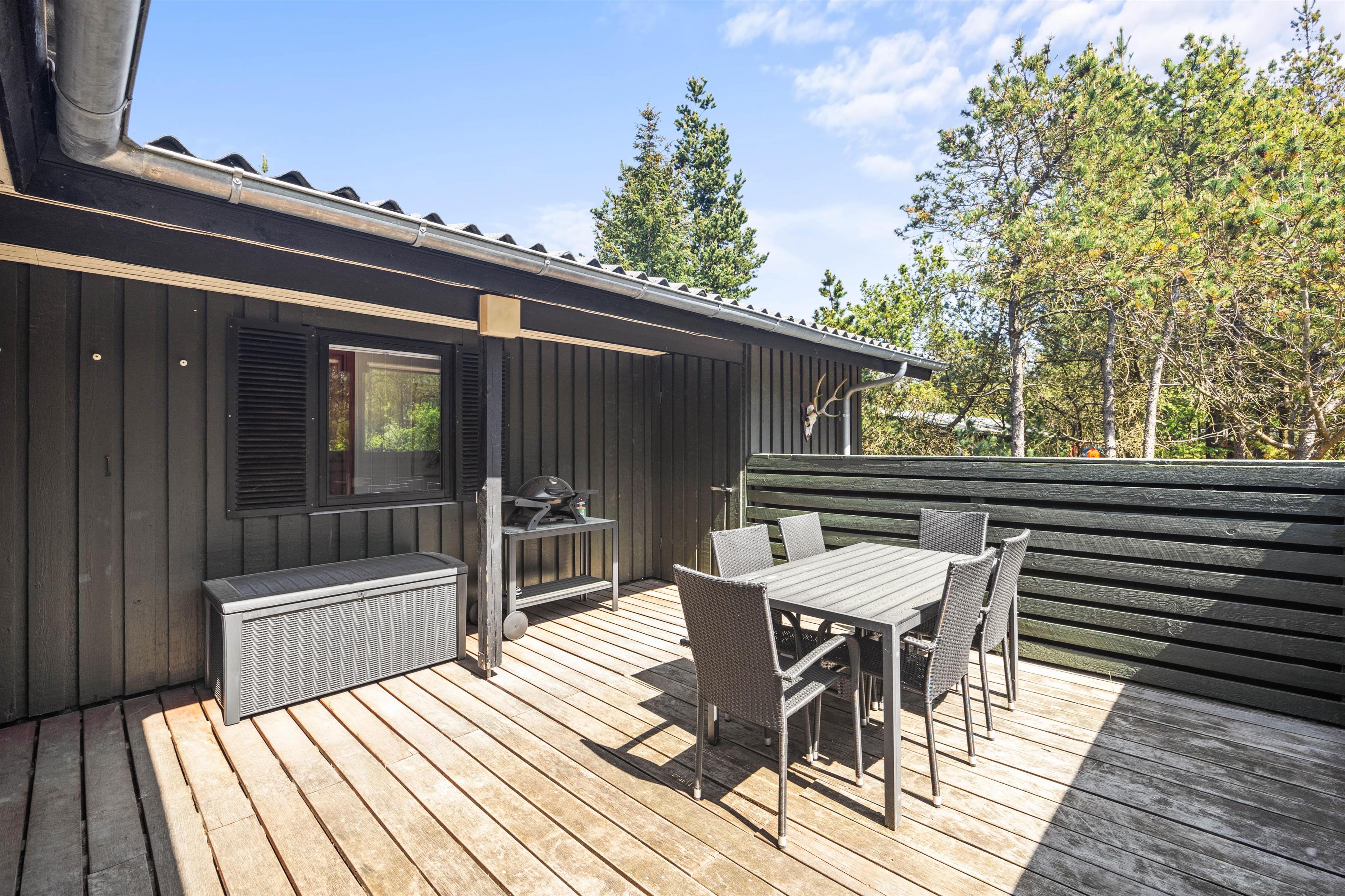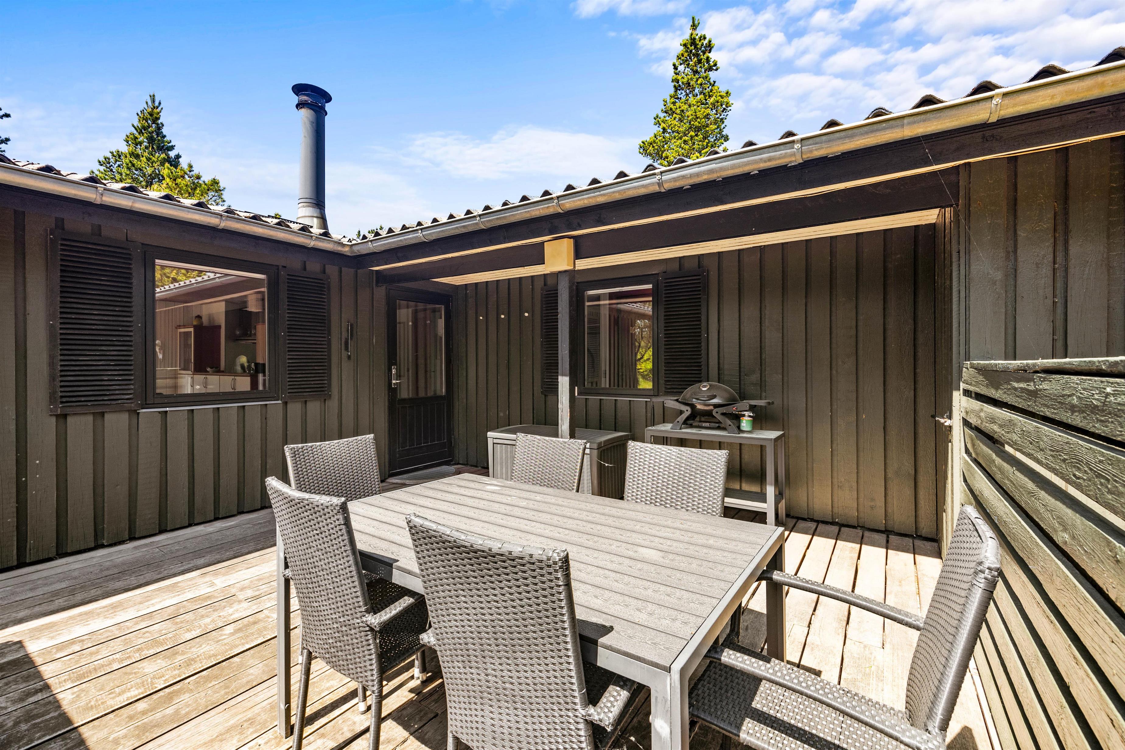 Den lukkede og delvist overdækkede terrasse er perfekt til børnene og hunden, og her kan de frit lege, mens I soler jer eller tilbereder en lækker feriemiddag på grillen. Oplevelser er der også nok af i nærheden, for eksempel i Blåbjerg Plantage, hvor I kan betragte den smukke natur, gå ture på de små stier og spejde efter dyrene.