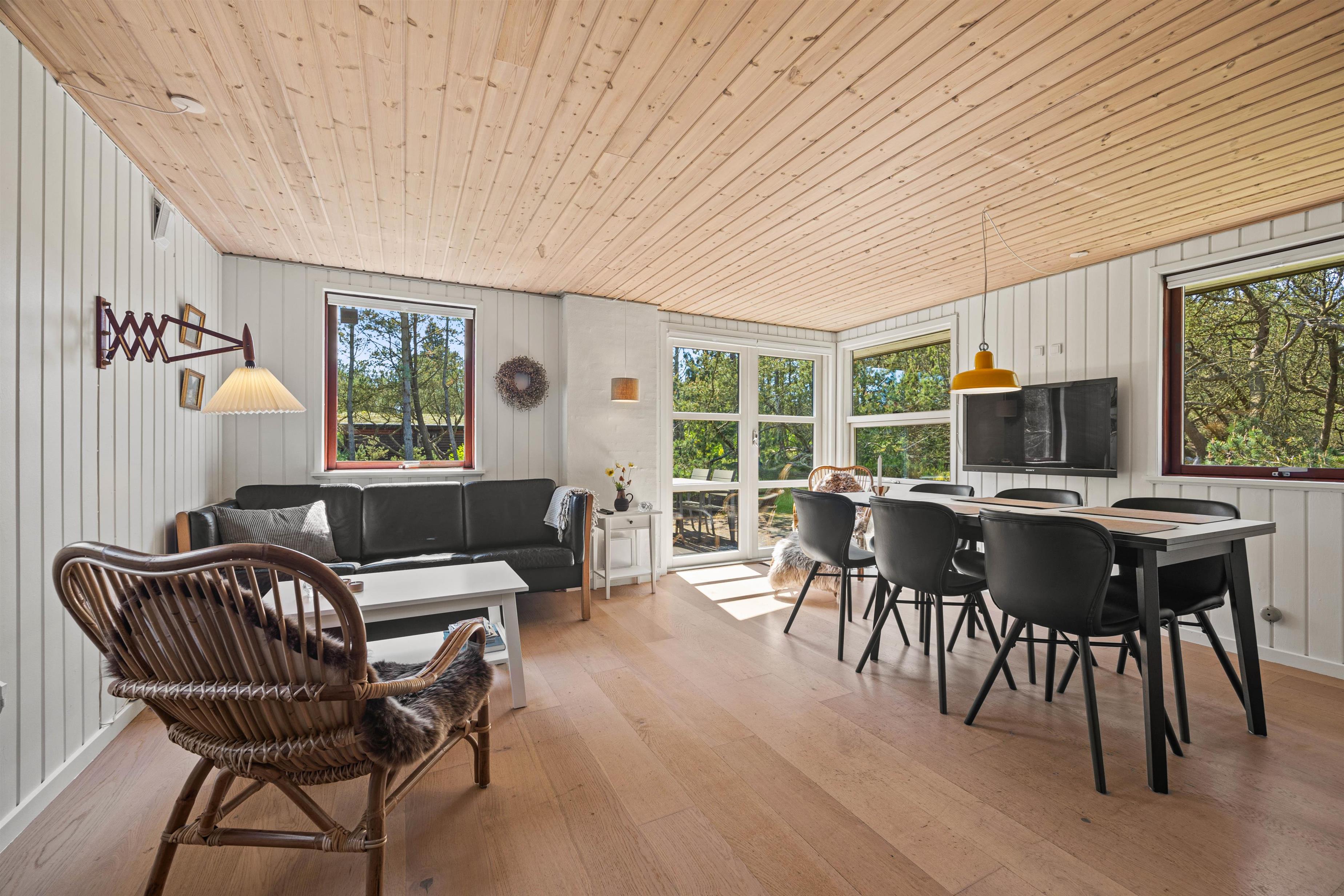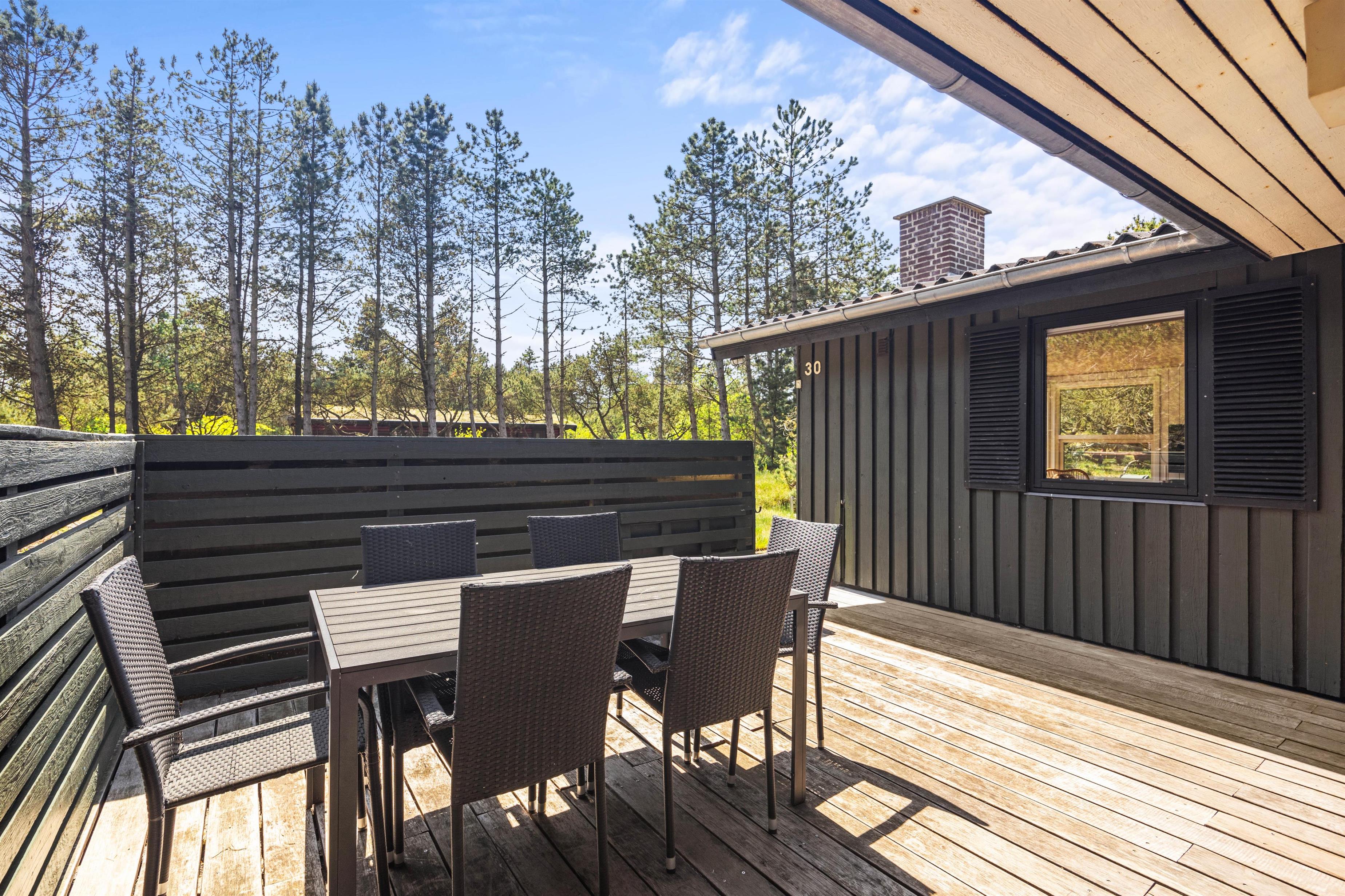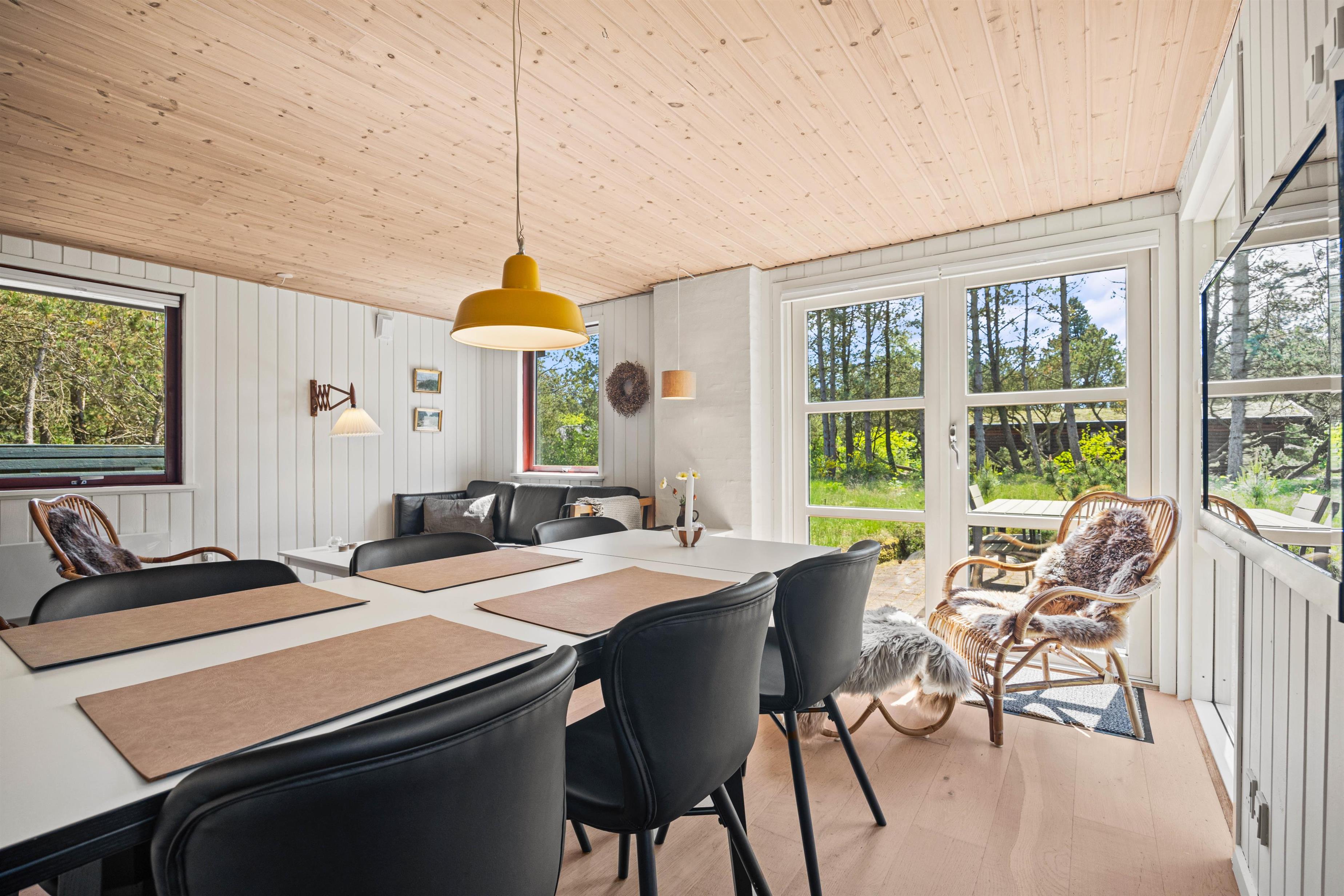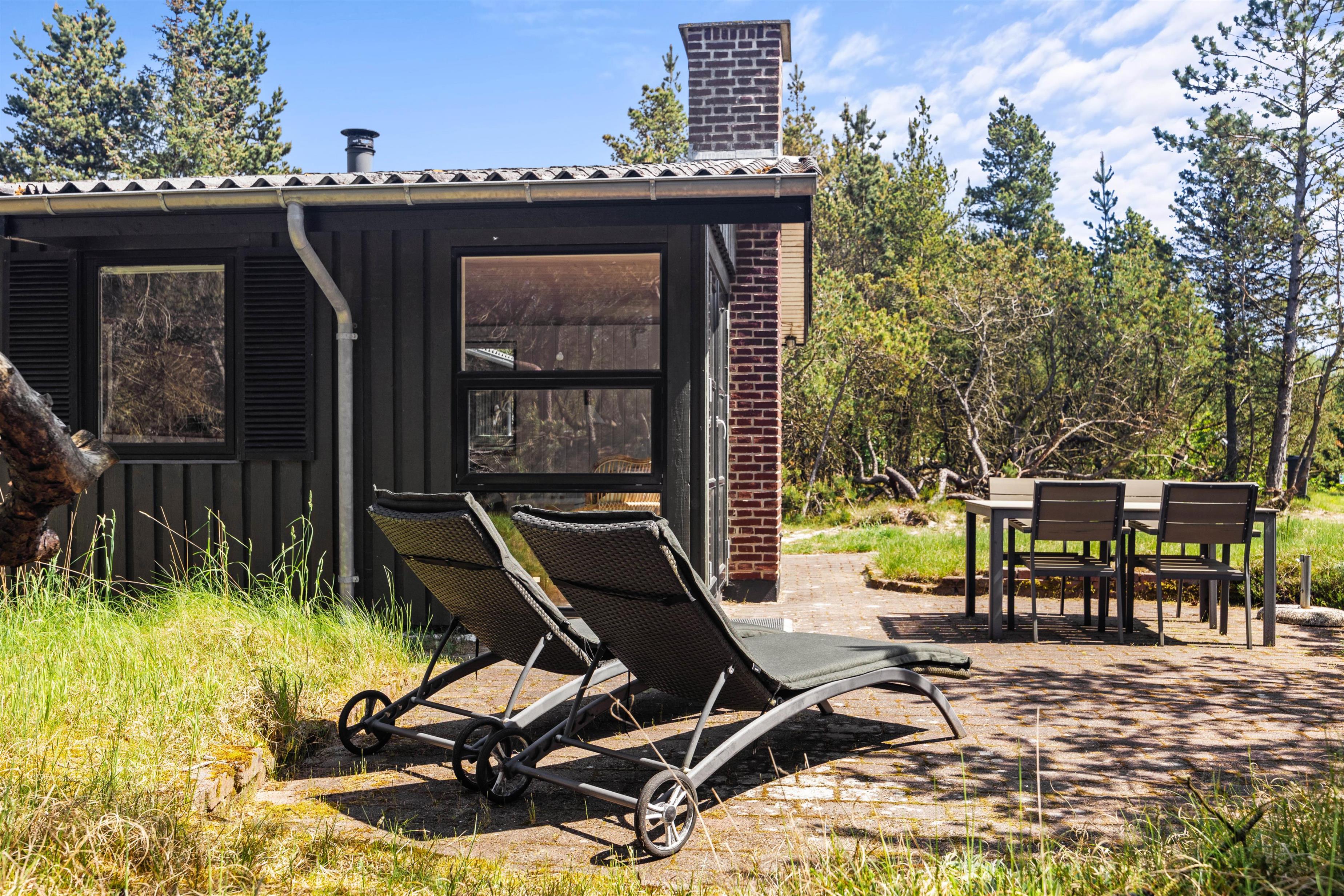 Den lukkede og delvist overdækkede terrasse er perfekt til børnene og hunden, og her kan de frit lege, mens I soler jer eller tilbereder en lækker feriemiddag på grillen. Oplevelser er der også nok af i nærheden, for eksempel i Blåbjerg Plantage, hvor I kan betragte den smukke natur, gå ture på de små stier og spejde efter dyrene.