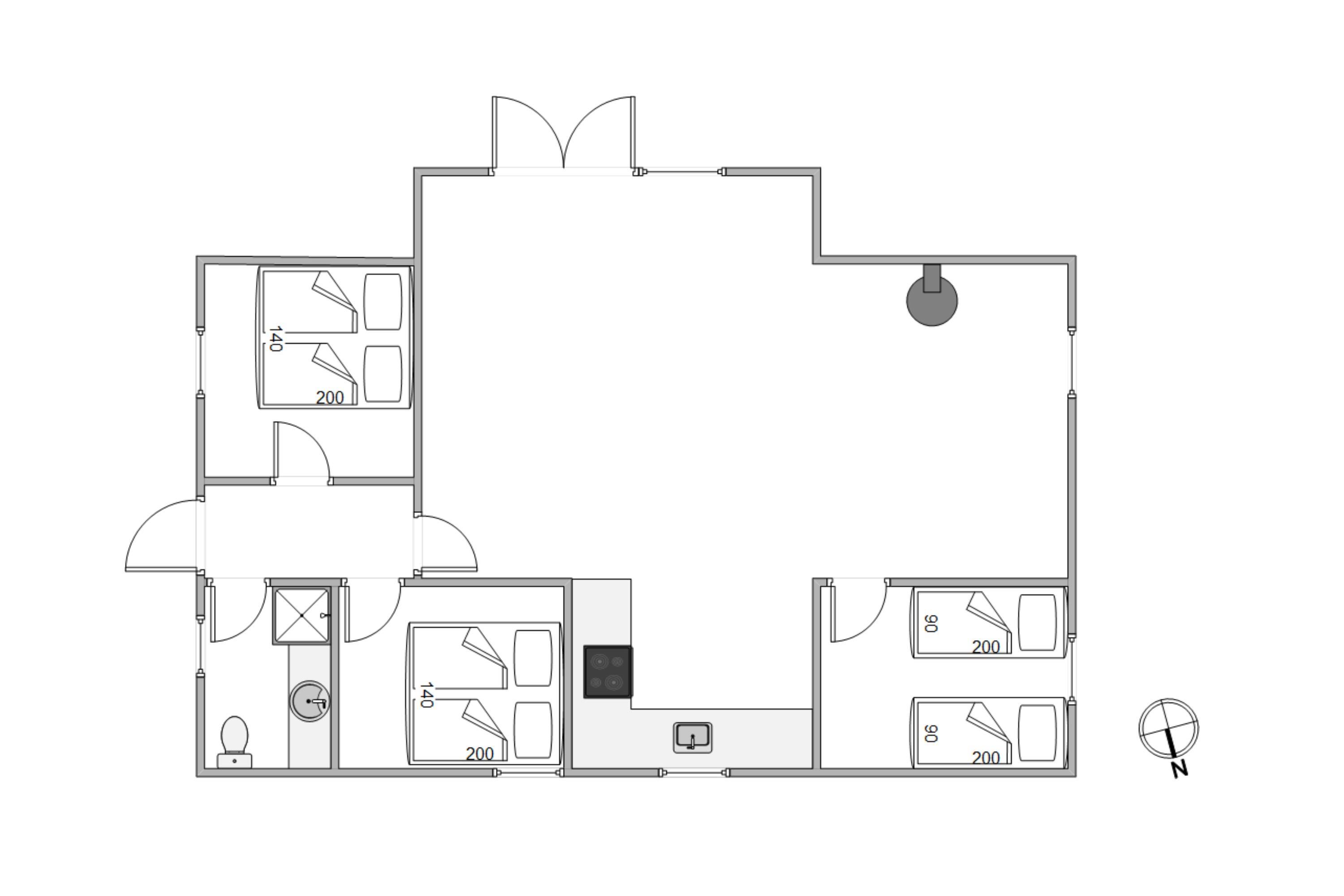 Ferieboligen, der tilbyder plads til 5 personer er indrettet med 3 soveværelser, køkken, opholdsrum med spiseplads og hyggekrog med brændeovn, hvor I kan nyde aftentimerne foran de knitrende flammer og mærke den dejlige varme. Sommerhuset opvarmes udover brændeovnen med en energibesparende varmepumpe.