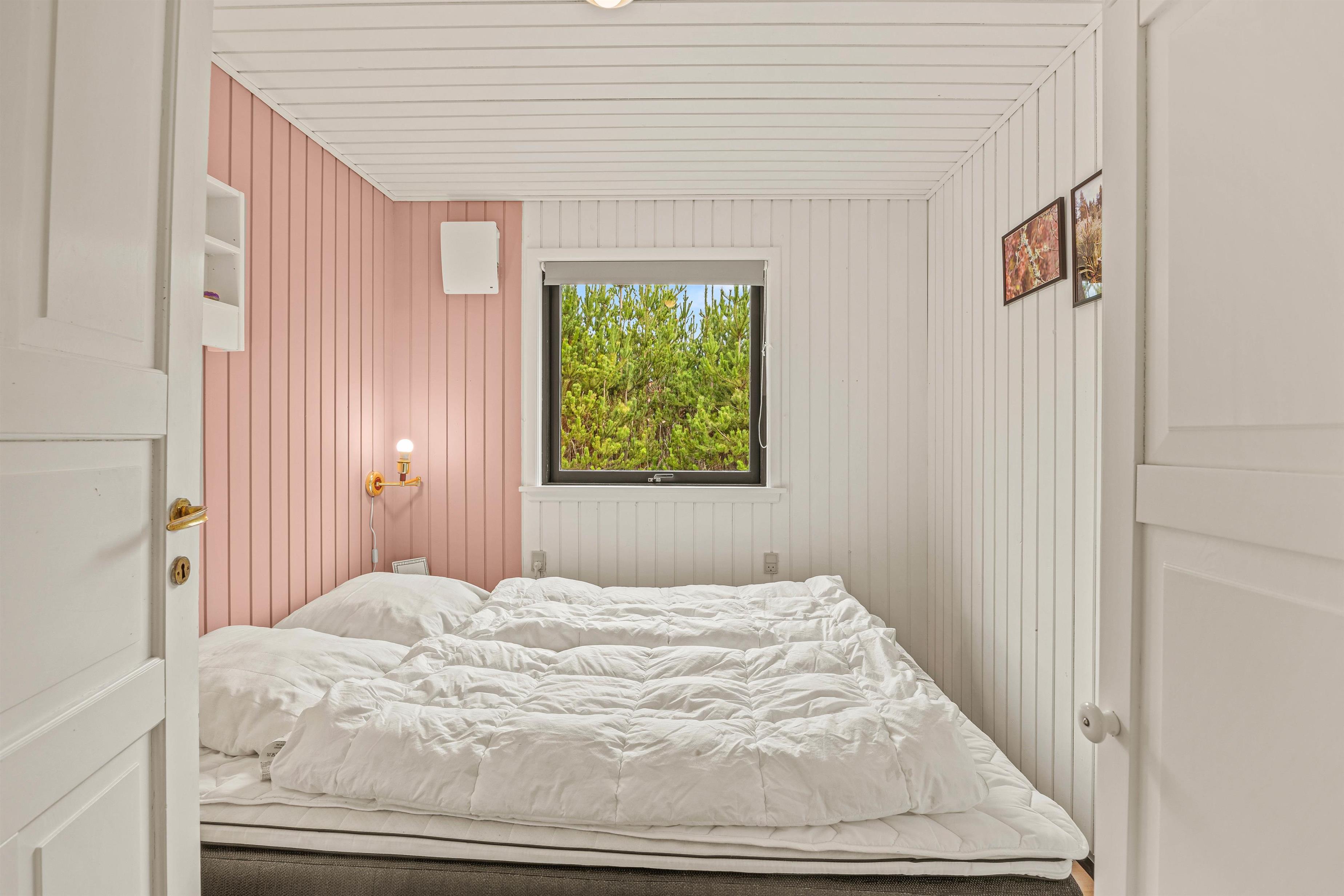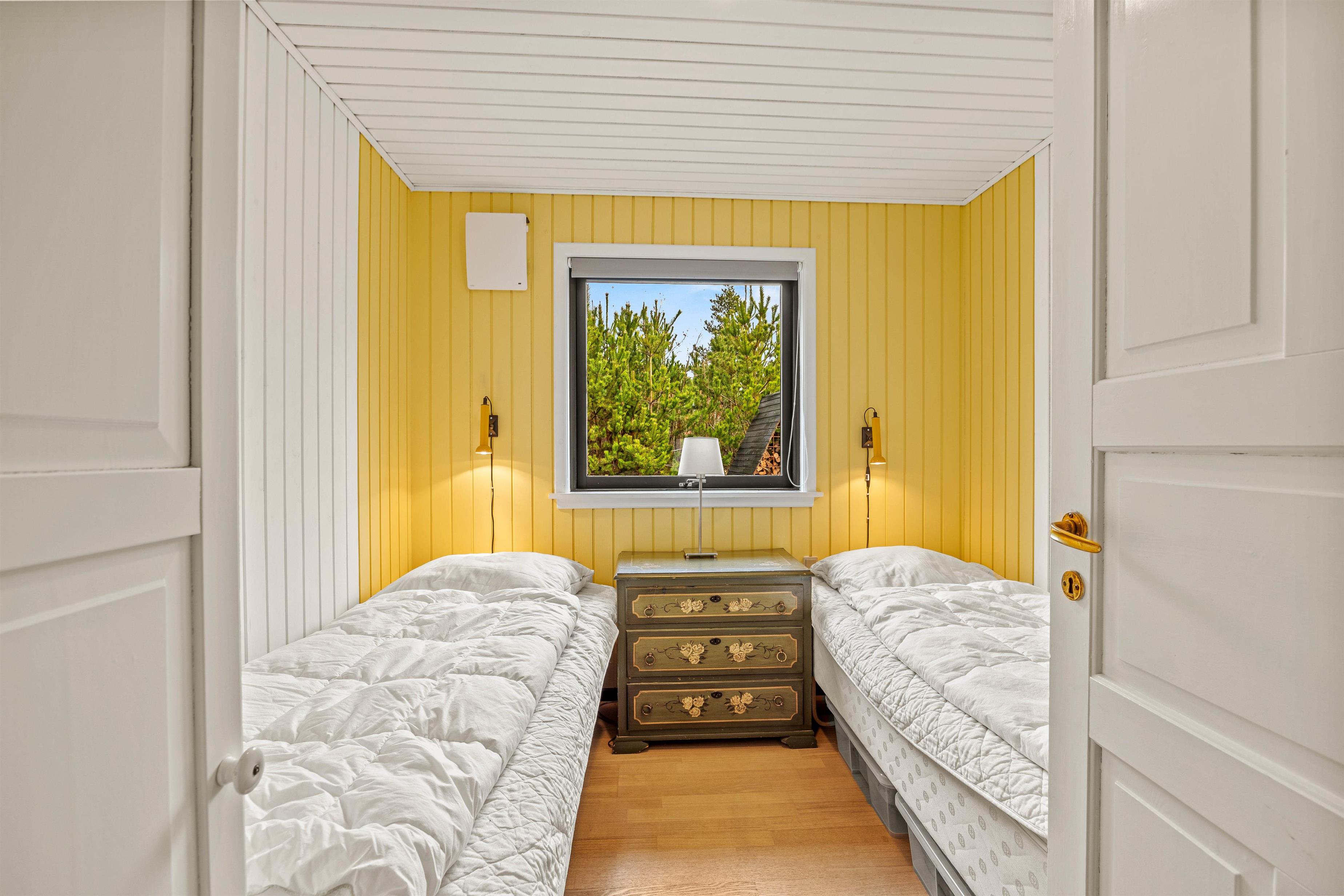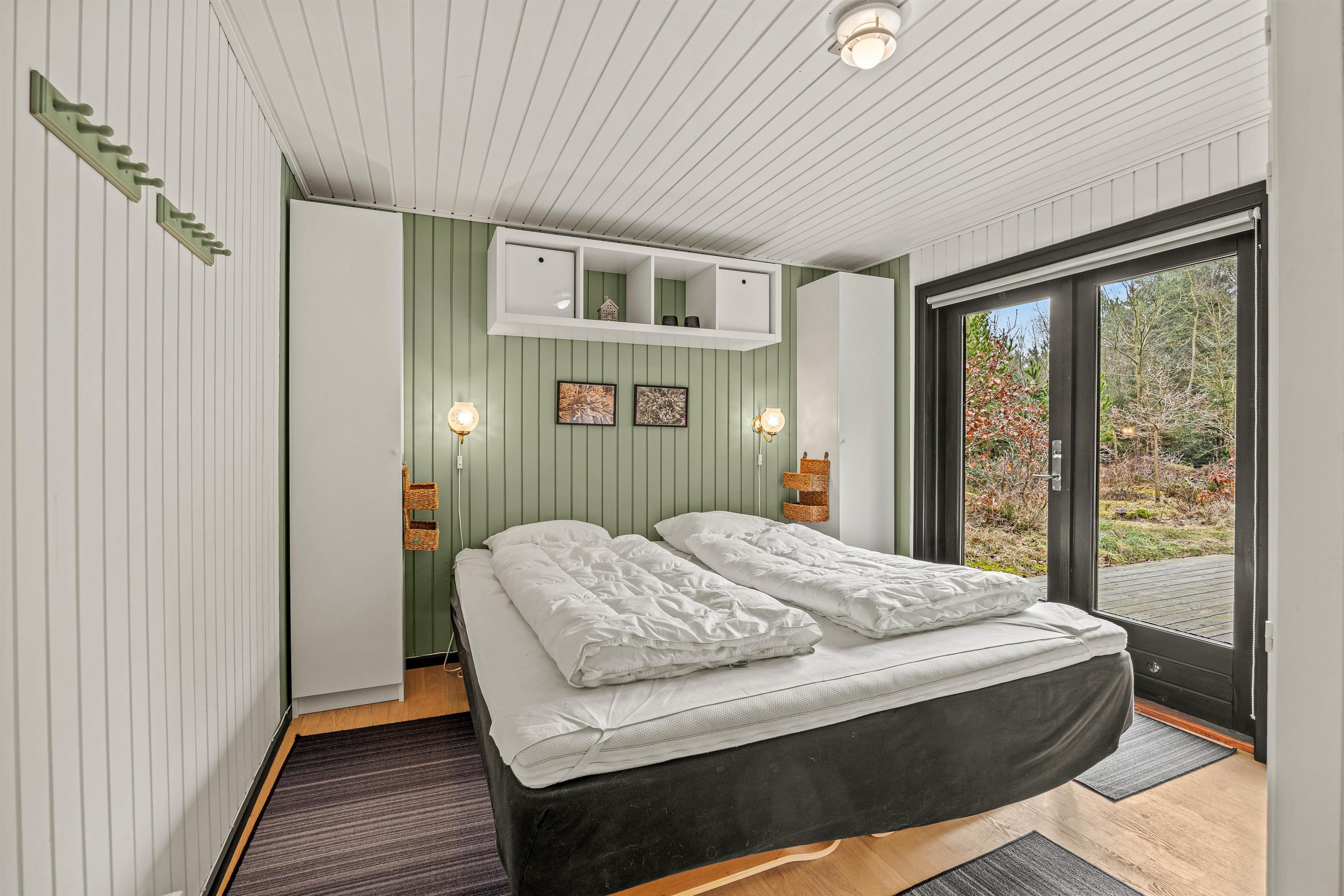 Sommerhuset har 3 soverum, hvilket giver plads til op til 6 personer. Vælg mellem 1 dobbeltseng og 4 enkeltsenge, fordelt på rummelige værelser, som er designet til at sikre en god nats søvn for alle. Fra et af soveværelserne er der direkte udgang til den omkringliggende terrasse, så I let kan nyde morgenkaffen i morgensolen.